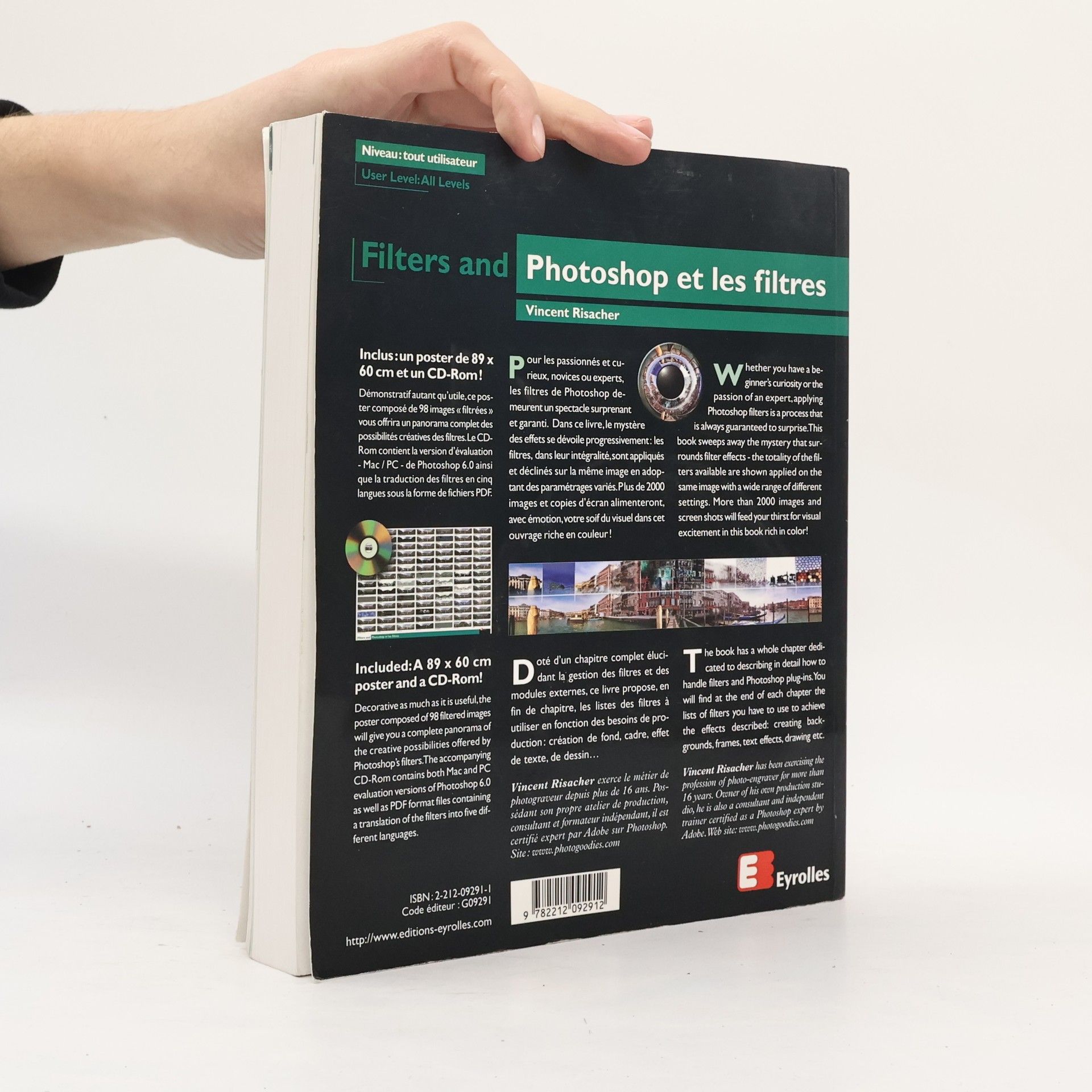 Pour les passionnés et curieux, novices ou experts, les filtres de Photoshop demeurent un spectacle surprenant et garanti. Dans ce livre, le mystère des effets se dévoile progressivement : les filtres, dans leur intégralité, sont appliqués et déclinés sur la même image en adoptant des paramétrages variés. Plus de 2000 images et copies d'écran alimenteront, avec émotion, votre soif du visuel dans cet ouvrage riche en couleur ! Doté d'un chapitre complet élucidant la gestion des filtres et des modules externes, ce livre propose, en fin de chapitre, les listes des filtres à utiliser en fonction des besoins de production : création de fond, cadre, effet de texte, de dessin... Whether you have a beginner's curiosity or the passion of an expert, applying Photoshop filters is a process that is always guaranteed to surprise. This book sweeps away the mystery that surrounds filter effects - the totality of the filters available are shown applied on the same image with a wide range of different settings. More than 2000 images and screen shots will feed your thirst for visual excitement in this bock rich in colon ! The book has a whole chapter dedicated to describing in detail how to handle filters and Photoshop plug-ins. You will fend at the end of each chapter the lists of filters you have to use to achieve the effects described : creating backgrounds, frames, text effects, drawing etc.