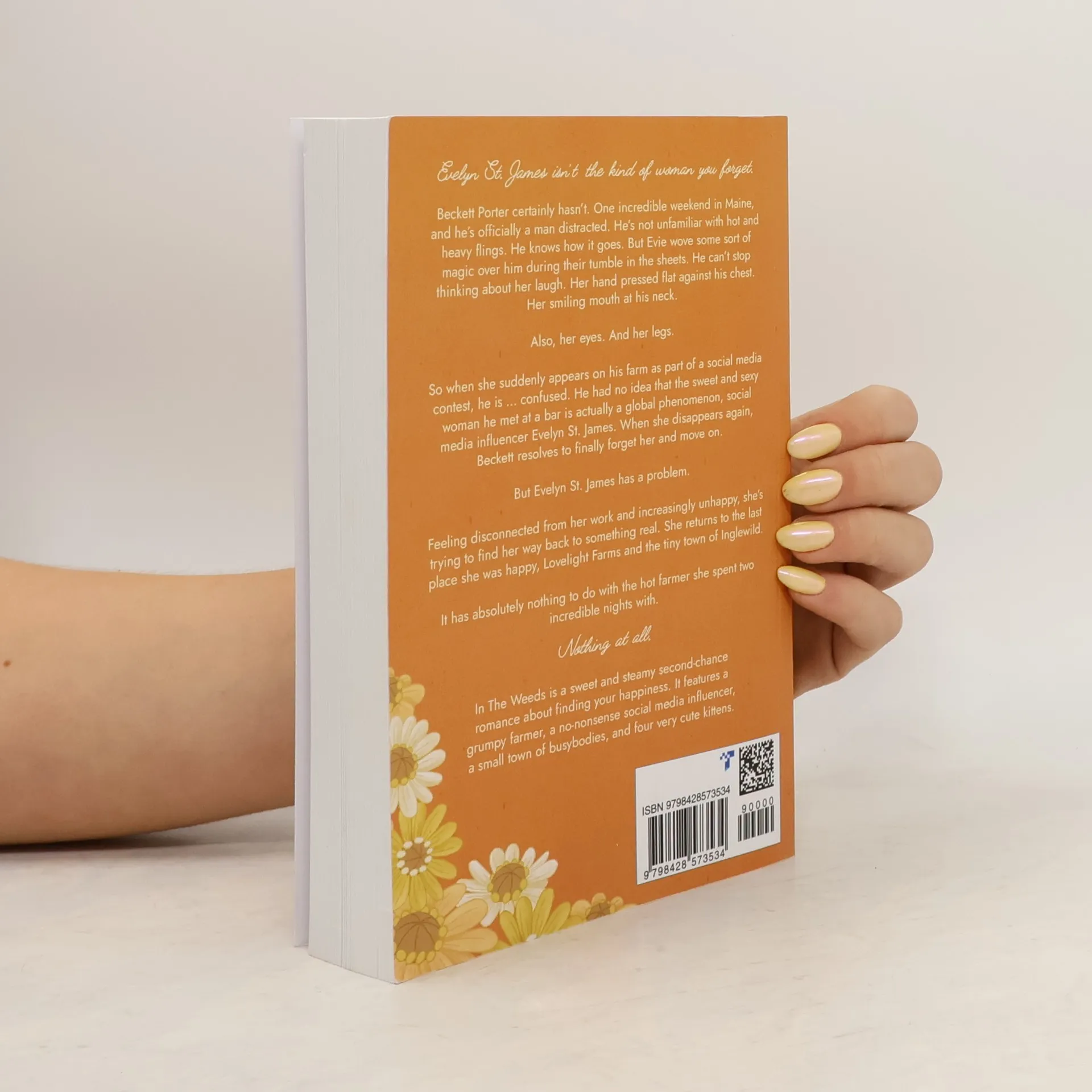 "Evelyn St. James isn't the kind of woman you forget. Beckett Porter certainly hasn't. One incredible weekend in Maine, and he’s officially a man distracted. He’s not unfamiliar with hot and heavy flings. He knows how it goes. But Evie wove some sort of magic over him during their tumble in the sheets. He can’t stop thinking about her laugh. Her hand pressed flat against his chest. Her smiling mouth at his neck. Also, her eyes. And her legs. So when she suddenly appears on his farm as part of a social media contest, he is ... confused. He had no idea that the sweet and sexy woman he met at a bar is actually a global phenomenon: social media influencer Evelyn St. James. When she disappears again, Beckett resolves to finally forget her and move on. But Evelyn St. James has a problem. Feeling disconnected from her work and increasingly unhappy, she’s trying to find her way back to something real. She returns to the last place she was happy, Lovelight Farms and the tiny town of Inglewild. It has absolutely nothing to do with the hot farmer she spent two incredible nights with. Nothing at all. In The Weeds is a sweet and steamy second-chance romance about finding your happiness. It features a grumpy farmer, a no-nonsense social media influencer, a small town of busybodies, and four very cute kittens.