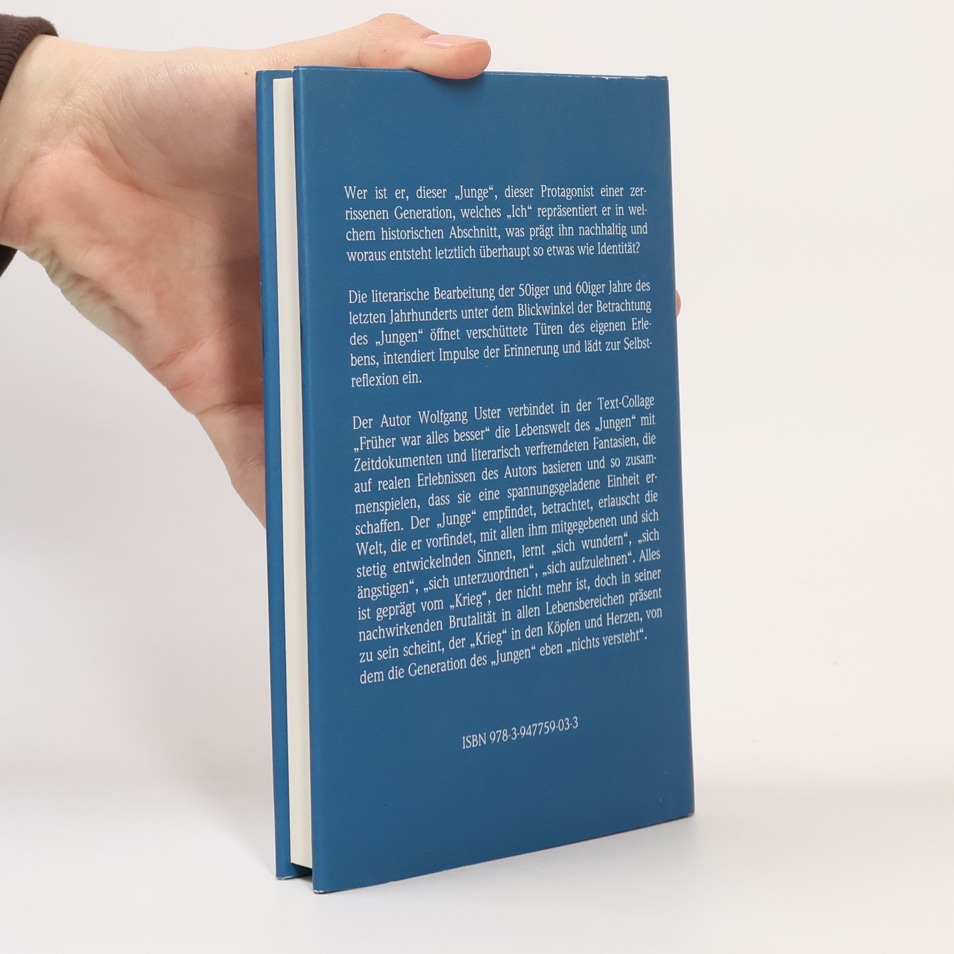 Wer ist er, dieser „Junge“, dieser Protagonist einer zerrissenen Generation, welches „Ich“ repräsentiert er in welchem historischen Abschnitt, was prägt ihn nachhaltig und woraus entsteht letztlich überhaupt so etwas wie Identität? Die literarische Bearbeitung der 50iger und 60iger Jahre des letzten Jahrhunderts unter dem Blickwinkel der Betrachtung des „Jungen“ öffnet verschüttete Türen des eigenen Erlebens, intendiert Impulse der Erinnerung und lädt zur Selbstreflexion ein. Der Autor Wolfgang Uster verbindet in der Text-Collage „Früher war alles besser“ die Lebenswelt des „Jungen“ mit Zeitdokumenten und literarisch verfremdeten Fantasien, die auf realen Erlebnissen des Autors basieren und so zusammenspielen, dass sie eine spannungsgeladene Einheit erschaffen. Der „Junge“ empfindet, betrachtet, erlauscht die Welt, die er vorfindet, mit allen ihm mitgegebenen und sich stetig entwickelnden Sinnen, lernt „sich wundern“, „sich ängstigen“, „sich unterzuordnen“, „sich aufzulehnen“. Alles ist geprägt vom „Krieg“, der nicht mehr ist, doch in seiner nachwirkenden Brutalität in allen Lebensbereichen präsent zu sein scheint, der „Krieg“ in den Köpfen und Herzen, von dem die Generation des „Jungen“ eben „nichts versteht“.