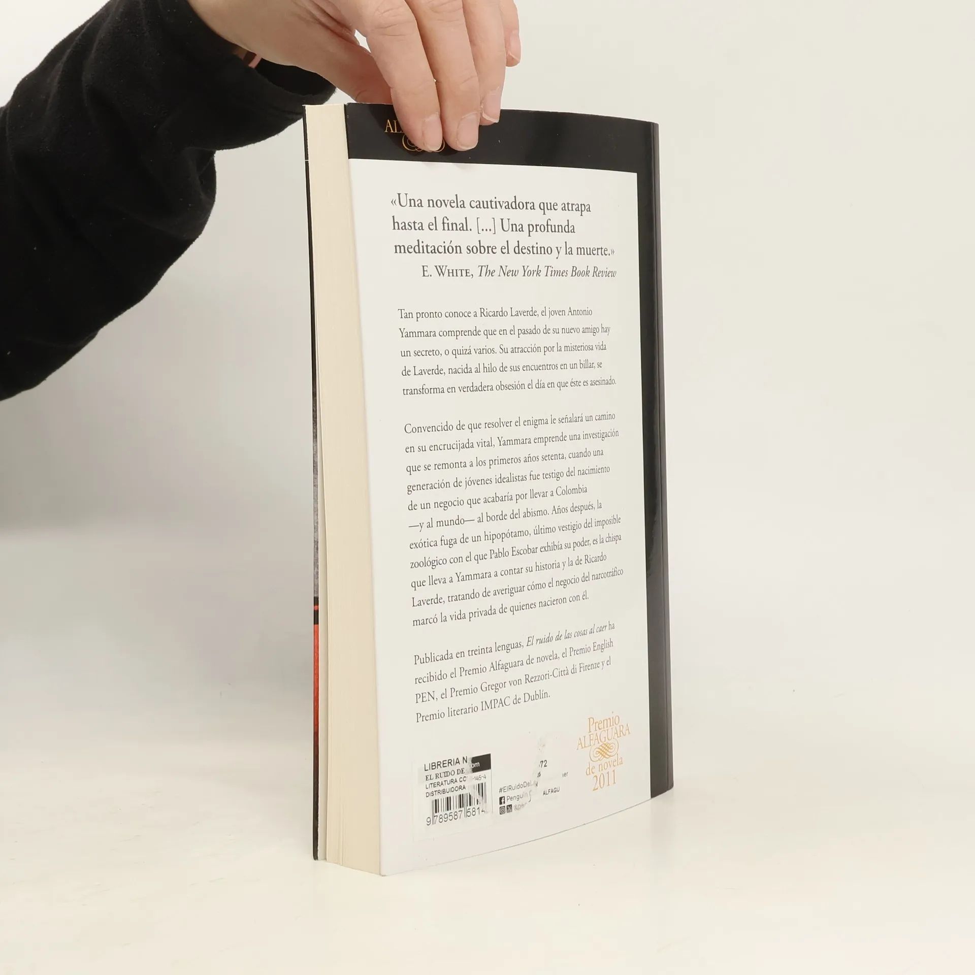 XIV Premio Alfaguara de Novela 2011 «Este hombre no ha sido siempre este hombre», pensé. «Este hombre era otro hombre antes». Tan pronto conoce a Ricardo Laverde, el joven Antonio Yammara comprende que en el pasado de su nuevo amigo hay un secreto, o quizá varios. Su atracción por la misteriosa vida de Laverde, nacida al hilo de sus encuentros en un billar, se transforma en verdadera obsesión el día en que éste es asesinado. Convencido de que resolver el enigma de Laverde le señalará un camino en su encrucijada vital, Yammara emprende una investigación que se remonta a los primeros años setenta, cuando una generación de jóvenes idealistas fue testigo del nacimiento de un negocio que acabaría por llevar a Colombia —y al mundo— al borde del abismo. Años después, la exótica fuga de un hipopótamo, último vestigio del imposible zoológico con el que Pablo Escobar exhibía su poder, es la chispa que lleva a Yammara a contar su historia y la de Ricardo Laverde, tratando de averiguar cómo el negocio del narcotráfico marcó la vida privada de quienes nacieron con él. El ruido de las cosas al caer es la historia de una amistad frustrada. Pero es también una doble historia de amor en tiempos poco propicios, y también una radiografía de una generación atrapada en el miedo, y también una investigación llena de suspense en el pasado de un hombre y el de un país.