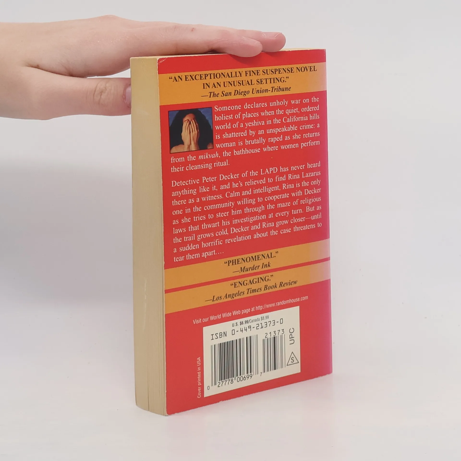 Someone declares unholy war on the holiest of places when the quiet, ordered world of a yeshiva in the California hills is shattered by an unspeakable crime: a woman is brutally raped as she returns from the mikvah, the bathhouse where women perform their cleansing ritual. Detective Peter Decker of the LAPD has never heard anything like it, and he's relieved to find Rina Lazarus there as a witness. Calm and intelligent, Rina is the only one in the community willing to cooperate with Decker as she tries to steer him through the maze of religious laws that thwart his investigation at every turn. But as the trail grows cold, Decker and Rina grow closer--until a sudden horrific revelation about the case threatens to tear them apart. . . .