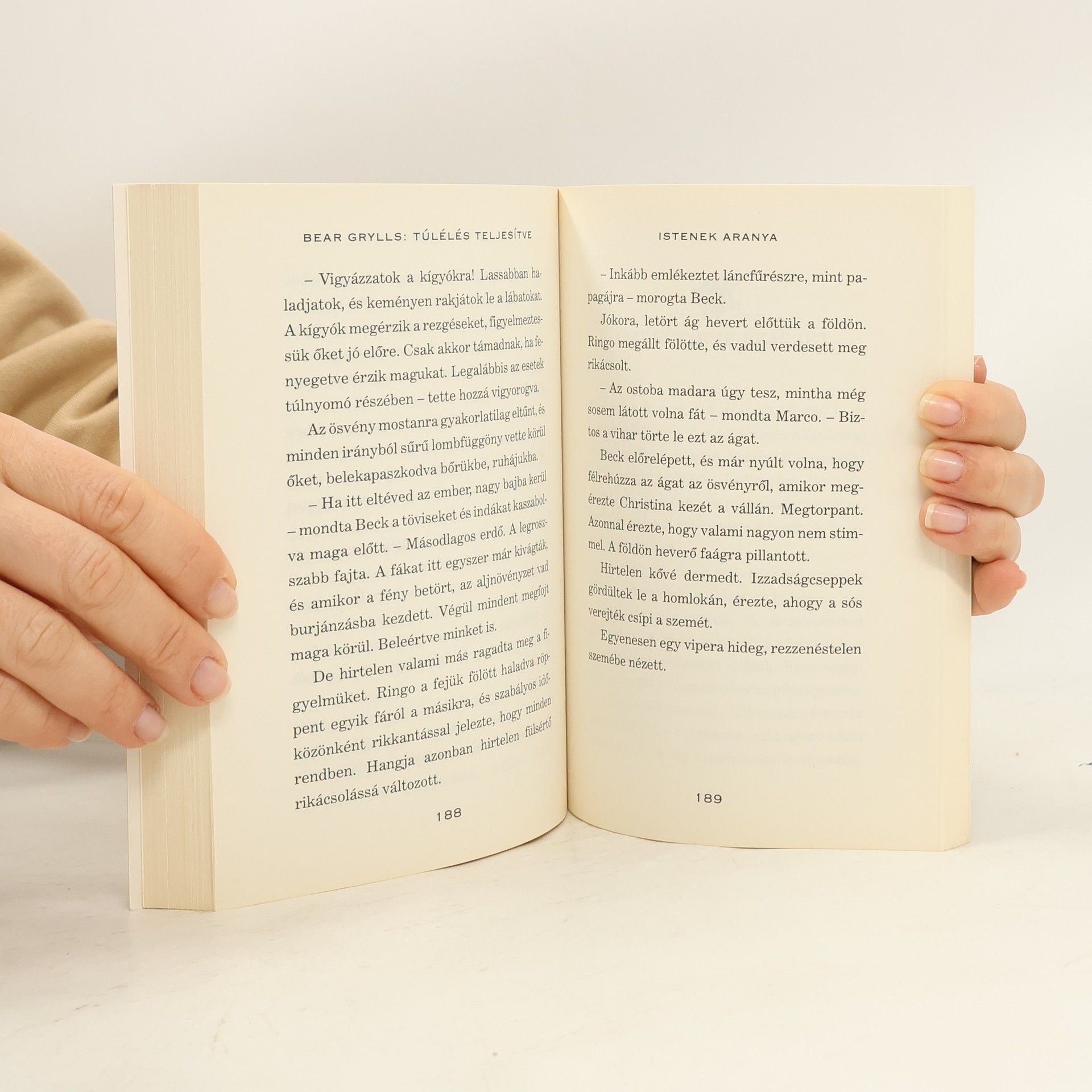 Bear Grylls első kalandregényében is hozza lélegzetelállító formáját. Az istenek aranya is a természet erőivel és csodáival való szembenézésről szól, ezúttal is az életbenmaradáshoz szükséges találékonyságé és a túlélési technikáé a főszerep! Beck Granger nagybátyjával, a híres antropológussal Kolumbiába érkezik, hogy részt vegyen El Dorado, az elveszett város felkutatására induló expedíción. Ám mielőtt útnak indulnának, álarcos támadók rabolják el Beck bácsikáját. Beck hamarosan rábukkan egy régi térképre, amely elvezetheti őket úti céljukhoz, és a helyi rendőrfőnököt rászedve végül az éj leple alatt egy tengeri tutajon vágnak neki a nagy utazásnak... A fiataloknak kalandos útjuk során nem csupán a természettel, a vadállatokkal, a szomjúsággal és az éhséggel kell megküzdeniük, de az őserdő indiánjaival is találkoznak. Beckről azonban hamar kiderül, hogy a túlélőtechnikák avatott ismerője, és minden szorult helyzetből ki tudja rántani újdonsült barátait.