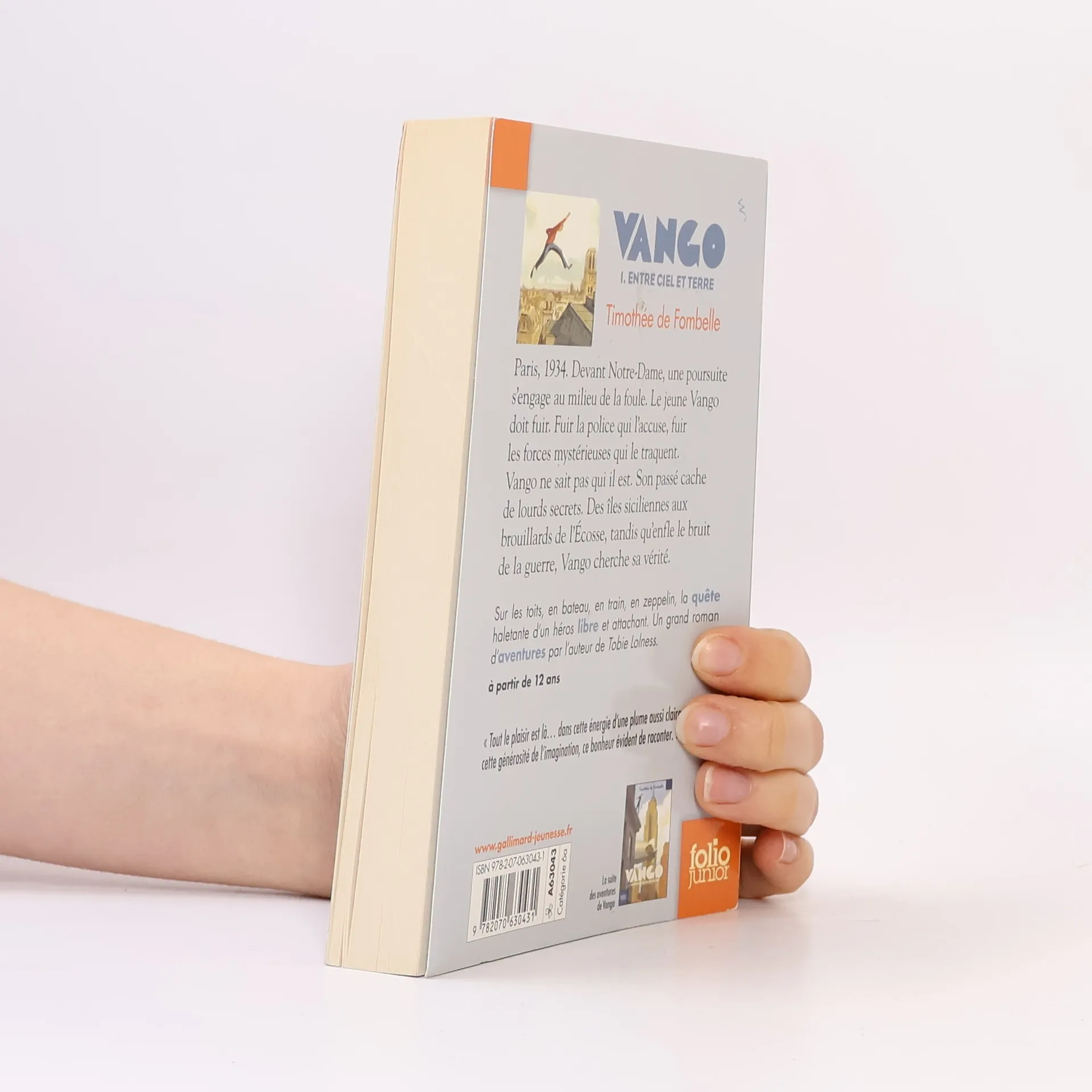 Paris, 1934. Devant Notre-Dame, une poursuite s'engage au milieu de la foule. Le jeune Vango doit fuir. Fuir la police qui l'accuse, fuir les forces mystérieuses qui le traquent. Vango ne sait pas qui il est. Son passé cache de lourds secrets. Des îles siciliennes aux brouillards de l'Écosse, tandis qu'enfle le bruit de la guerre, Vango cherche sa vérité. Sur les toits, en bateau, en train, en zeppelin, la quête haletante d'un héros libre et attachant. Un grand roman d'aventures par l'auteur de «Tobie Lolness».