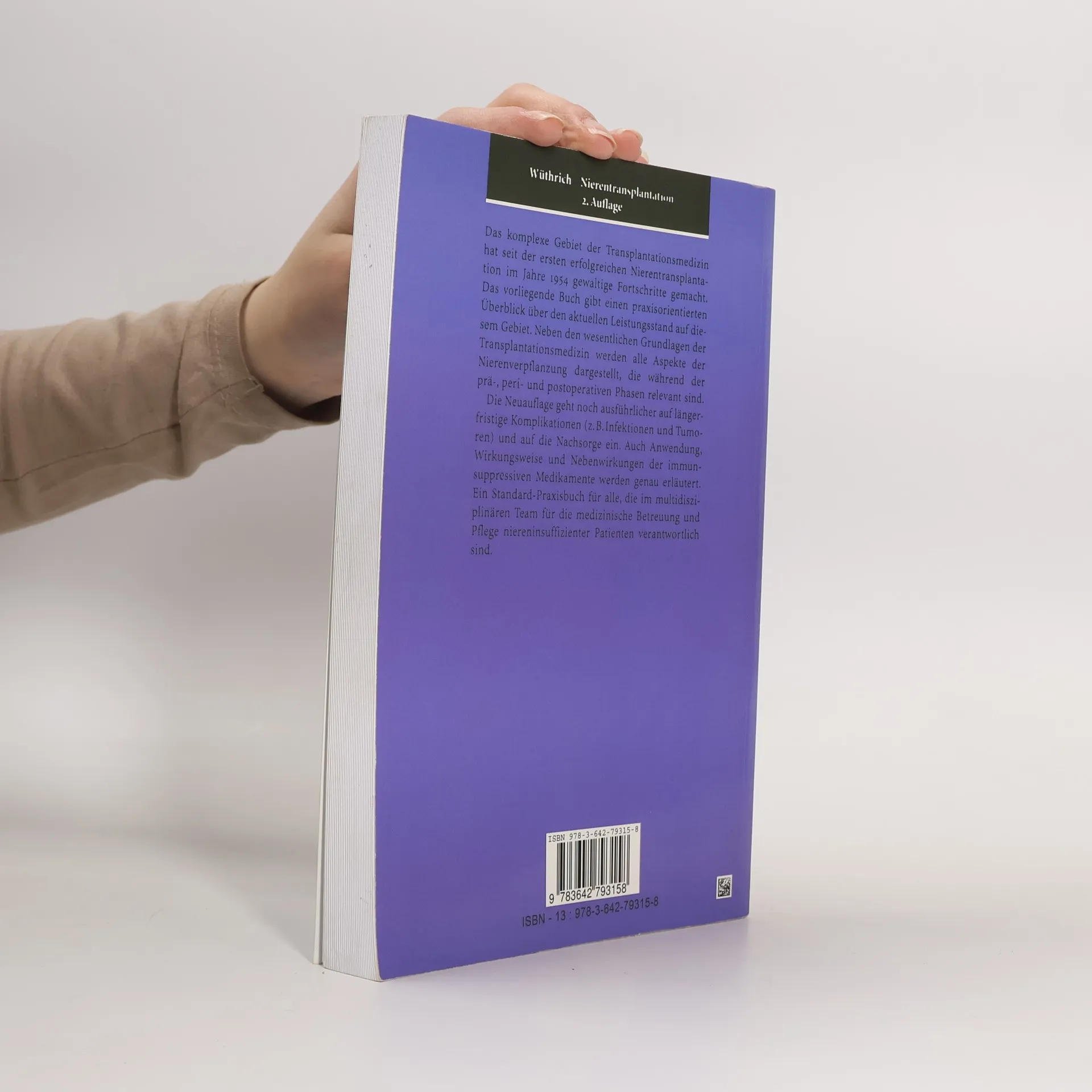Das komplexe Gebiet der Transplantationsmedizin hat seit der ersten erfolgreichen Nierenverpflanzung im Jahr 1954 gewaltige Fortschritte gemacht. Das vorliegende Buch gibt einen praktisch orientierten Uberblick uber den aktuellen Leistungsstand in diesem Bereich. Neben den wesentlichen Grundlagen der Transplantationsmedizin werden alle Aspekte der Nierenverpflanzung dargestellt, die wahrend der pra-, peri- und postoperativen Phasen relevant sind. Die Neuauflage geht u.a. noch ausfuhrlicher auf langerfristige Komplikationen (z.B. Infektionen und Tumoren) und auf die Nachsorge ein. Ein Standard-Praxisbuch fur alle, die im multidisziplinaren Team fur die medizinische Betreuung und Pflege niereninsuffizienter Patienten verantwortlich sind."