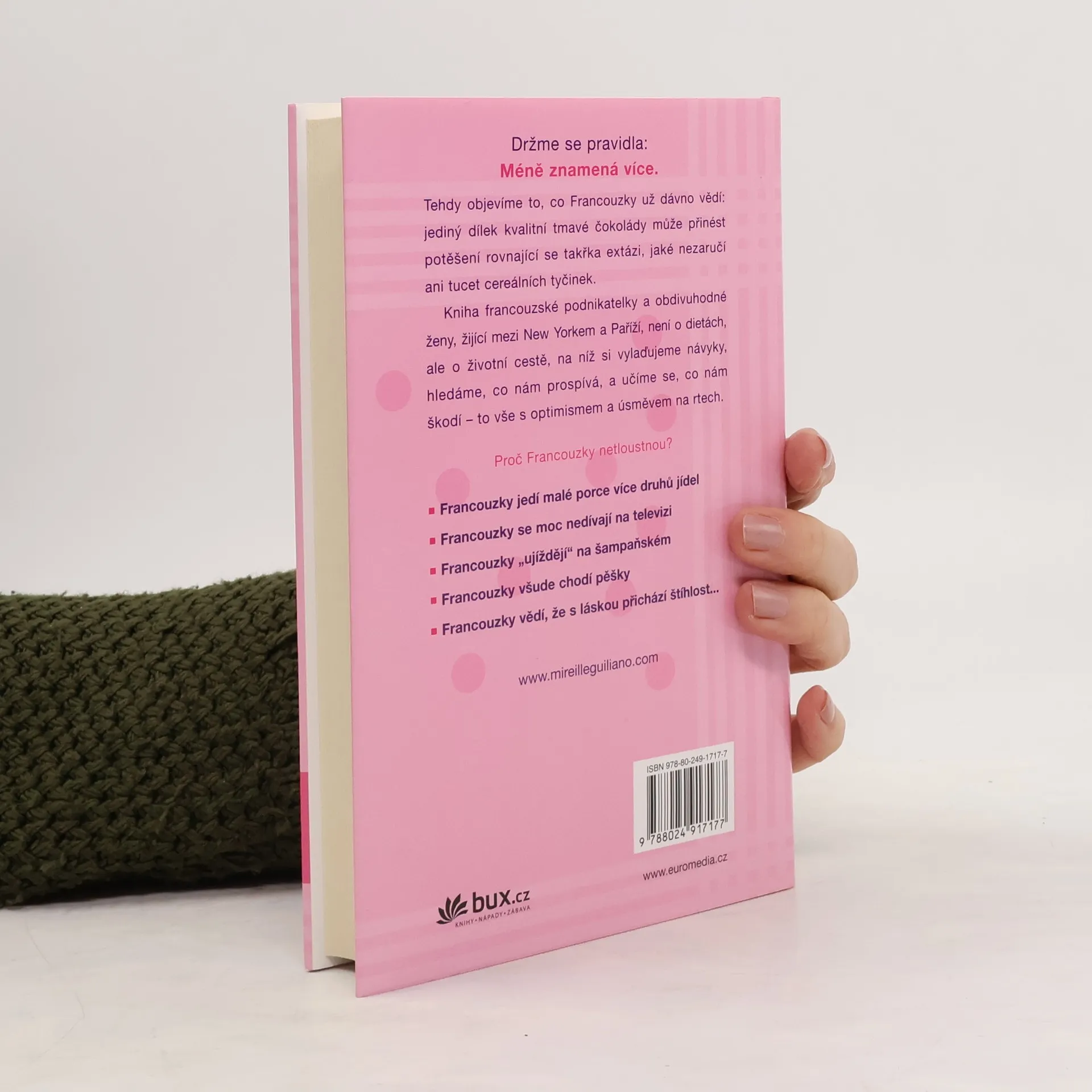 Autorka radí ženám, jak si, podle francouzského vzoru, upravit životosprávu a stravovací návyky a po celý život si udržet ideální hmotnost. Trik spočívá v tom, že nikdy nesmíte hladovět, naopak ke každému jídlu si dopřát několik chodů, ale pouze v malém množství. Občas si můžete dát i kousek svého oblíbeného vysoce kalorického jídla, ale musíte to v brzké době vykompenzovat větší zdrženlivostí. Cílovým pocitem má být uspokojení a radost z jídla, v žádném případě ne strádání. Stravovací návyky je třeba doplnit pitným režimem a pohybovou aktivitou (nikoli však týráním se v tělocvičnách). Dobrý dojem poněkud kalí poznání, že k dosažení uspokojivého výsledku musíte tento nový životní styl praktikovat už do konce života. Součástí textu jsou zajímavé recepty.