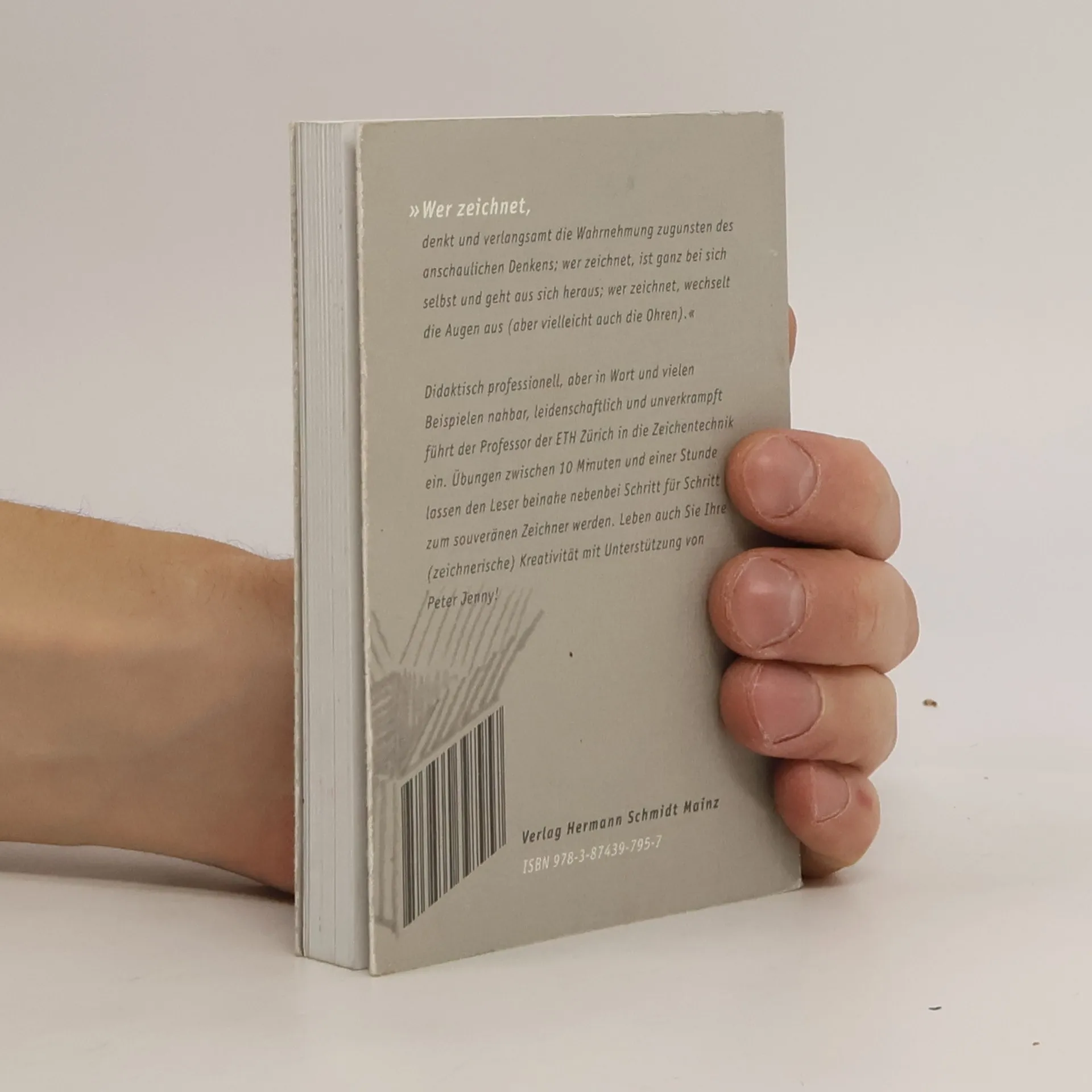 Kennen Sie diesen bewundernd-neidischen Blick, wenn jemand mit Leichtigkeit und Verve mit ein paar gekonnten Strichen eine skizzenhafte, aber aussagekräftige Zeichnung hinwirft? »Wenn ich doch nur zeichnen könnte … «, geht es einem dann durch den Kopf. Aber der Weg dahin scheint steinig und schwer, man kann ja nicht alles können – und schon sprudelt es Ausreden? Bei langen Telefongesprächen und während langweiliger Reden ertappen Sie sich jedoch dabei, dass Sie Schraffuren, Kringel und Ähnliches kritzeln? Genau da setzt Peter Jenny an. Sie können nämlich zeichnen, Sie wissen es nur vielleicht noch nicht! Generationen von ETH-Studenten kennen und schätzen die kleinen grauen Jenny-Bändchen, und seit etlichen Jahren bauen auch jenseits der Schweizer Grenze Kreative mit den einfachen Jenny-Übungen ihr Zeichentalent auf und aus, trauen sich, werden besser, fordern weitere Bändchen und empfehlen Jenny Freunden, Kollegen und denen mit dem bewundernd-neidischen Blick.
