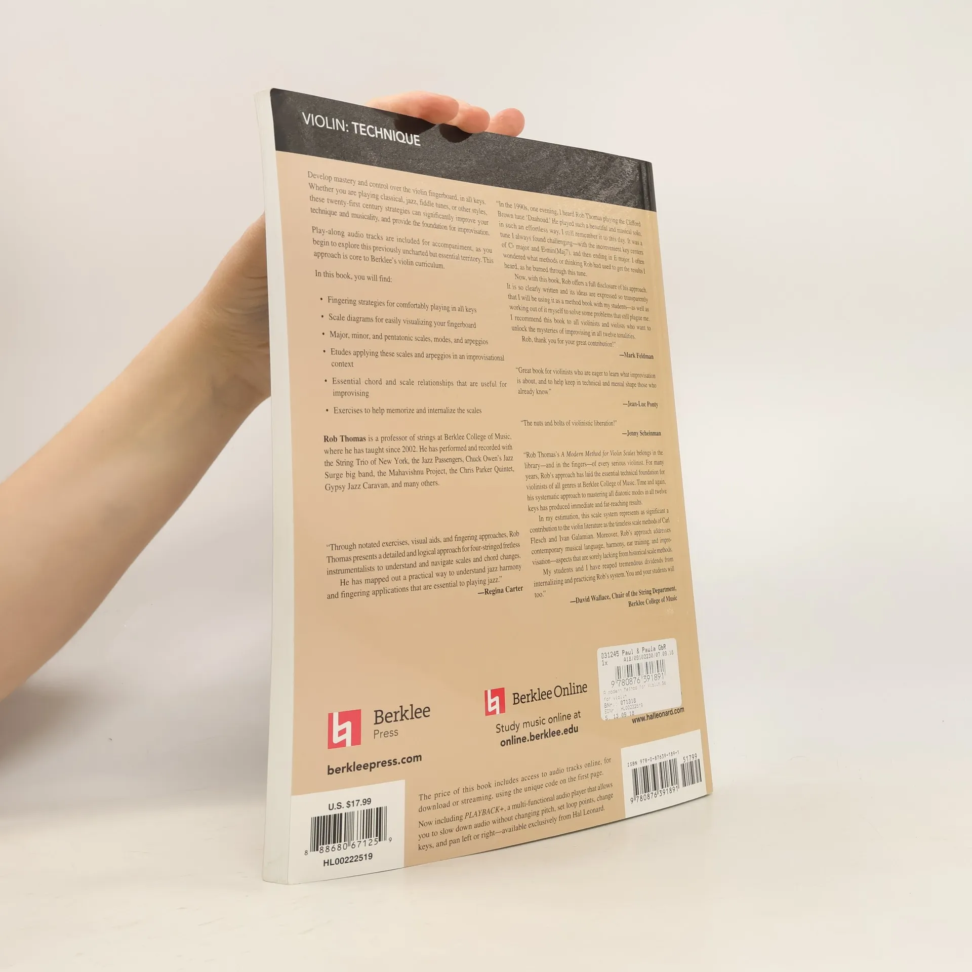 (Berklee Guide). Acclaimed jazz multi-instrumentalist Rob Thomas brings a fresh look at violin scales for the modern age. Chapters in this book * Single-String Frames * Four-String Frames * Mode and Arpeggio Exercises * Using Play-Along Accompaniment * and more! Play-along audio tracks are included online for accompaniment, as you begin to explore this previously uncharted but essential territory.