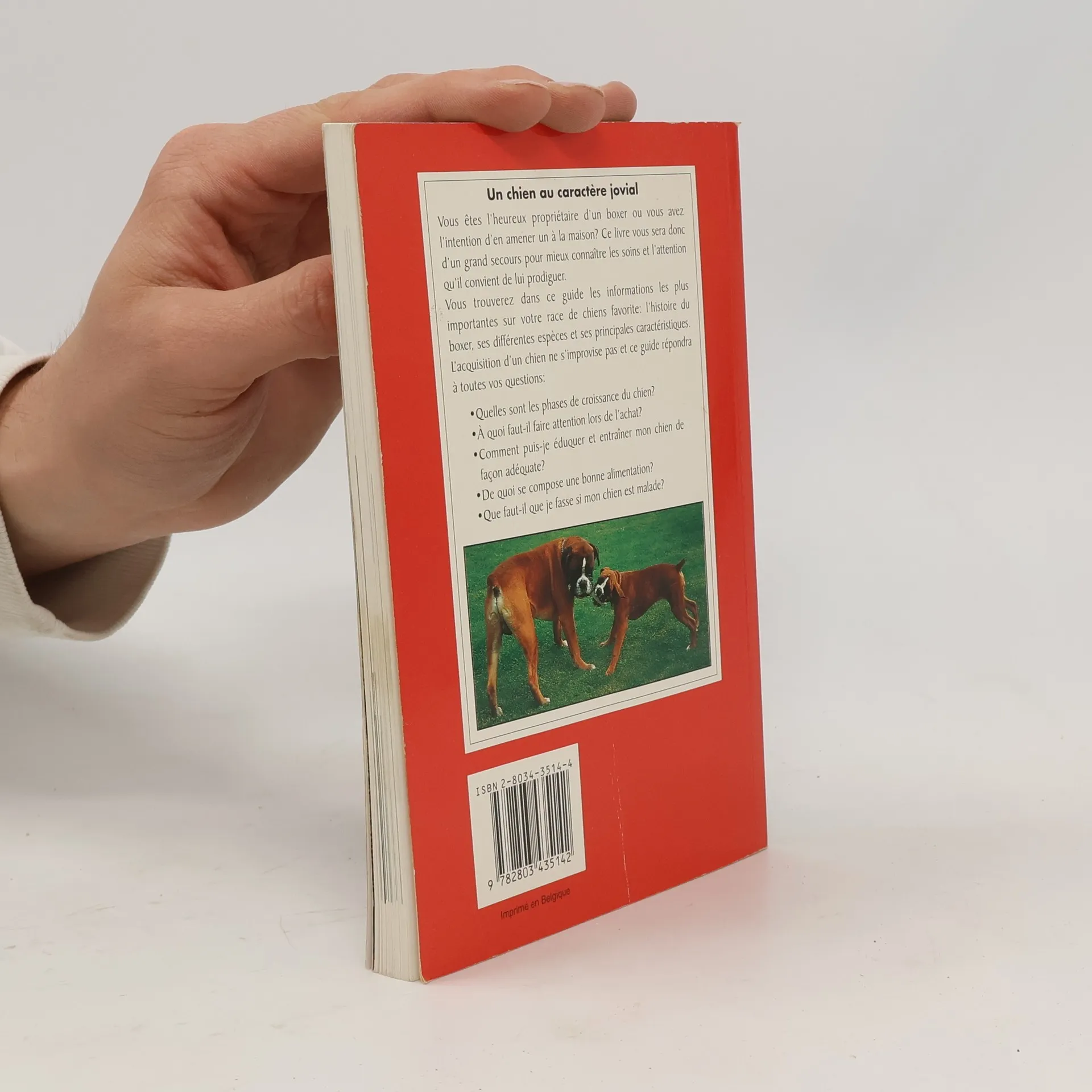 Vous êtes l'heureux propriétaire d'un boxer ou vous avez l'intention d'en amener un à la maison ? Ce livre vous sera donc d'un grand secours pour mieux connaître les soins et l'attention qu'il convient de lui prodiguer. Vous trouverez dans ce guide les informations les plus importantes sur votre race de chiens favorite : l'histoire du boxer, ses différentes espèces et ses principales caractéristiques. L'acquisition d'un chien ne s'improvise pas et ce guide répondra à toutes vos questions : quelles sont les phases de croissance du chien ? A quoi faut-il faire attention lors de l'achat ? Comment puis-je éduquer et entraîner mon chien de façon adéquate ? De quoi se compose une bonne alimentation ? Que faut-il que je fasse si mon chien est malade ?