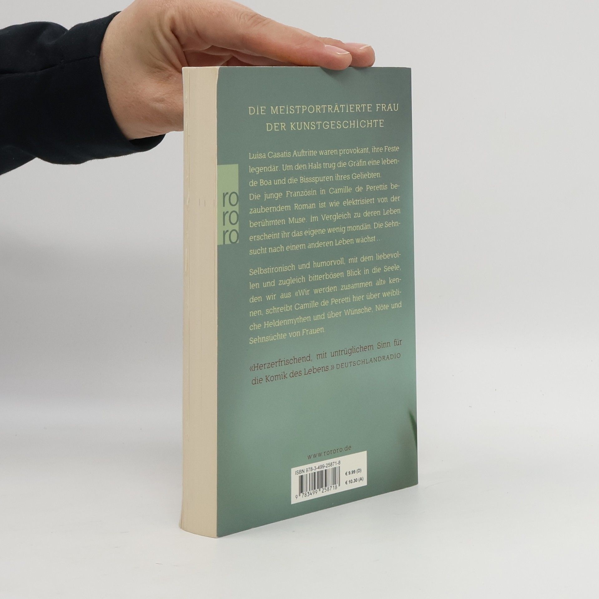 Die meistporträtierte Frau der Kunstgeschichte. Luisa Casatis Auftritte waren provokant, ihre Feste legendär. Um den Hals trug die Gräfin eine lebende Boa und die Bissspuren ihres Geliebten. Die junge Französin in Camille de Perettis bezauberndem Roman ist wie elektrisiert von der berühmten Muse. Im Vergleich zu deren Leben erscheint ihr das eigene wenig mondän. Die Sehnsucht nach einem anderen Leben wächst ... Selbstironisch und humorvoll, mit dem liebevollen und zugleich bitterbösen Blick in die Seele, den wir aus «Wir werden zusammen alt» kennen, schreibt Camille de Peretti hier über weibliche Heldenmythen und über Wünsche, Nöte und Sehnsüchte von Frauen.