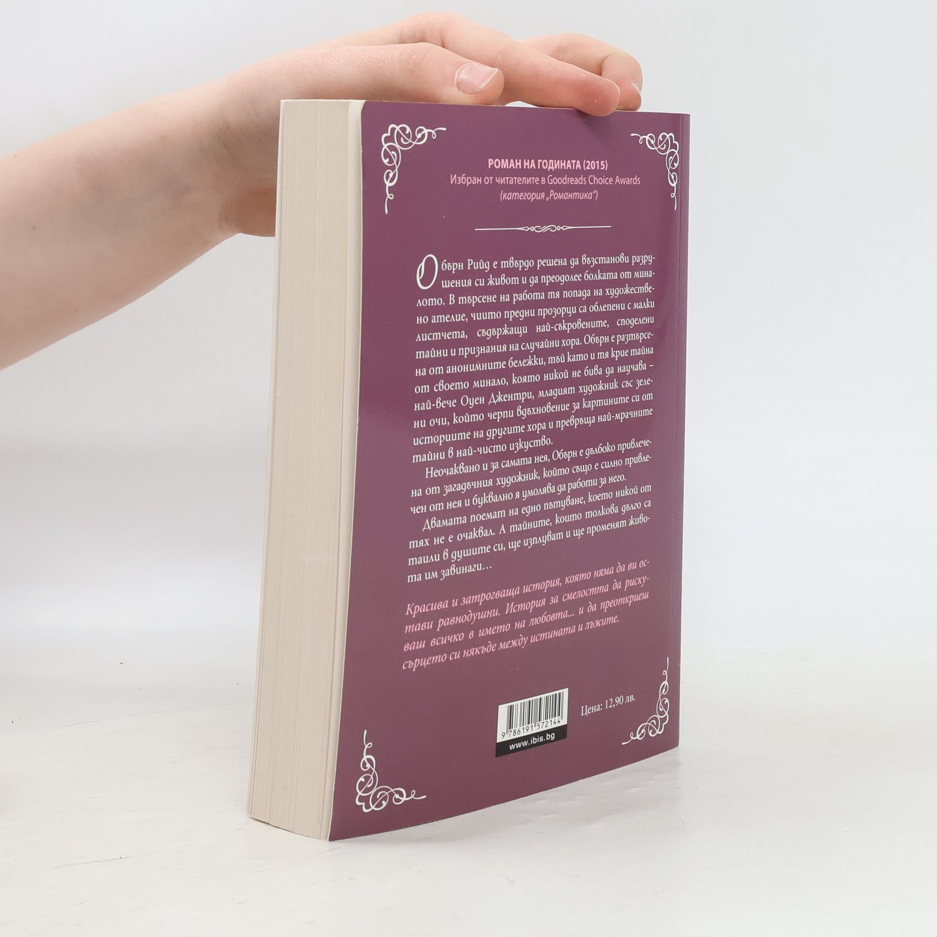 Красива и затрогваща история, която няма да ви остави равнодушни. История за смелостта да рискуваш всичко в името на любовта... и да преоткриеш сърцето си някъде между истината и лъжите. Обърн Рийд е твърдо решена да възстанови разрушения си живот и да преодолее болката от миналото. В търсене на работа тя попада на художествено ателие, чиито предни прозорци са облепени с малки листчета, съдържащи най-съкровените, споделени тайни и признания на случайни хора. Обърн е разтърсена от анонимните бележки, тъй като и тя крие тайна от своето минало, която никой не бива да научава – най-вече Оуен Джентри, младият художник със зелени очи, който черпи вдъхновение за картините си от историите на другите хора и превръща най-мрачните тайни в най-чисто изкуство. Неочаквано и за самата нея, Обърн е дълбоко привлечена от загадъчния художник, който също е силно привлечен от нея и буквално я умолява да работи за него. Двамата поемат на едно пътуване, което никой от тях не е очаквал. А тайните, които толкова дълго са таили в душите си, ще изплуват и ще променят живота им завинаги…