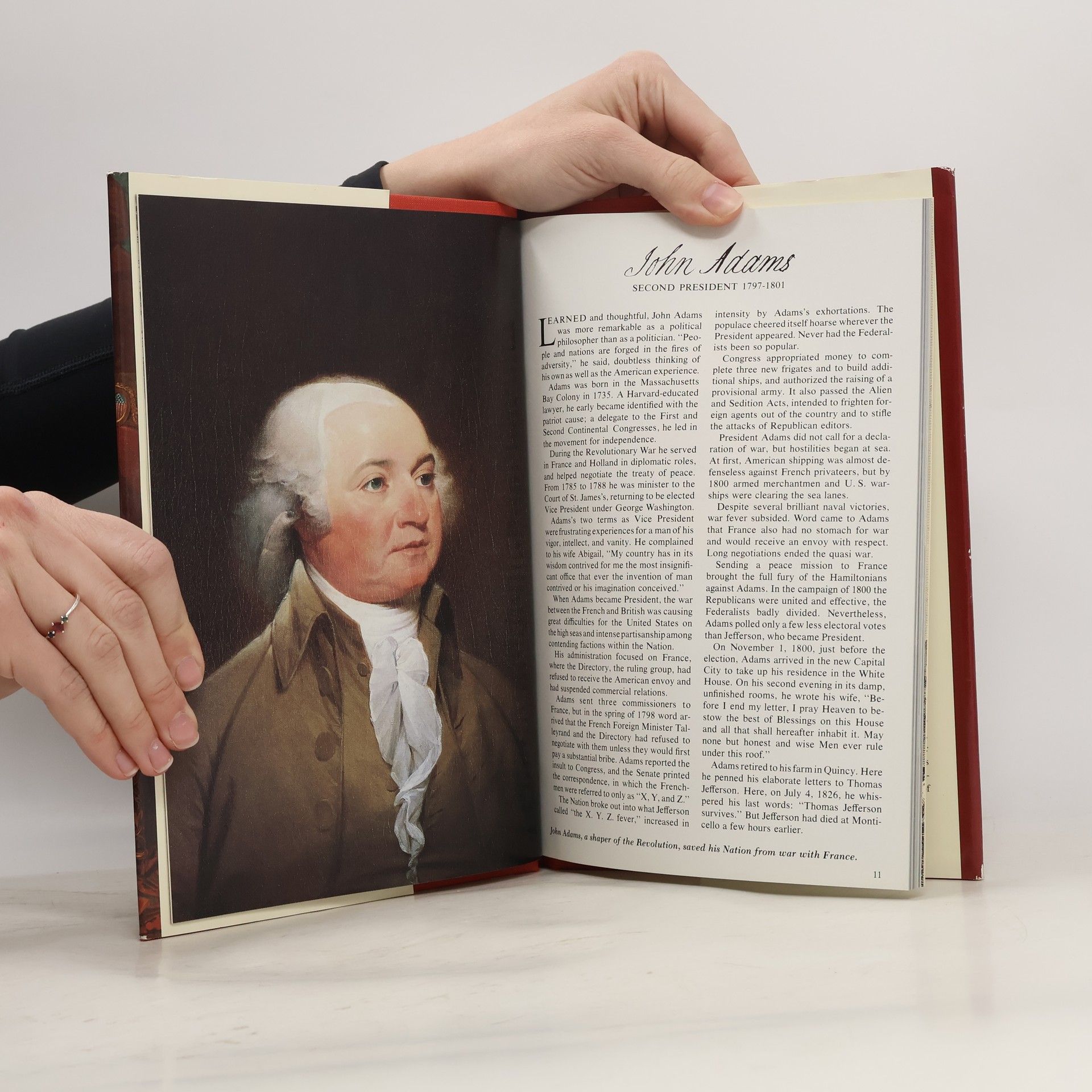 Single-page biographies with portraits of the forty presidents of the United States.