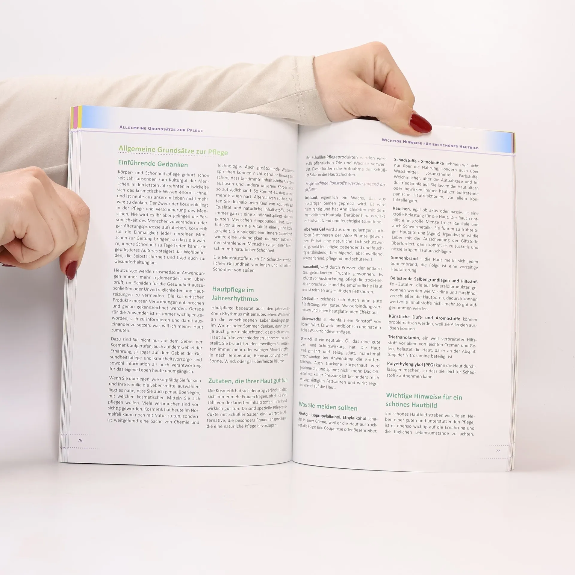 Haben Sie trockene Haut, Couperose, Pickel, Mitesser, Besenreiser oder leiden Sie unter Hornhaut an den Füßen? Die Mineralstoffe nach Dr. Schüßler können vielfältig eingesetzt werden. Neben der Einnahme gibt es auch eine Vielzahl von äußeren Anwendungsmöglichkeiten: - die Schüßler Tabletten als Waschungen, Spülungen, Haarwasser, Tropfen, Bäder, Umschläge, Wickel, Kompressen und Breianwendungen... - Salben, Cremegele, Gele als Pflaster, Umschläge, Massagen, Masken... - fertig zubereitete Kombinationen als wirksame Gesichts- und Körperpflege. Nach einem Überblick über die Biochemie nach Dr. Schüßler und die Wirkungsweise der einzelnen Mineralstoffverbindungen widmet sich die Autorin den Möglichkeiten wie man sie in der äußeren Anwendung hochwirksam für Haut, Haare und Nägel einsetzen kann. Pflegen und versorgen Sie sich über die Haut mit den Schüßler Salzen. Sie finden in diesem Buch viele praktische Beispiele, eigene Erfahrungen, viele Tipps und unzählige Anwendungsmöglichkeiten der Tabletten, Salben, Cremen und Cremegele sowie Anleitungen zum selber Machen. Haut, Haare und Nägel werden gekräftigt und vital. Aber nicht nur bei speziellen Bedürfnissen kommen die Mineralstoffe nach Dr. Schüßler zum Einsatz. Tun Sie sich etwas Gutes und versorgen Sie Ihren Körper, auch über die tägliche Pflege mit Schüßler Salzen.