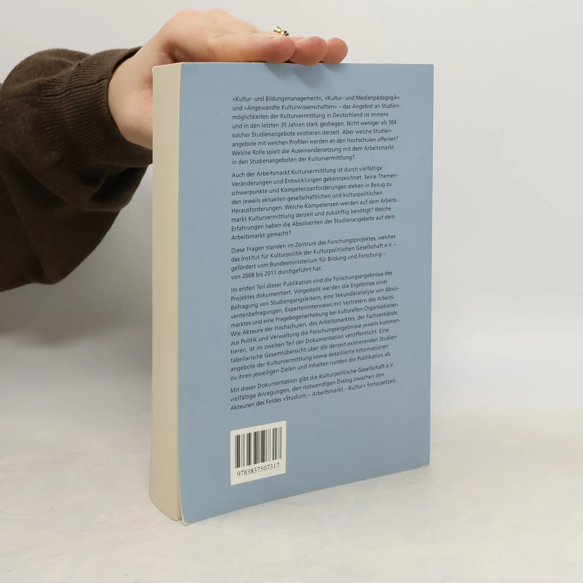 Das Angebot an Studienmöglichkeiten der Kulturvermittlung in Deutschland hat in den letzten 35 Jahren stark zugenommen und umfasst derzeit 364 Programme. Die Publikation untersucht, welche Studienangebote mit welchen Profilen an Hochschulen angeboten werden und wie die Auseinandersetzung mit dem Arbeitsmarkt in diesen Programmen integriert ist. Der Arbeitsmarkt für Kulturvermittlung ist durch zahlreiche Veränderungen geprägt, die sich auf die erforderlichen Kompetenzen und Themenschwerpunkte auswirken. Die Forschung, durchgeführt vom Institut für Kulturpolitik der Kulturpolitischen Gesellschaft e. V. und gefördert vom Bundesministerium für Bildung und Forschung, beleuchtet die Kompetenzen, die aktuell und zukünftig benötigt werden, sowie die Erfahrungen von Absolventen auf dem Arbeitsmarkt. Im ersten Teil werden die Ergebnisse einer Befragung von Studiengangsleitern, eine Sekundäranalyse von Absolventenbefragungen, Experteninterviews und eine Erhebung bei kulturellen Organisationen präsentiert. Der zweite Teil enthält Kommentare von Akteuren aus Hochschulen, Arbeitsmarkt, Fachverbänden, Politik und Verwaltung. Eine tabellarische Übersicht über die bestehenden Studienangebote der Kulturvermittlung sowie detaillierte Informationen zu deren Zielen und Inhalten ergänzen die Dokumentation. Diese Publikation fördert den Dialog zwischen den Akteuren im Bereich „Studium – Arbeitsmarkt – Kultur“.