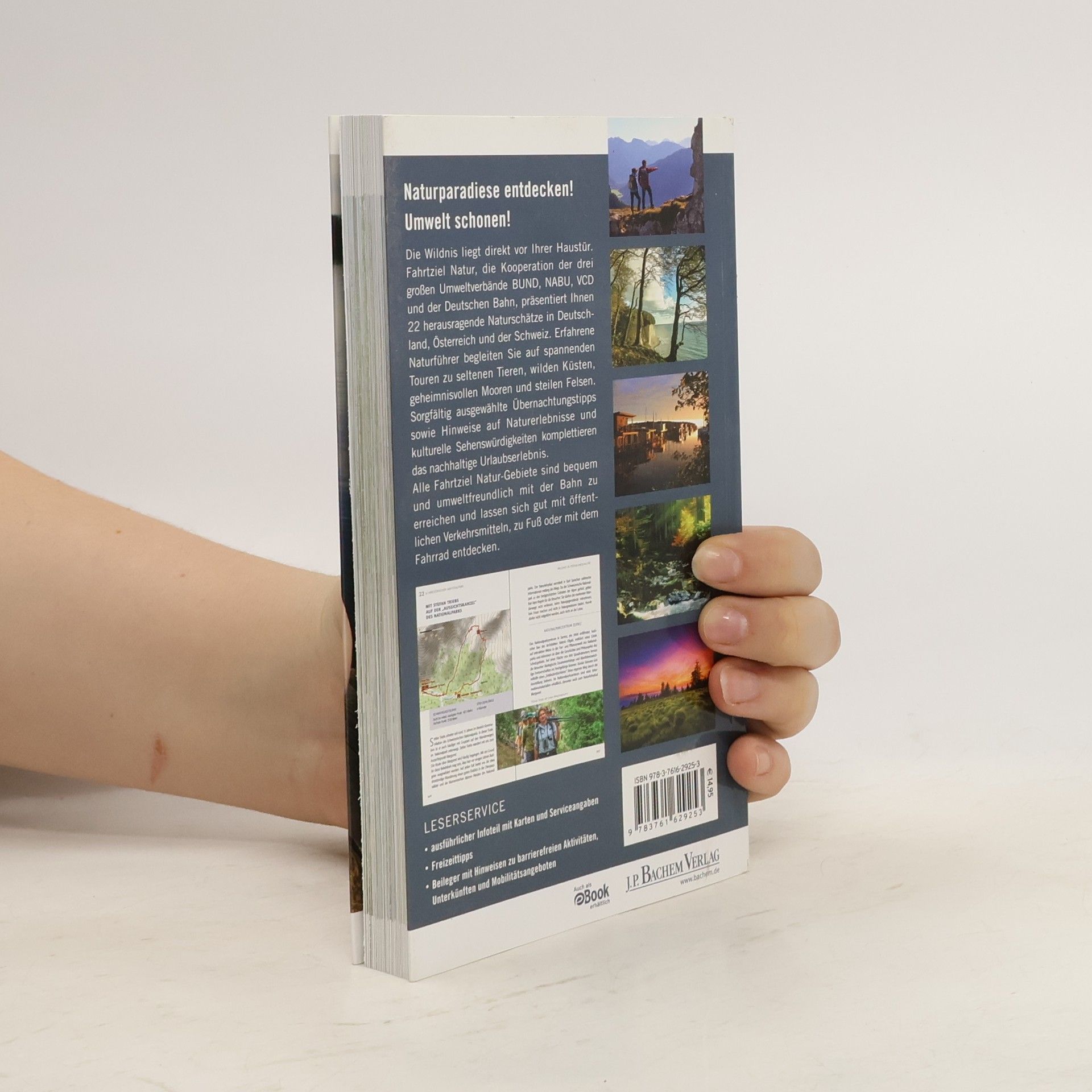 Was ist eigentlich ein Warzenbeißer? Und welche besondere Ehre wurde gleich fünf Buchenwäldern in Deutschland zuteil? Die einzigartigen Landschaften in Deutschland, Österreich und der Schweiz stecken voller Überraschungen, Naturschätze und kultureller Sehenswürdigkeiten. Fahrtziel Natur, eine Kooperation der Umweltverbände BUND, NABU und VCD gemeinsam mit der Deutschen Bahn, sorgt seit 2001 dafür, dass möglichst viele Menschen diese Paradiese mit ihren seltenen Tierarten und der einzigartigen Pflanzenvielfalt erleben können – und zugleich das Klima und die Umwelt schonen. Zum 15. Geburtstag von Fahrtziel Natur präsentiert das gleichnamige Buch ausgewählte Touren in jedem der 22 Fahrtziel Natur-Gebiete. Konkrete Informationen zur umweltfreundlichen Anreise und Mobilität vor Ort, Übernachtungstipps sowie ausgewählte Hinweise auf Naturerlebnisse und kulturelle Anziehungspunkte machen Lust auf einen nachhaltigen Urlaub, bei dem das Auto getrost daheim bleiben kann. Hinweis: Der beigelegte Online-Gutschein ist leider nicht mehr gültig.