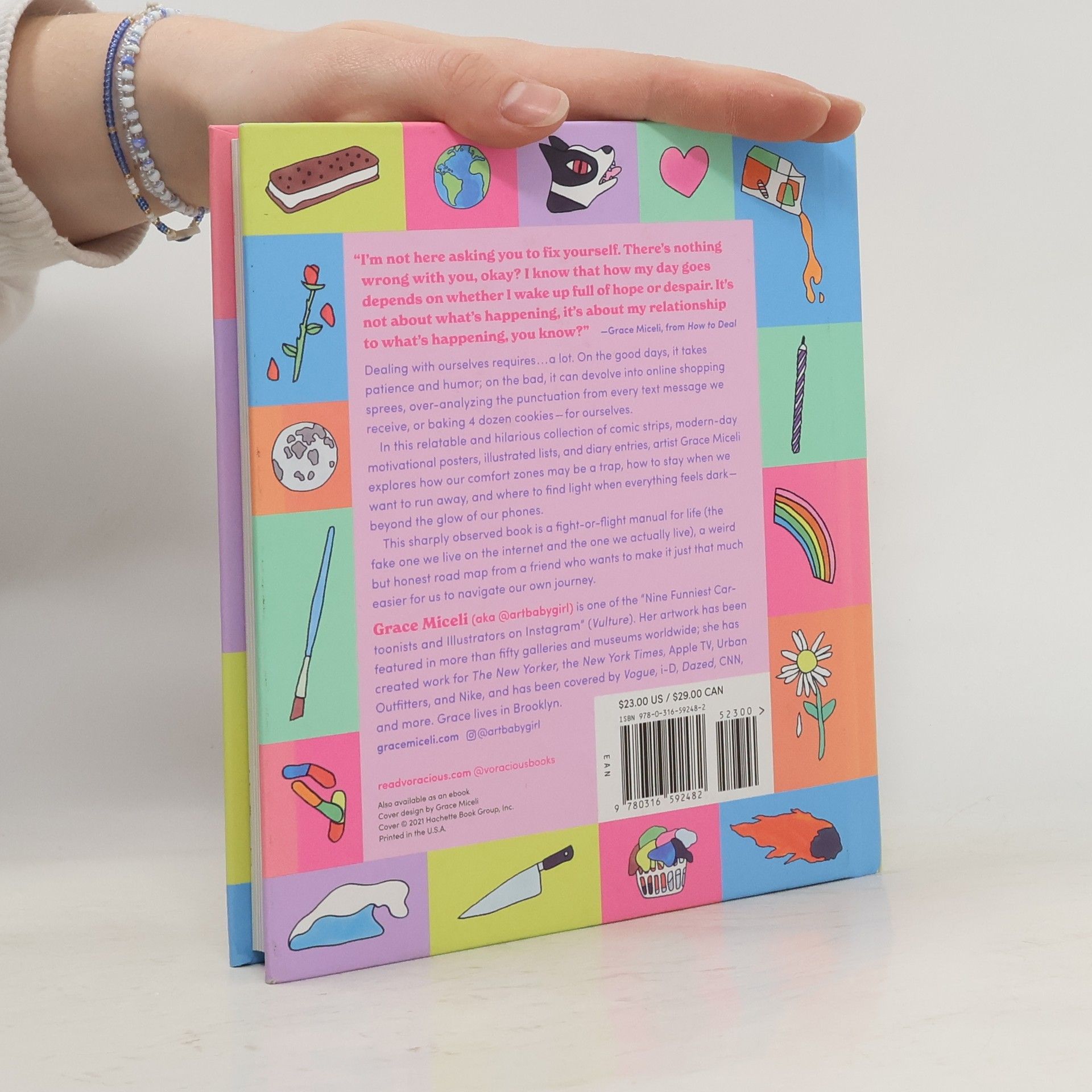 Power through your worst days so you can enjoy the good ones with this "fight or flight" manual for life (the fake one you live on the internet and the one you actually live).“I’m not here asking you to fix yourself. There’s nothing wrong with you, okay? I know that how my day goes depends on whether I wake up full of hope or despair. It’s not about what’s happening, it’s about my relationship to what’s happening, you know?” –Grace Miceli, from How to DealDealing with ourselves requires . . . a lot. On the good days, it takes patience and humor; on the bad, it can devolve into online shopping sprees, over-analyzing the punctuation from every text message you receive or baking 4 dozen cookies—for ourselves.In this relatable and hilarious collection of comic strips, modern day motivational posters, and illustrated lists and diary entries, illustrator Grace Miceli explores how our comfort zones may be a trap, how to stay when you want to run away, and where to find light when everything feels dark—beyond the glow of your phone.This sharply observed book is a "fight or flight" manual for life (the fake one you live on the internet and the one you actually live), a weird but honest road map from a friend who wants to make it just that much easier for you to navigate your own journey.