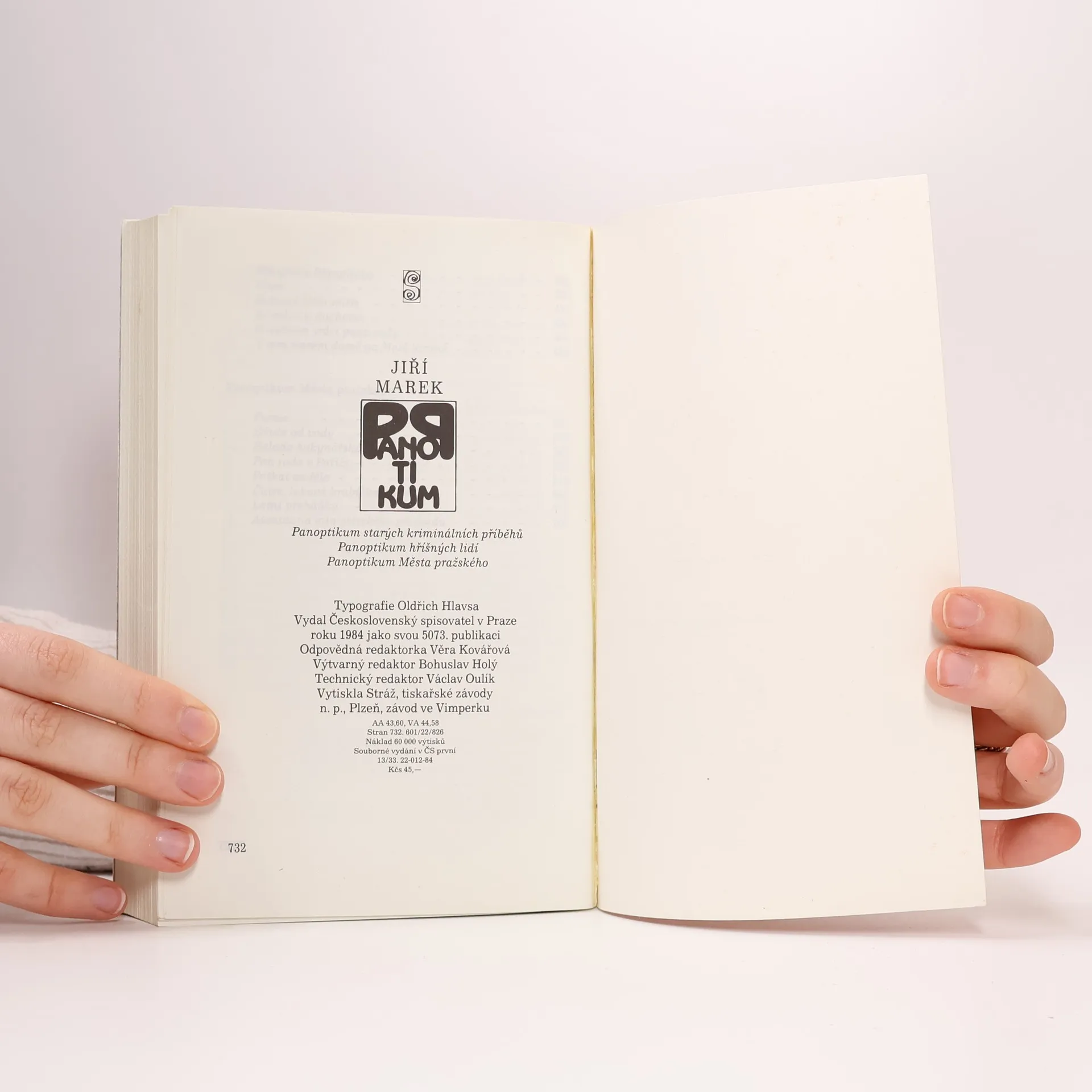 Kniha je souborným vydáním tří knih z pražské galérky. Panoptikum starých kriminálních příběhů, Panoptikum hříšných lidí a Panoptikum Města pražského. v ČS: 1. souborné vydání Pozn.: - Vydáno pod autorovým pseudonymem Jiří Marek. - Autor obálky M. Jaroš není v tiráži aniv impresu uveden.