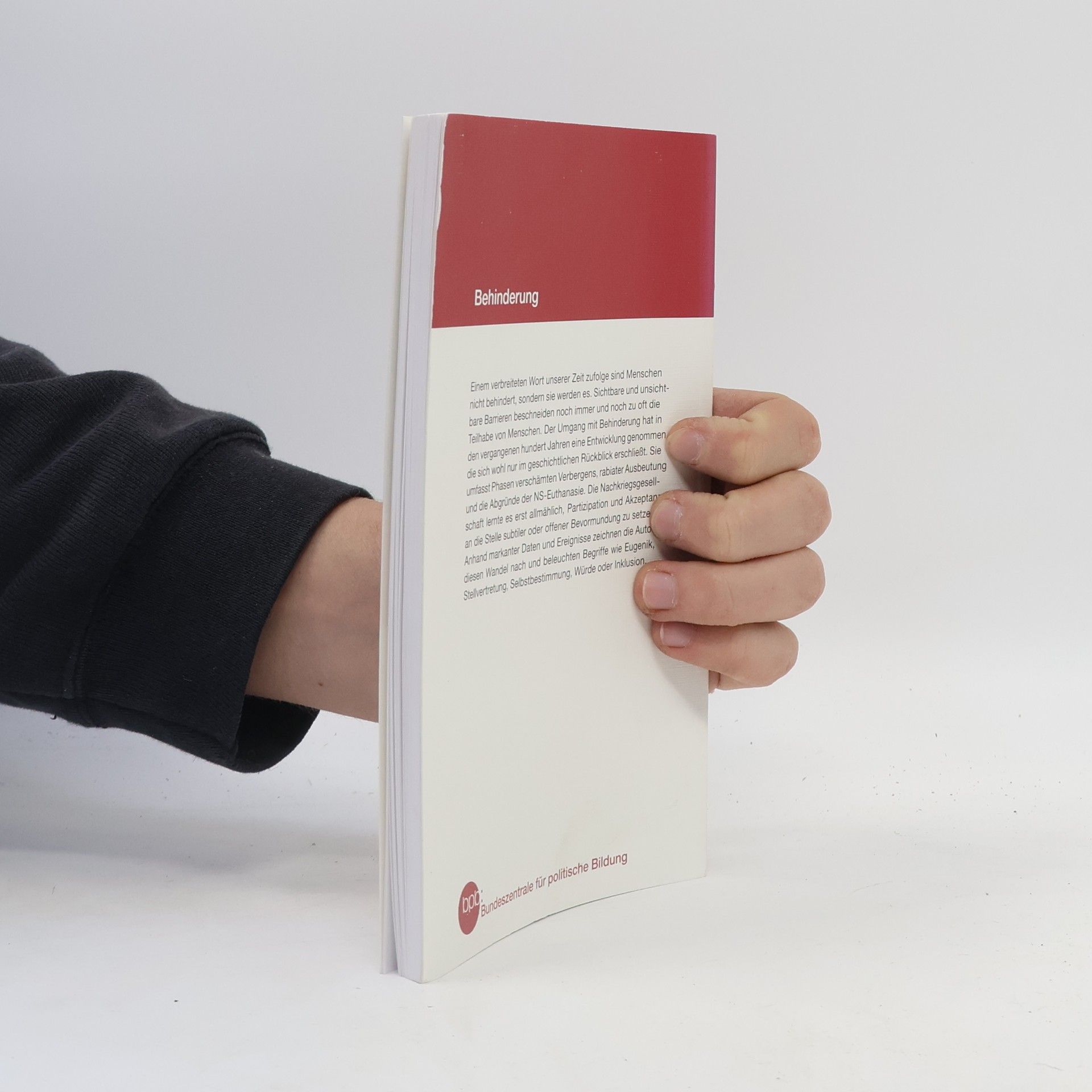 Einem verbreiteten Wort unserer Zeit zufolge sind Menschen nicht behindert, sondern sie werden es. Sichtbare und unsichtbare Barrieren beschneiden noch immer und noch zu oft die Teilhabe von Menschen. Der Umgang mit Behinderung hat in den vergangenen hundert Jahren eine Entwicklung genommen, die sich wohl nur im geschichtlichen Rückblick erschließt. Sie umfasst Phasen verschämten Verbergens, rabiater Ausbeutung und die Abgründe der NS-Euthanasie. Die Nachkriegsgesellschaft lernte erst allmählich, Partizipation und Akzeptanz an die Stelle subtiler oder Offener Bevormundung zu setzten. Anhand markanter Daten und Ereignisse zeichnen die Autoren diesen Wandel nach und beleuchten Begriffe wie Eugenik, Stellvertretung, Selbstbestimmung, Würde oder Inklusion.