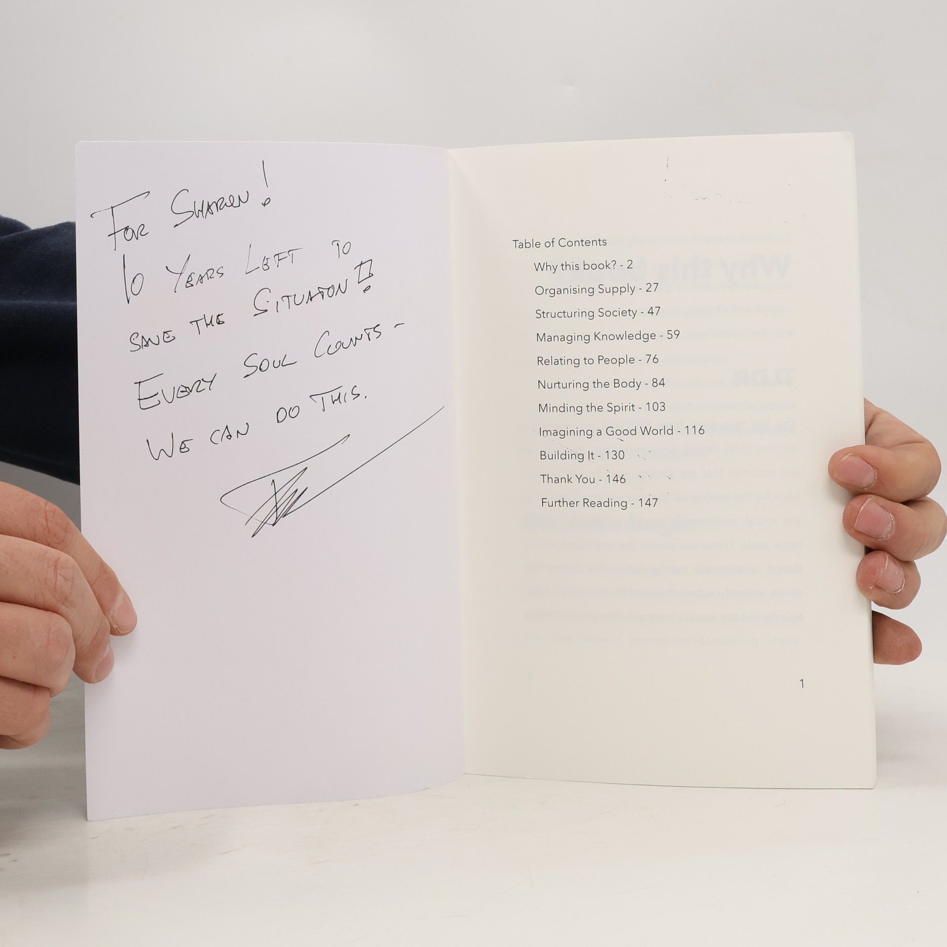 Most of the time we look at the past and the present to describe what we think the future might bring - and in doing so we use all of our experience about what can go wrong to extrapolate possible pictures of how it could blow up. Turning this into a narrative about the future is dangerous - our subconscious does not differentiate between what is desirable and what is not - it takes all input at face value and helps us achieve it. Even if this is something we don't want. We need a positive narrative of how we want to live in balance with this planet and ten billion people and the rest of nature. We need a narrative that guides the way out of the current - apparently broken - paradigm into a new one that allows us and the planet to thrive. This book is a contribution to the global conversation of developing such a narrative and action guide.