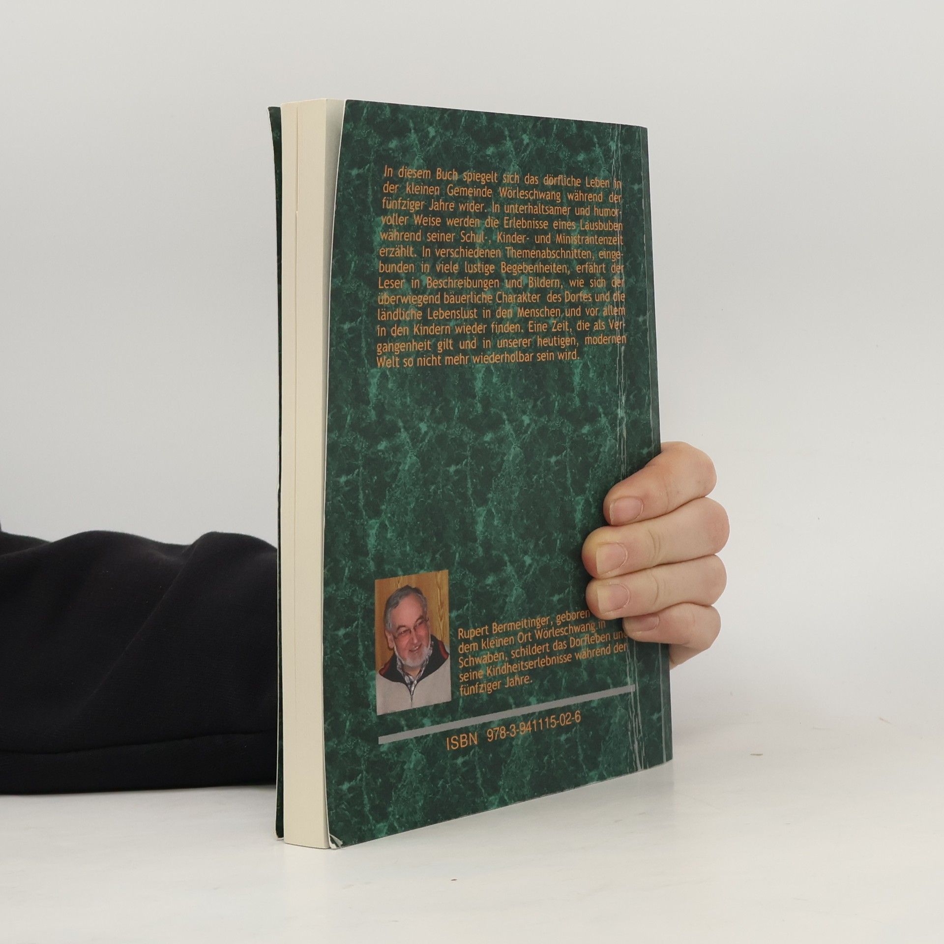 Rupert Bermeitinger, geboren 1951 in dem kleinen Ort Wörleschwang in Schwaben, schildert das Dorfleben und seine Kindheitserlebnisse während der fünfziger Jahre. In unterhaltsamer und humorvoller Weise werden die Erlebnisse eines Lausbuben während seiner Schul-, Kinder- und Ministrantenzeit erzählt. In verschiedenen Themenabschnitten, eingebunden in viele lustige Begebenheiten, erfährt der Leser in Beschreibungen und Bildern, wie sich der überwiegend bäuerliche Charakter des Dorfes und die ländliche Lebenslust in den Menschen und vor allem in den Kindern wieder finden. Mit 31 Schwarz-Weiß-Fotos