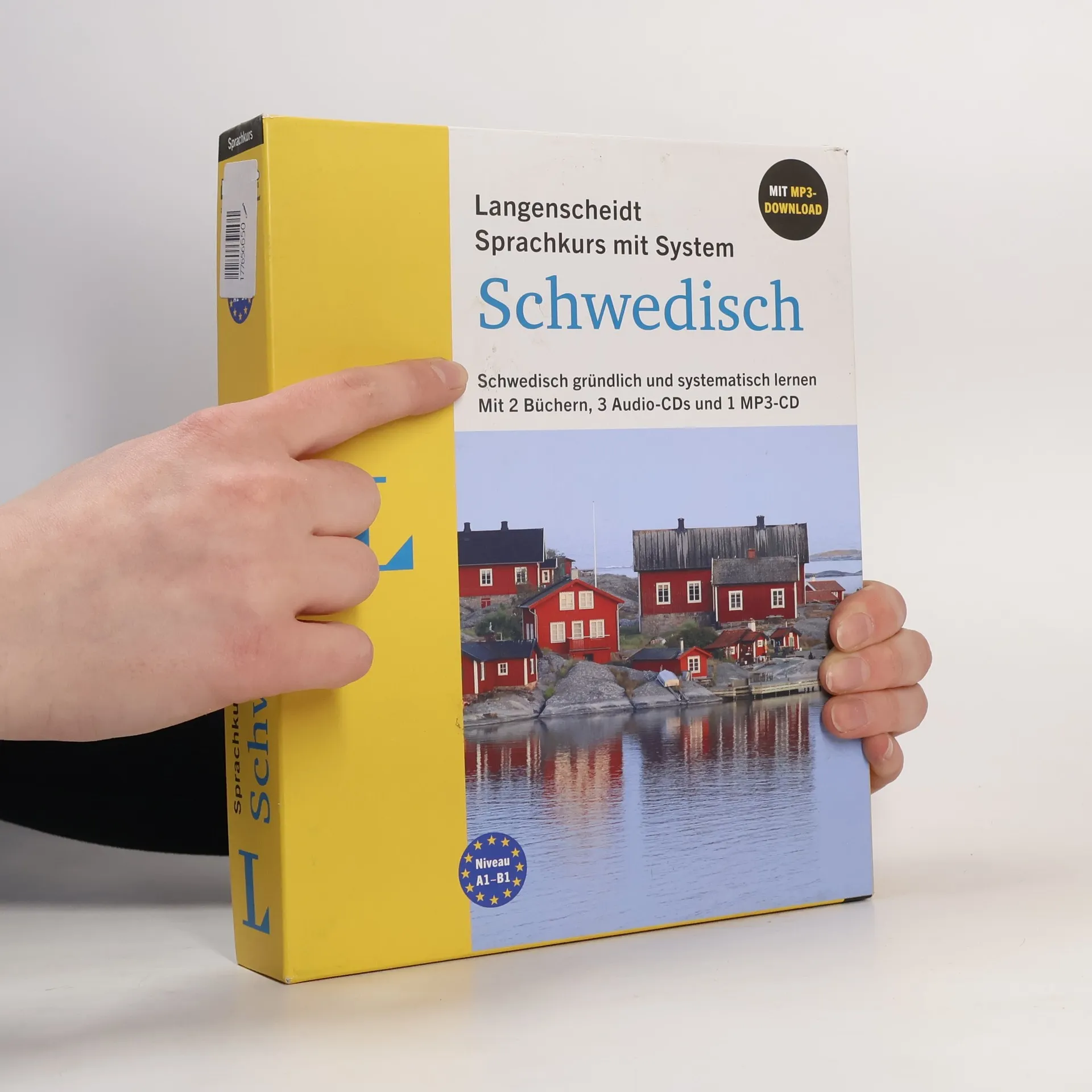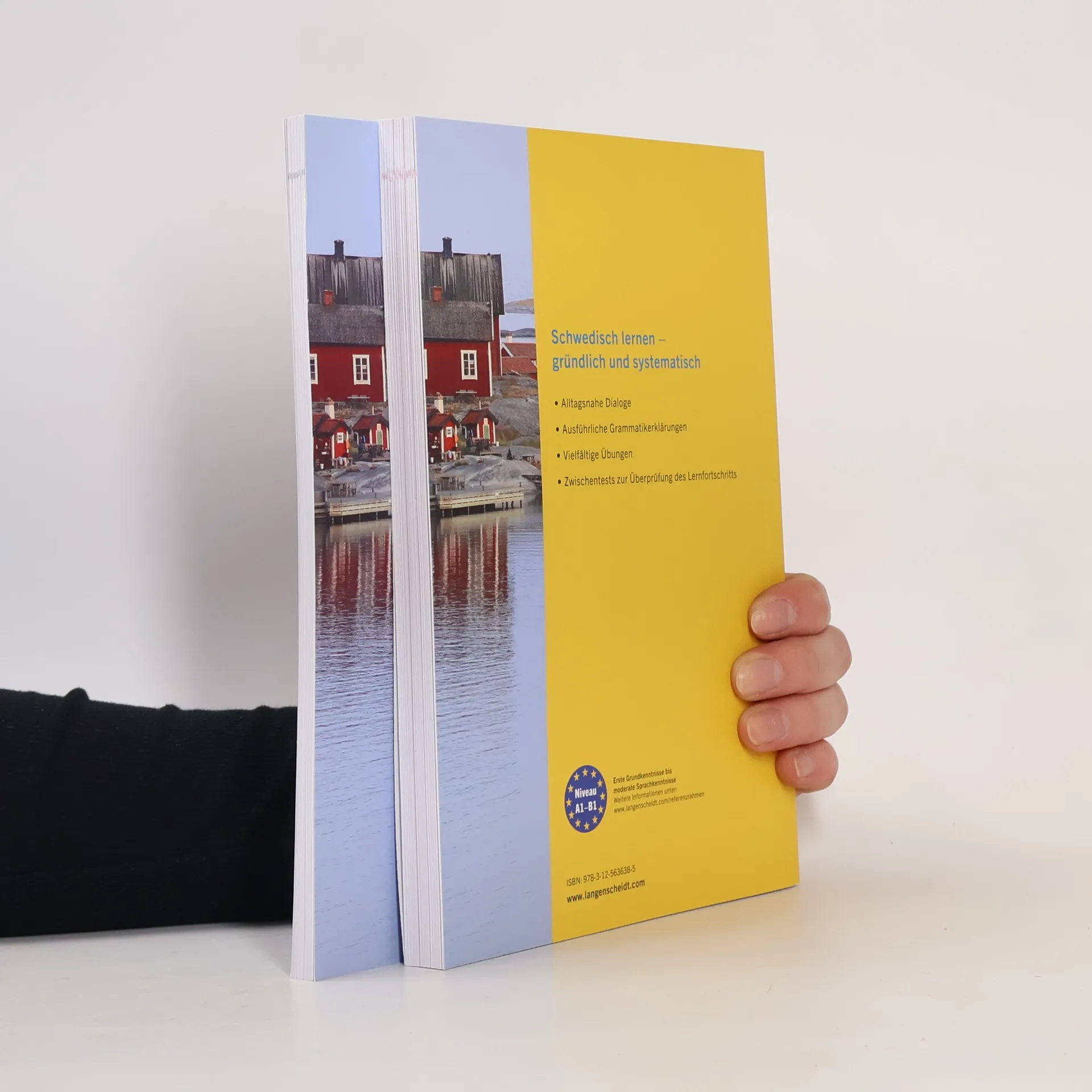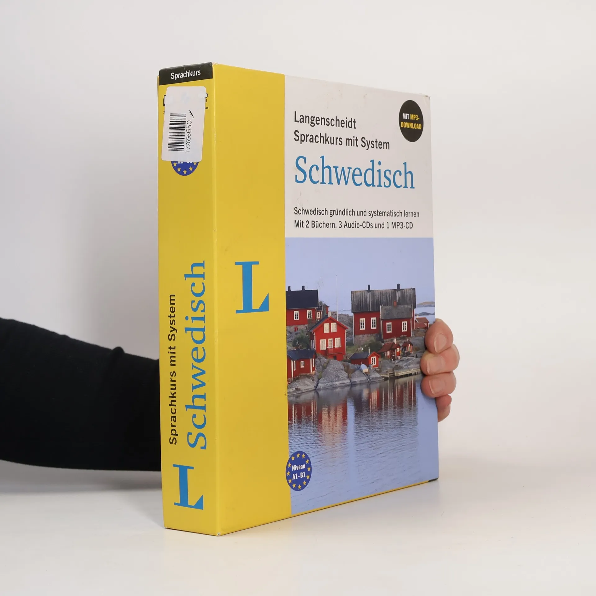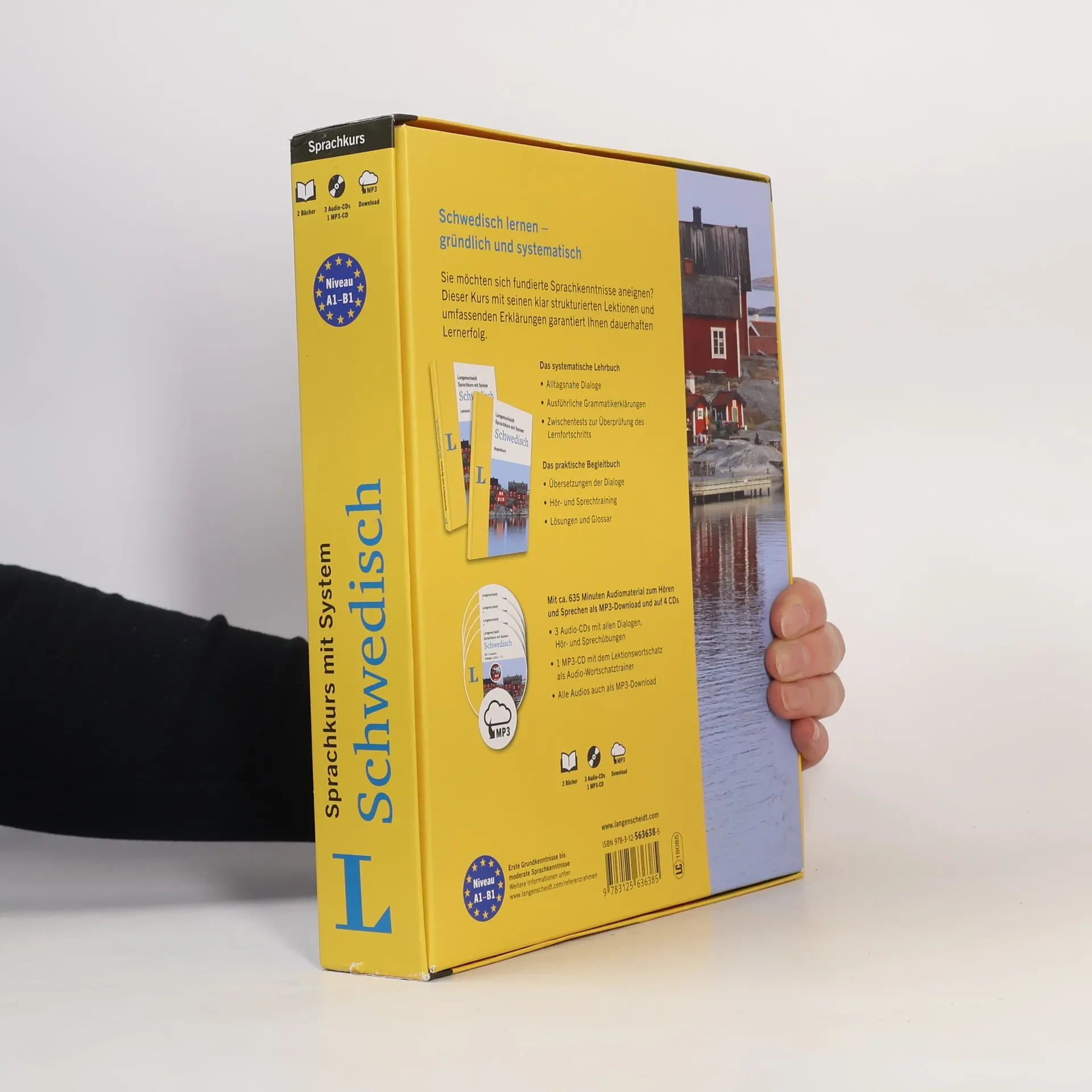 Schwedisch lernen – gründlich und systematisch Sie möchten sich fundiert Schwedisch lernen? Dieser Schwedisch-Kurs mit seinen klar strukturierten Lektionen und umfassenden Erklärungen garantiert Ihnen dauerhaften Lernerfolg. Das systematische Schwedisch-Lehrbuch: Alltagsnahe schwedische Dialoge Ausführliche Grammatikerklärungen Zwischentests zur Überprüfung des Lernfortschritts Niveau A1-B1: Erste Grundkenntnisse bis moderate Sprachkenntnisse Das praktische Begleitbuch: Übersetzungen der Dialoge Hör- und Sprechtraining Lösungen und Glossar Mit ca. 635 Minuten Audiomaterial zum Hören und Sprechen als MP3-Download und auf 4 CDs 3 Audio-CDs mit allen Dialogen, Hör- und Sprechübungen 1 MP3-CD mit dem Lektionswortschatz als Audio-Wortschatztrainer Gesamtlaufzeit: ca. 635 Minuten Alle Audios auch als MP3-Download Abwechslungsreich und zielorientiert Das Lehrbuch führt nachhaltig zum Erfolg. Anhand alltagsnaher Themen werden der Grundwortschatz sowie die Grundlagen der Schrift, Aussprache und Grammatik vermittelt. Die Dialoge und Übungen greifen typische Situationen im Alltag und auf der Reise auf. Dank sinnvoller Zwischentests kann der Lernerfolg leicht überprüft werden. Multimedialer Mix Sprachen lernen fällt leichter, wenn alle Sinne angesprochen werden. Langenscheidt hält daher zusätzlich zum Lehrbuch 3 Audio-CDs sowie eine MP3-CD bereit, mit denen Sie Schwedisch fast wie nebenbei lernen. Im Auto, Zug oder zu Hause – mithilfe der ergänzenden Übungen und dem Wortschatztrainer können Sie die gelernten Inhalte vertiefen und die richtige Aussprache erlernen. Als zusätzlicher Service steht das gesamte Audio-Material online zum Download bereit.