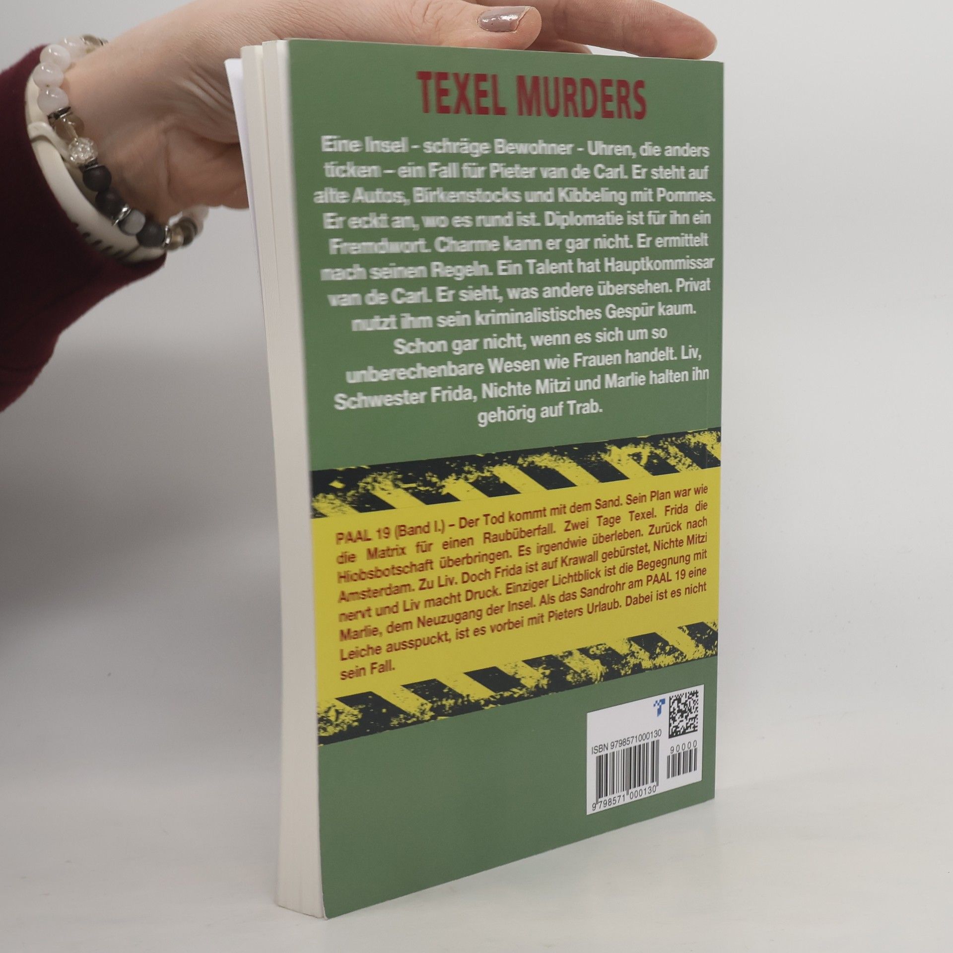 Eine Insel - schräge Bewohner - Uhren, die anders ticken - ein Fall für Pieter van de Carl.Er steht auf alte Autos, Birkenstocks und Kibbeling mit Pommes. Er eckt an, wo es rund ist. Diplomatie ist für ihn ein Fremdwort. Charme kann er gar nicht. Er ermittelt nach seinen Regeln. Ein Talent hat Hauptkommissar van de Carl. Er sieht, was andere übersehen. Privat nutzt ihm sein kriminalistisches Gespür kaum. Schon gar nicht, wenn es sich um so unberechenbare Wesen wie Frauen handelt. Liv, Schwester Frida, Nichte Mitzi und Marlie halten ihn gehörig auf Trab.PAL 19 (Band I.) - Der Tod kommt mit dem SandSein Plan war wie die Matrix für einen Raubüberfall. Zwei Tage Texel. Frida die Hiobsbotschaft überbringen. Es irgendwie überleben. Zurück nach Amsterdam. Zu Liv. Doch Frida ist auf Krawall gebürstet, Nichte Mitzi nervt und Liv macht Druck. Einziger Lichtblick ist die Begegnung mit Marlie, dem Neuzugang der Insel. Als das Sandrohr am PAL 19 eine Leiche ausspuckt, ist es vorbei mit Pieters Urlaub. Dabei ist es nicht sein Fall.