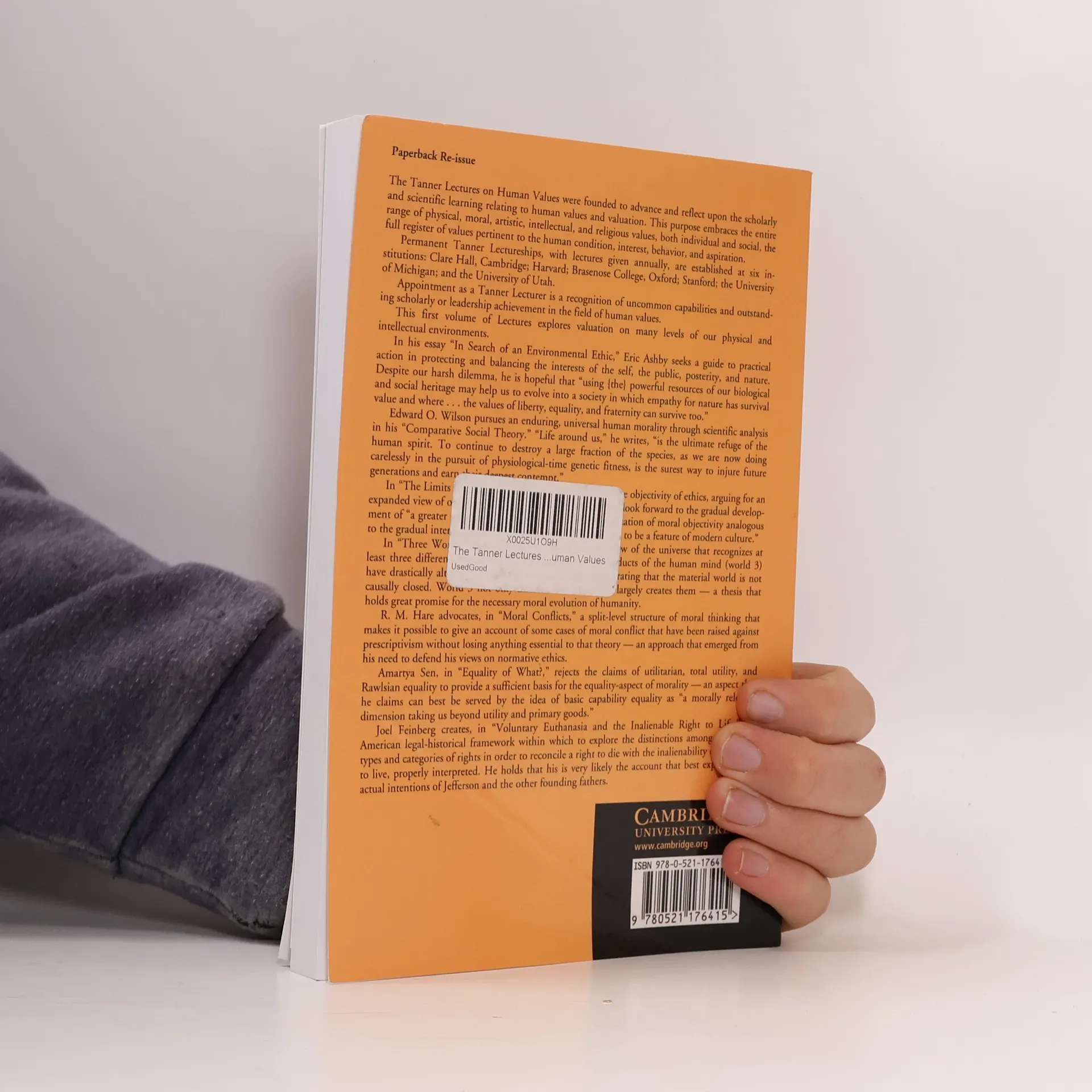 The Tanner Lectures on Human Values, Eric Ashby, Edward O. Wilson, Thomas Nagel, Karl Popper, R. M. Hare, Amartya Sen, Joel Feinberg, Sterling M. McMurrin