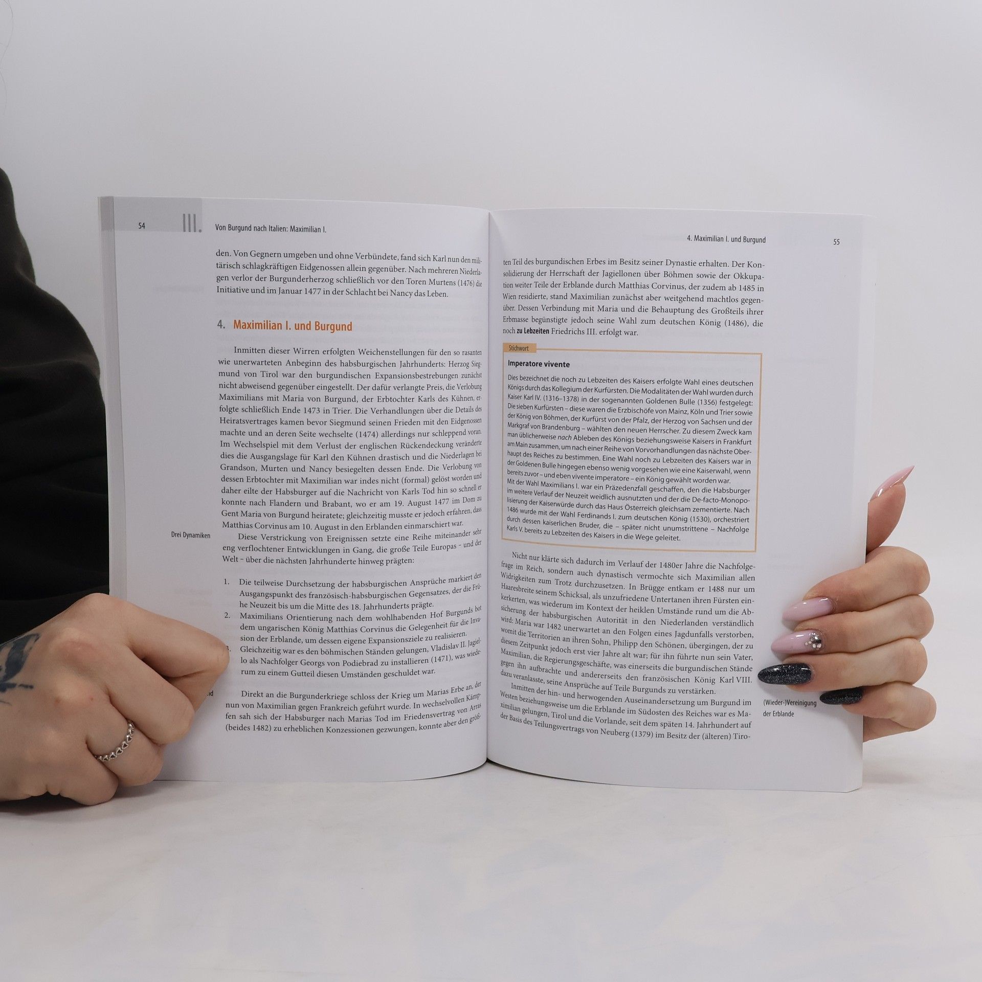 Der vorliegende Band umft in einem Panorama von rund 100 Jahren den erfolgreichen Machtzuwachs habsburger Herrscher am Ende des Mittelalters und zu Beginn der frühen Neuzeit. Vom letzten Drittel des 15. Jahrhunderts unter der erfolgreichen Expansionspolitik Maximiliens I. bis zur ersten Hälfte des 16. Jahrhunderts und der Abdankung Karls V. umgreift der Autor den Aufstieg der Habsburgermonarchie zur europäischen Zentralmacht und schließlich deren Teilung in eine spanische und eine österreichische Linie. Beginnend mit der Kaiserkrönung Friedrichs III. 1440 und der erfolgreichen Heiratspolitik seines Sohnes Maximilien, welche die Grundlage für den großdynastischen Aufstieg der Habsburger bedeutete, schließt der Band mit der zugleich größten Machtfülle und dem Scheitern dieser Ambitionen unter Karl V. Dabei werden sowohl dynastische, rechtliche und territoriale Aspekte als auch zentrale politische Ereignisse wie der Schmalkaldische Krieg und der Augsburger Religionsfriede untersucht.