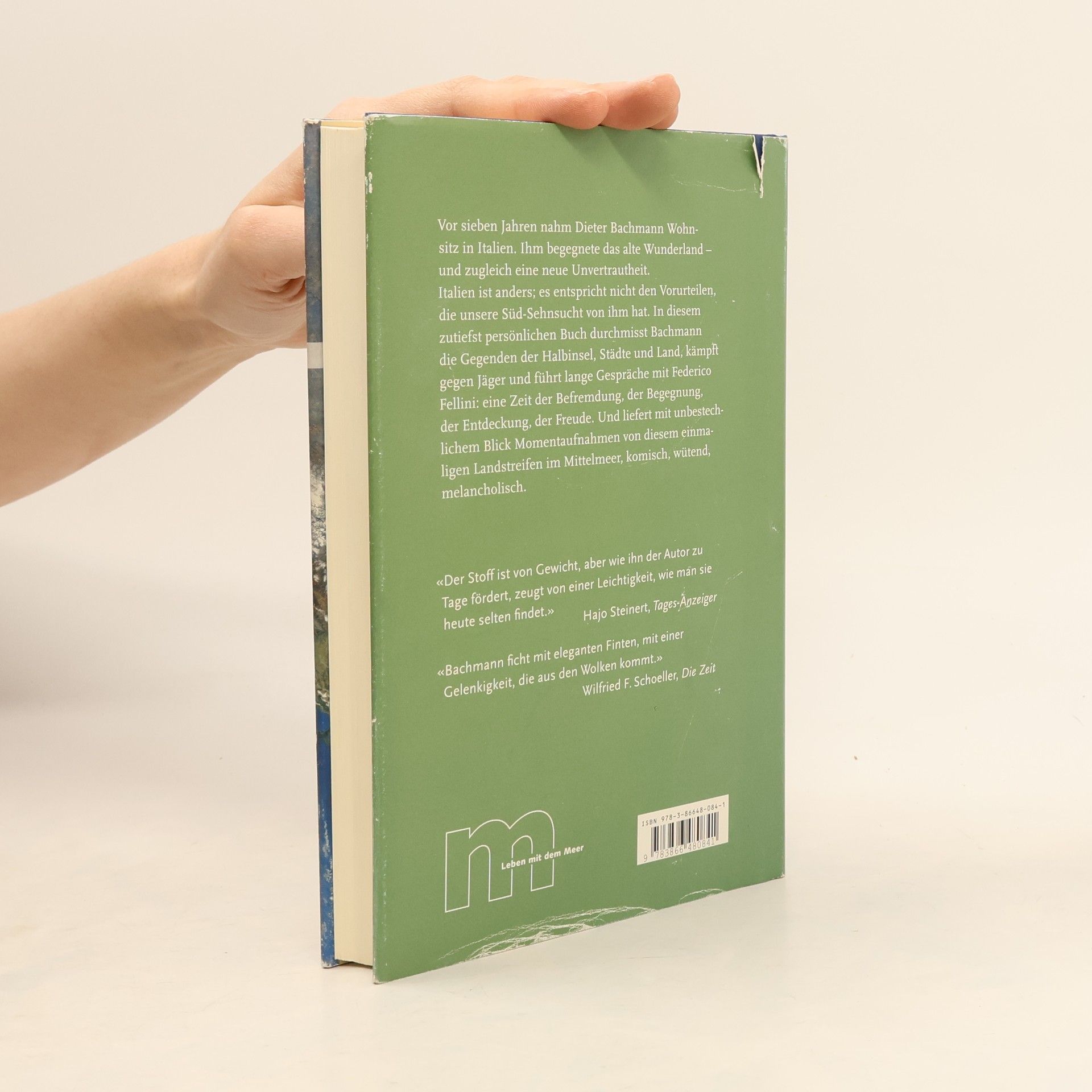 'Mare o terra?' – 'Meer oder Festland?' – in Italien muss man sich nicht entscheiden. Auch wer mitten im Land lebt, ist immer irgendwie Küstenbewohner auf dem frech ins Mittelmeer gestreckten Stiefel, der zwar mit dem Kontinent verbunden ist, doch so weit in die See ausschreitet, dass er über einen ganz eigenen Blutkreislauf verfügt. Dieter Bachmann hat vor langer Zeit seine Schweizer Heimat verlassen, die Alpen überquert und sich auf dieser Halbinsel ein Stück Land gekauft und ein Haus gebaut. Es dauerte nicht lang, und er machte Bekanntschaft mit wilden Kühen, die seine Wiesen zertrampelten, Wilderern, die nachts mit Äxten durch die Felder streiften, Jägern, Brandstiftern und Einbrechern – und eines Morgens lagen seine beiden Hunde vergiftet vor der Tür. Doch Dieter Bachmann blieb. Denn Italien, halb Wunderland, halb Höllenschlund, hatte ihn längst in seinen Bann geschlagen. In diesem Buch durchmisst Bachmann seine schrecklich schöne Wahlheimat und liefert mit unbestechlichem Blick Momentaufnahmen von einem Landstreifen im Meer. '‹Das ist die Menschheit›, sagte einer auf dem Hügel. ‹Man kann sie nicht lieben. Aber man muss sich eingestehen, dass man dazu gehört.›'