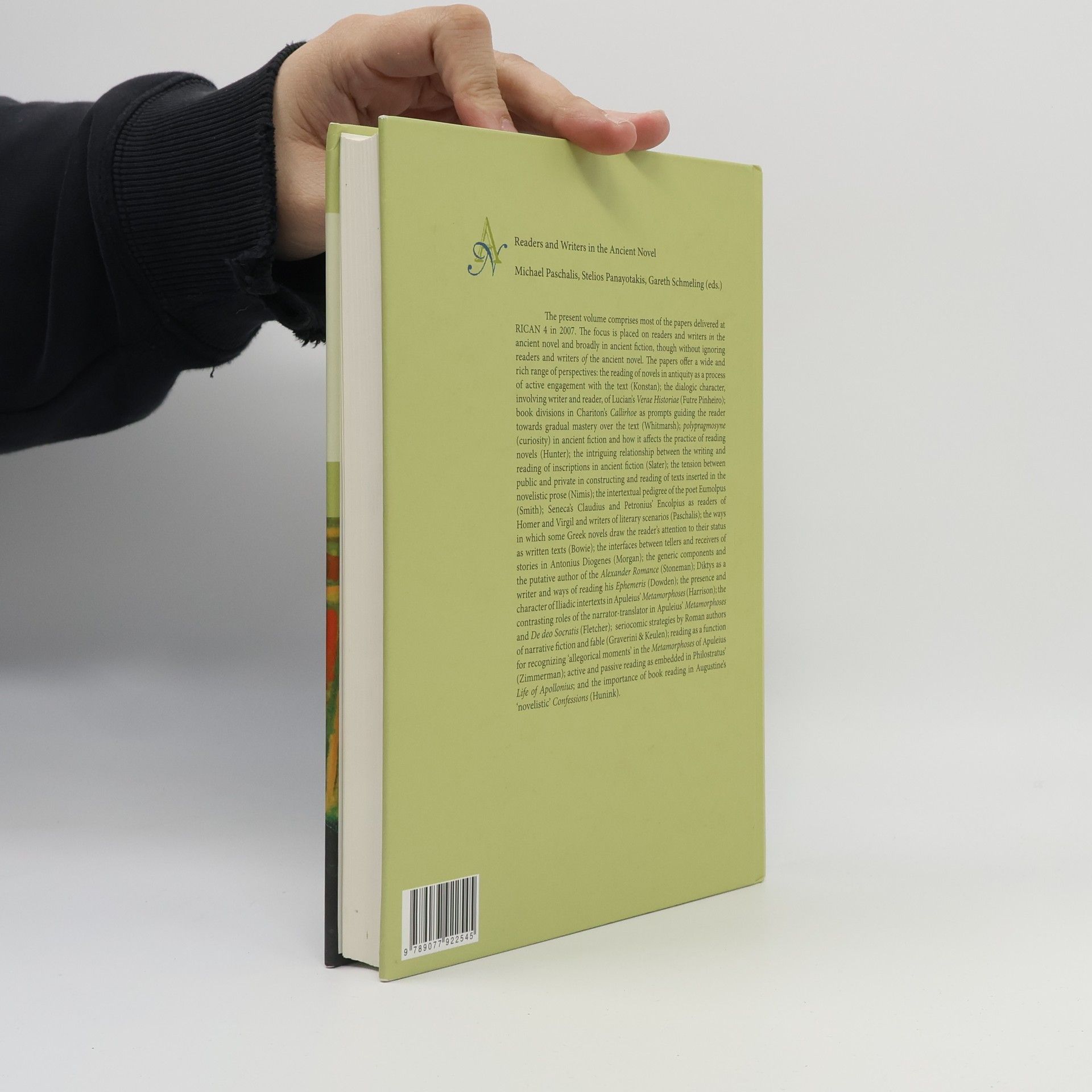 This volume features papers from RICAN 4 in 2007, focusing on readers and writers in ancient novels and fiction. The contributions explore the active engagement of readers with texts, highlighting various aspects of reading in antiquity. Key topics include the dialogic nature of Lucian's Verae Historiae, the role of book divisions in Chariton's Callirhoe as guides for reader mastery, and the influence of curiosity (polypragmosyne) on reading practices. The relationship between writing and reading inscriptions in ancient fiction is examined, alongside the public-private tension in text construction. The intertextual lineage of the poet Eumolpus is discussed, as well as Seneca's and Petronius' interpretations of Homer and Virgil. Some Greek novels draw attention to their textual status, while the dynamics between storytellers and audiences are analyzed in Antonius Diogenes. The generic elements and authorship of the Alexander Romance are explored, as well as Diktys' writing and reading approaches. Iliadic intertexts in Apuleius' Metamorphoses are examined, contrasting narrator-translator roles in his works. The volume also addresses seriocomic strategies in Roman narrative fiction, the recognition of allegorical moments in Apuleius, active versus passive reading in Philostratus' Life of Apollonius, and the significance of book reading in Augustine's Confessions.
