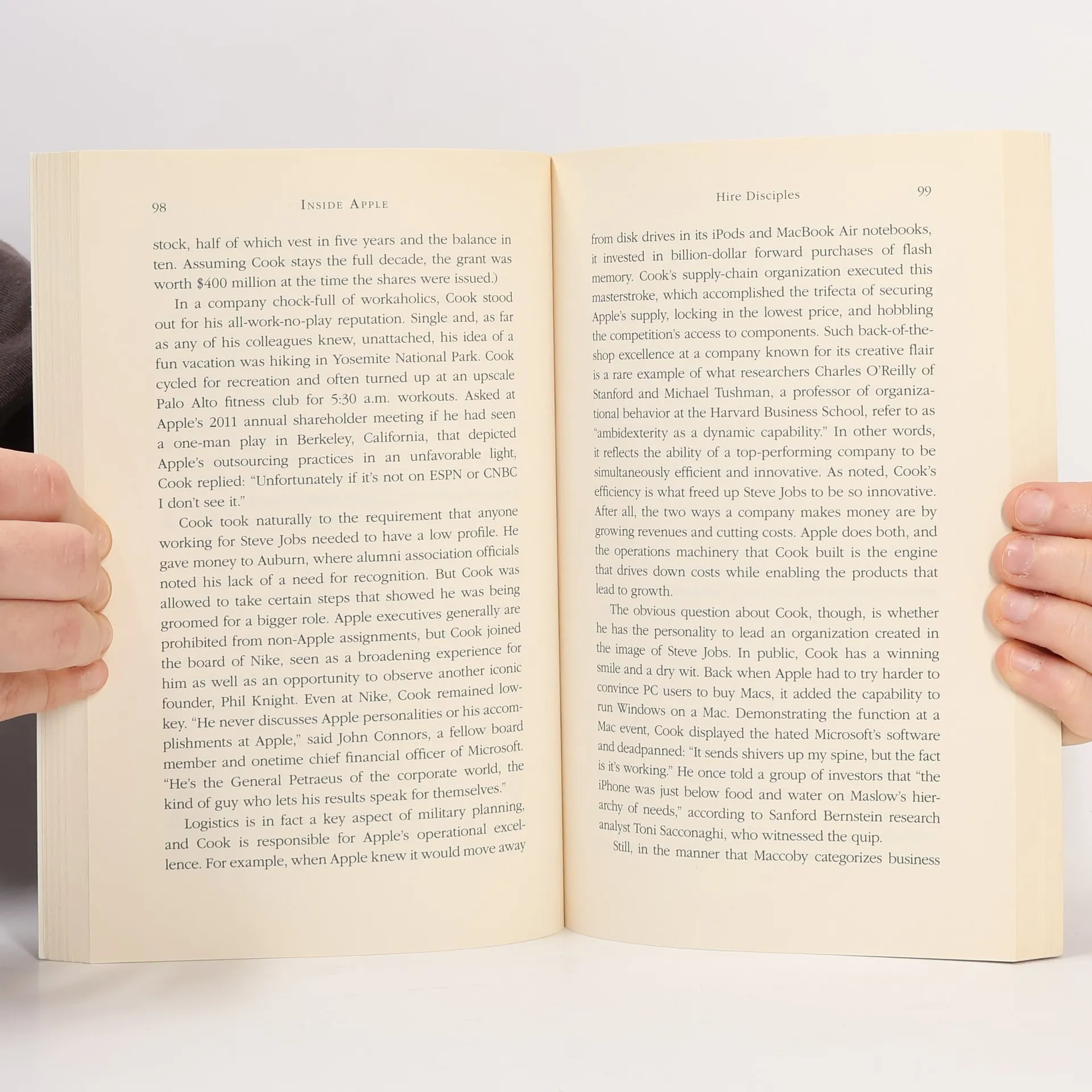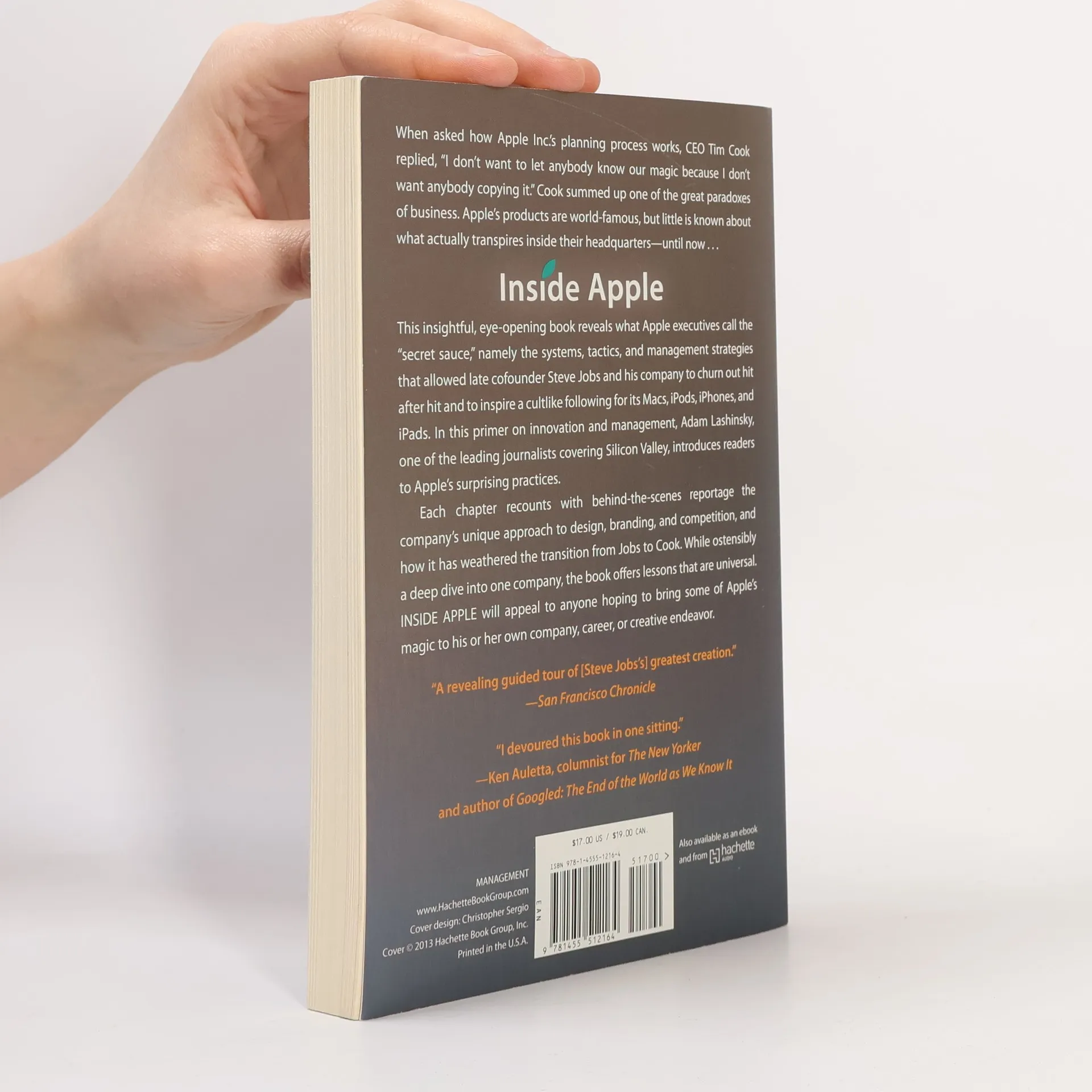 INSIDE APPLE unveils the systems, tactics, and leadership strategies that enabled Steve Jobs and his company to consistently produce successful products and cultivate a devoted following. Author Adam Lashinsky offers readers an exclusive glimpse into what makes Apple tick, likening it to Silicon Valley's own Willy Wonka's Chocolate Factory. This insightful exploration introduces key concepts such as the DRI (Directly Responsible Individual) approach, where every task is assigned to a specific person, and the Top 100, an annual gathering of promising executives for a secret retreat with Jobs. Drawing from numerous interviews, the book provides fresh insights into Apple's innovation processes, supplier relationships, and its transition into the Post Jobs Era. As a Senior Editor at Large for Fortune, Lashinsky has extensive knowledge of the subject; he accurately predicted Tim Cook's rise to CEO in a 2008 cover story. While focused on Apple and its ecosystem of suppliers, investors, and competitors, the lessons on leadership, product design, and marketing resonate universally. This book is a valuable resource for anyone looking to infuse their own endeavors with a touch of Apple’s unique magic.