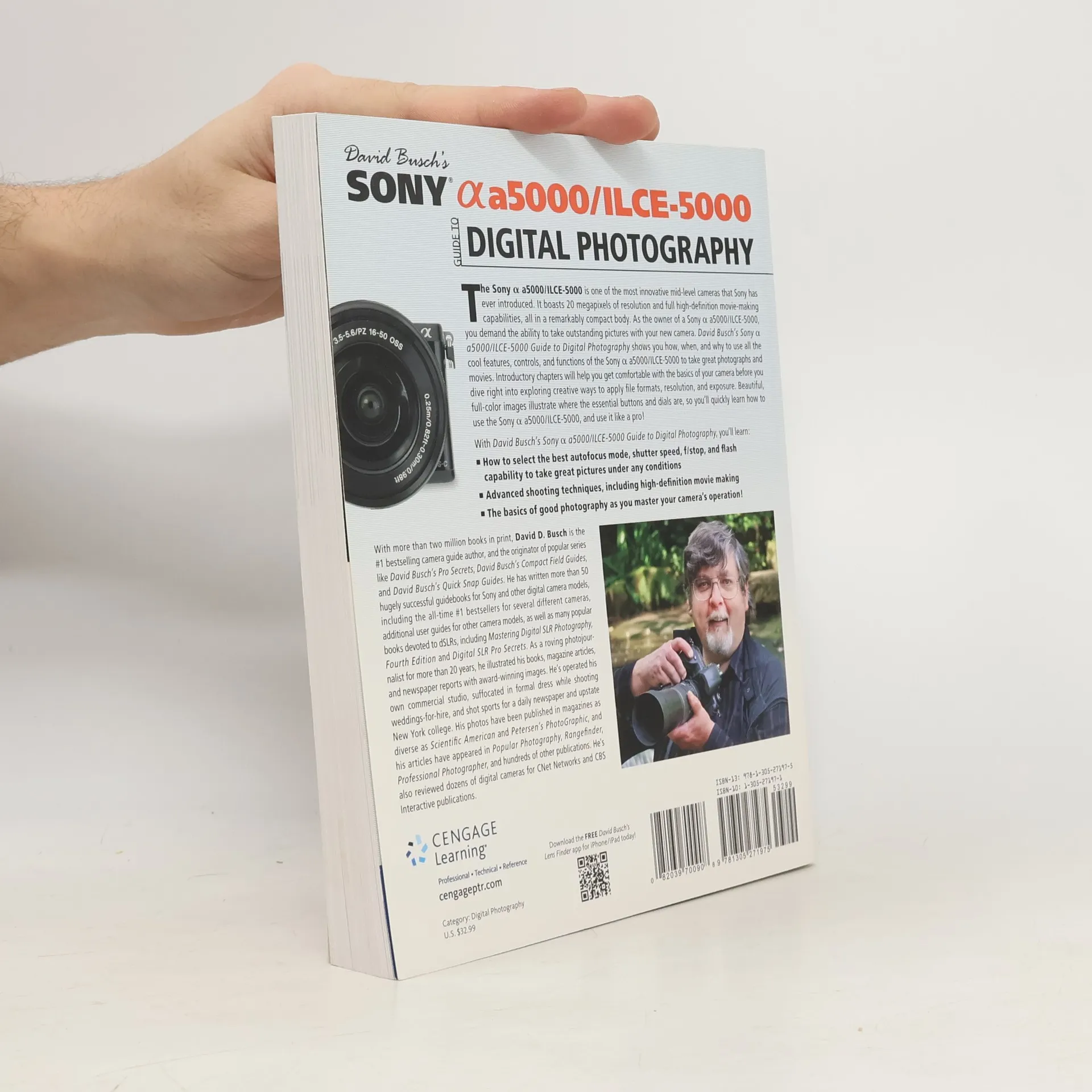 The Sony a a5000/ILCE-5000 is one of the most innovative mid-level cameras that Sony has ever introduced. It boasts 20 megapixels of resolution and full high-definition movie-making capabilities, all in a remarkably compact body. As the owner of a Sony a a5000/ILCE-5000, you demand the ability to take outstanding pictures with your new camera. DAVID BUSCH'S SONY A5000/ILCE-5000 GUIDE TO DIGITAL PHOTOGRAPHY shows you how, when, and why to use all the cool features, controls, and functions of the Sony a5000/ILCE-5000 to take great photographs and movies. Introductory chapters will help you get comfortable with the basics of your camera before you dive right into exploring creative ways to apply file formats, resolution, and exposure. Beautiful, full-color images illustrate where the essential buttons and dials are, so you'll quickly learn how to use the Sony a a5000/ILCE-5000, and use it like a pro! With DAVID BUSCH'S SONY A5000/ILCE-5000 GUIDE TO DIGITAL PHOTOGRAPHY, you'll learn how to select the best autofocus mode, shutter speed, f/stop, and flash capability to take great pictures under any conditions; advanced shooting techniques, including high-definition movie making; and the basics of good photography as you master your camera's operation!