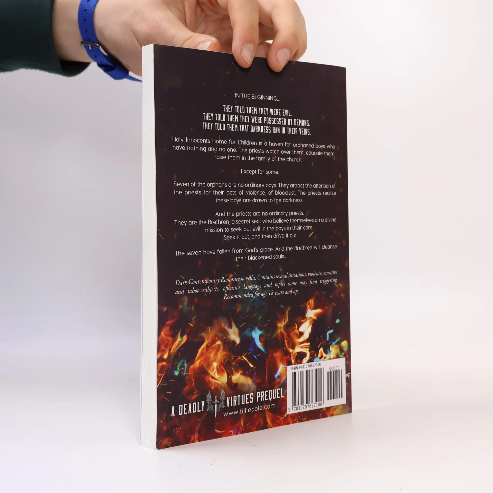 IN THE BEGINNING... They told them they were evil. They told them they were possessed by demons. They told them that darkness ran in their veins. Holy Innocents Home for Children is a haven for orphaned boys who have nothing and no one. The priests watch over them, educate them, raise them in the family of the church. Except for some. Seven of the orphans are no ordinary boys. They attract the attention of the priests for their acts of violence, of bloodlust. The priests realize these boys are drawn to the darkness. And the priests are no ordinary priests. They are the Brethren, a secret sect who believe themselves on a divine mission to seek out evil in the boys in their care. Seek it out, and then drive it out. The seven have fallen from God’s grace. And the Brethren will cleanse their blackened souls… Dark Contemporary Romance novella. Contains sexual situations, violence, sensitive and taboo subjects, offensive language and topics some may find triggering. Recommended for age 18 years and up. The Fallen: Genesis is a prequel novella in The Deadly Virtues Series and MUST be read before RAPHAEL (DV: book one).