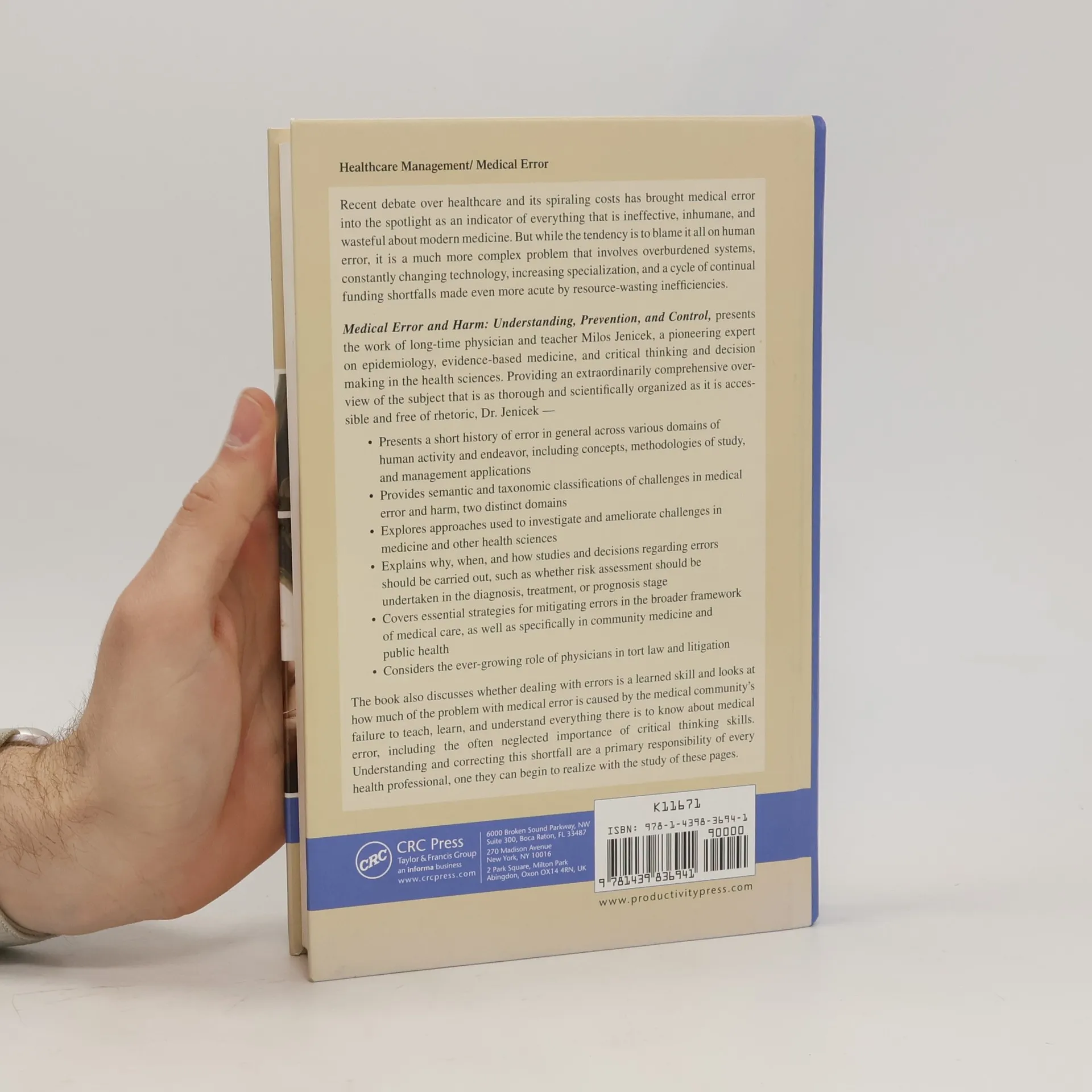 Recent debate over healthcare and its spiraling costs has brought medical error into the spotlight as an indicator of everything that is ineffective, inhumane, and wasteful about modern medicine. But while the tendency is to blame it all on human error, it is a much more complex problem that involves overburdened systems, constantly changing technology, increasing specialization, and a cycle of continual funding shortfalls made even more acute by resource-wasting inefficiencies. <strong>Medical Error and Harm: Understanding, Prevention and Control, </strong><em> </em>presents the work of long time physician and teacher Milos Jenicek, a pioneering expert on epidemiology, evidence-based medicine, and critical thinking and decision making in the health sciences. Providing an extraordinarily comprehensive overview of the subject that is as thorough and scientifically organized as it is accessible and free of rhetoric, Dr. Jenicek -- Presents a short history of error in general across various domains of human activity and endeavor, including concepts, methodologies of study, and management applications Provides semantic and taxonomic classifications of challenges in medical error and harm, two distinct domains Explores approaches used to investigate and ameliorate challenges in medicine and other health sciences Explains why, when, and how studies and decisions regarding errors should be carried out, such as whether risk assessment should be undertaken in the diagnosis, treatment, or prognosis stage Covers essential strategies for mitigating errors in the broader framework of medical care, specifically in community medicine and public health Considers the ever-growing role of physicians in tort law and litigation The book also discusses whether dealing with errors is a learned skill and looks at how much of the problem with medical error is caused by the medical community's failure to teach, learn, and understand everything there is to know about medical error, including the often neglected importance of critical thinking skills. Understanding and correcting this shortfall is a primary responsibility of every health professional, one they can begin to realize with the study of these pages.