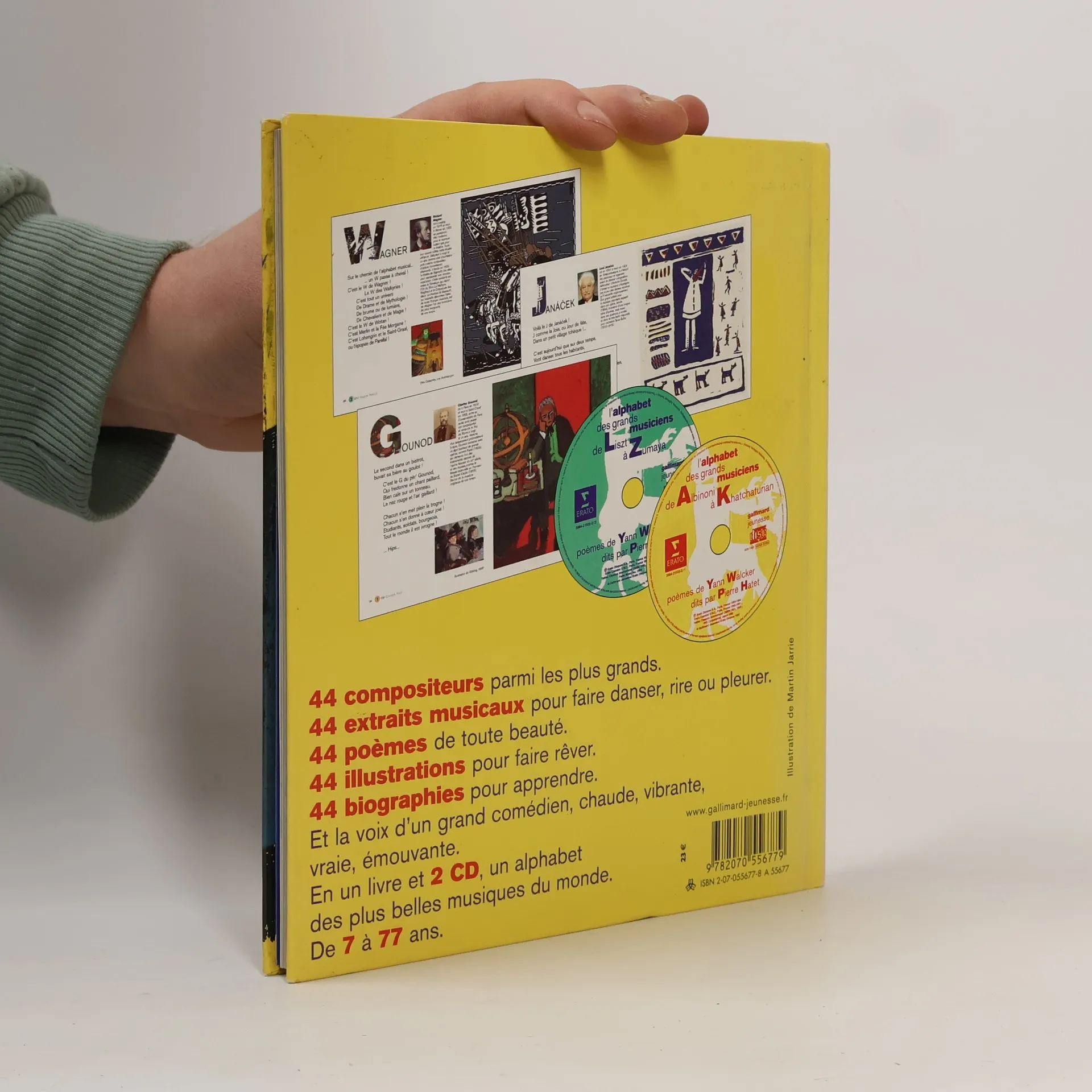 44 compositeurs parmi les plus grands. 44 extraits musicaux pour faire danser, rire ou pleurer. 44 poèmes de toute beauté. 44 illustrations pour faire rêver. 44 biographies pour apprendre. Et la voix d'un grand comédien, chaude, vibrante, vraie, émouvante. En un livre et 2 cd, un alphabet des plus belles musiques du monde. De 7 à 77 ans.
