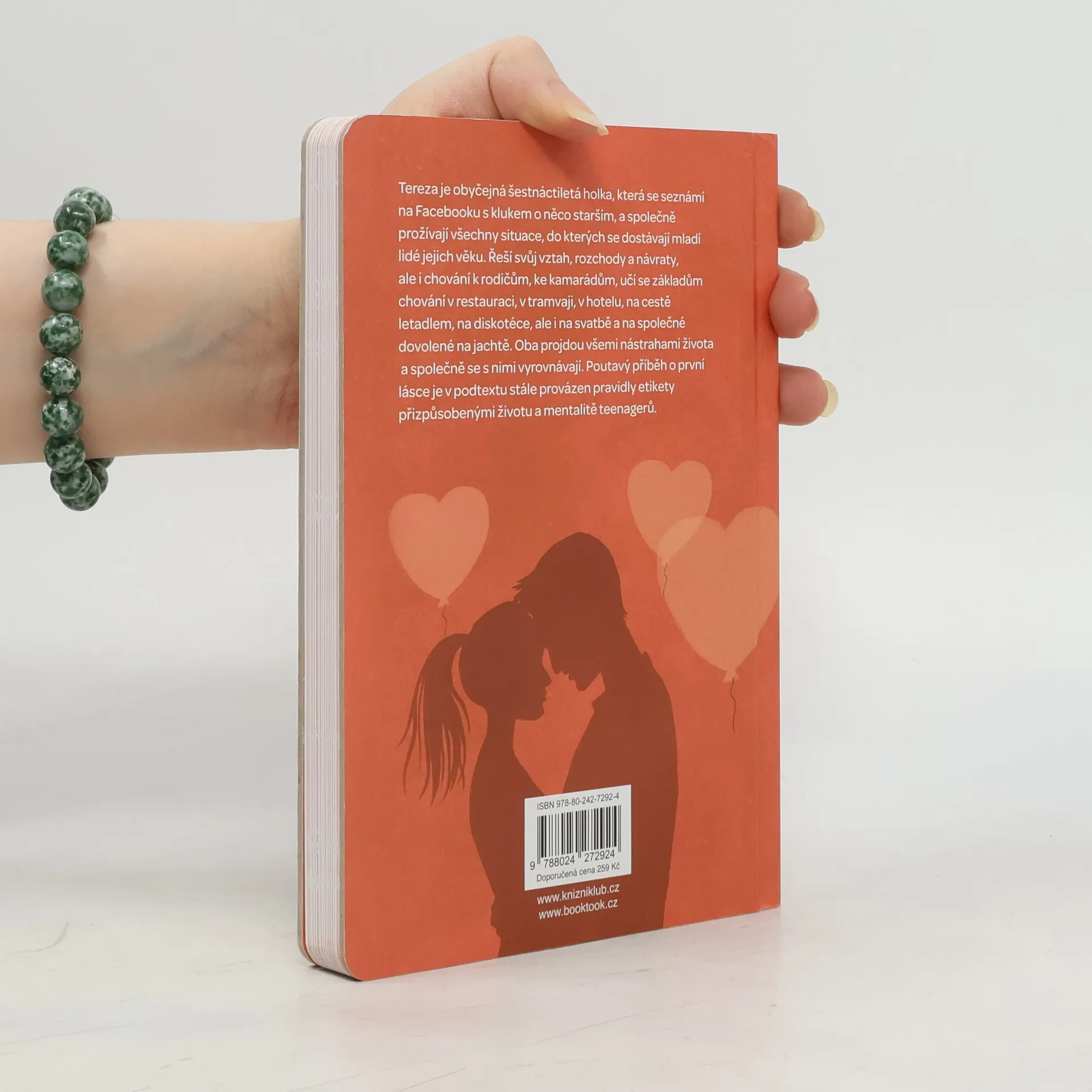Tereza je obyčejná šestnáctiletá holka, která se seznámí na Facebooku s klukem o něco starším, a společně prožívají všechny situace, do kterých se dostávají mladí lidé jejich věku. Řeší svůj vztah, rozchody a návraty, ale i chování k rodičům, ke kamarádům, učí se základům chování v restauraci, v tramvaji, v hotelu, na cestě letadlem, na diskotéce, ale i na svatbě a na společné dovolené na jachtě. Oba projdou všemi nástrahami života a společně se s nimi vyrovnávají. Poutavý příběh o první lásce je v podtextu stále provázen pravidly etikety přizpůsobenými životu a mentalitě teenagerů. Druhé vydání.