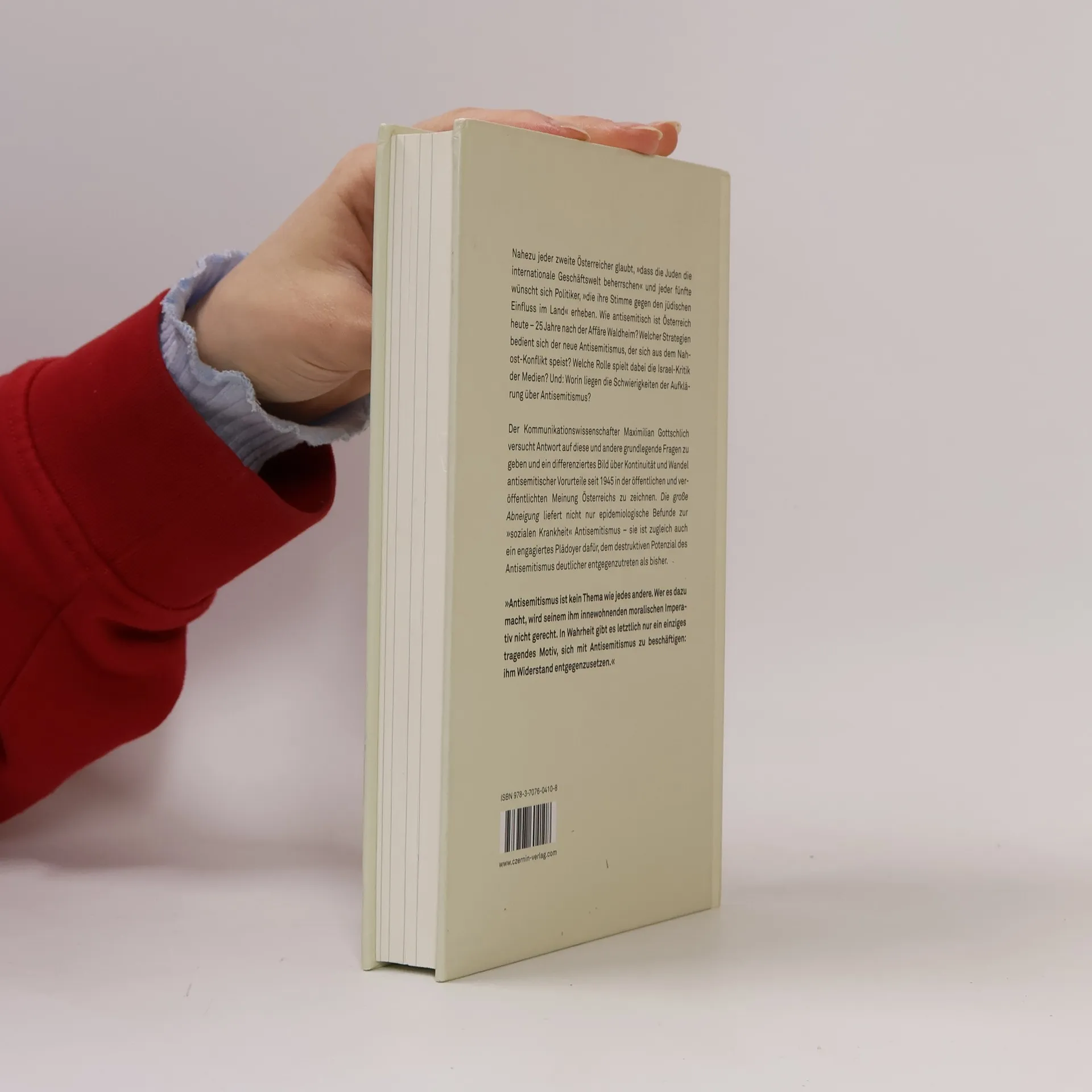 Nahezu jeder zweite Österreicher glaubt, „dass die Juden die internationale Geschäftswelt beherrschen“ und jeder fünfte wünscht sich Politiker, „die ihre Stimme gegen den jüdischen Einfluss im Land“ erheben. Wie antisemitisch ist Österreich heute – 25 Jahre nach der Affäre Waldheim? Welcher Strategien bedient sich der neue Antisemitismus, der sich aus dem Nahost-Konflikt speist? Welche Rolle spielt dabei die Israel-Kritikder Medien? Und: Worin liegen die Schwierigkeiten der Aufklärung über Antisemitismus? Der Kommunikationswissenschafter Maximilian Gottschlich versucht Antwort auf diese und andere grundlegende Fragen zu geben und ein differenziertes Bild über Kontinuität und Wandel antisemitischer Vorurteile seit 1945 in der öffentlichen und veröffentlichten Meinung Österreichs zu zeichnen. „Die große Abneigung“ liefert nicht nur epidemiologische Befunde zur 'sozialen Krankheit' Antisemitismus – sie ist zugleich auch ein engagiertes Plädoyer dafür, dem destruktiven Potenzial des Antisemitismus deutlicher entgegenzutreten als bisher.