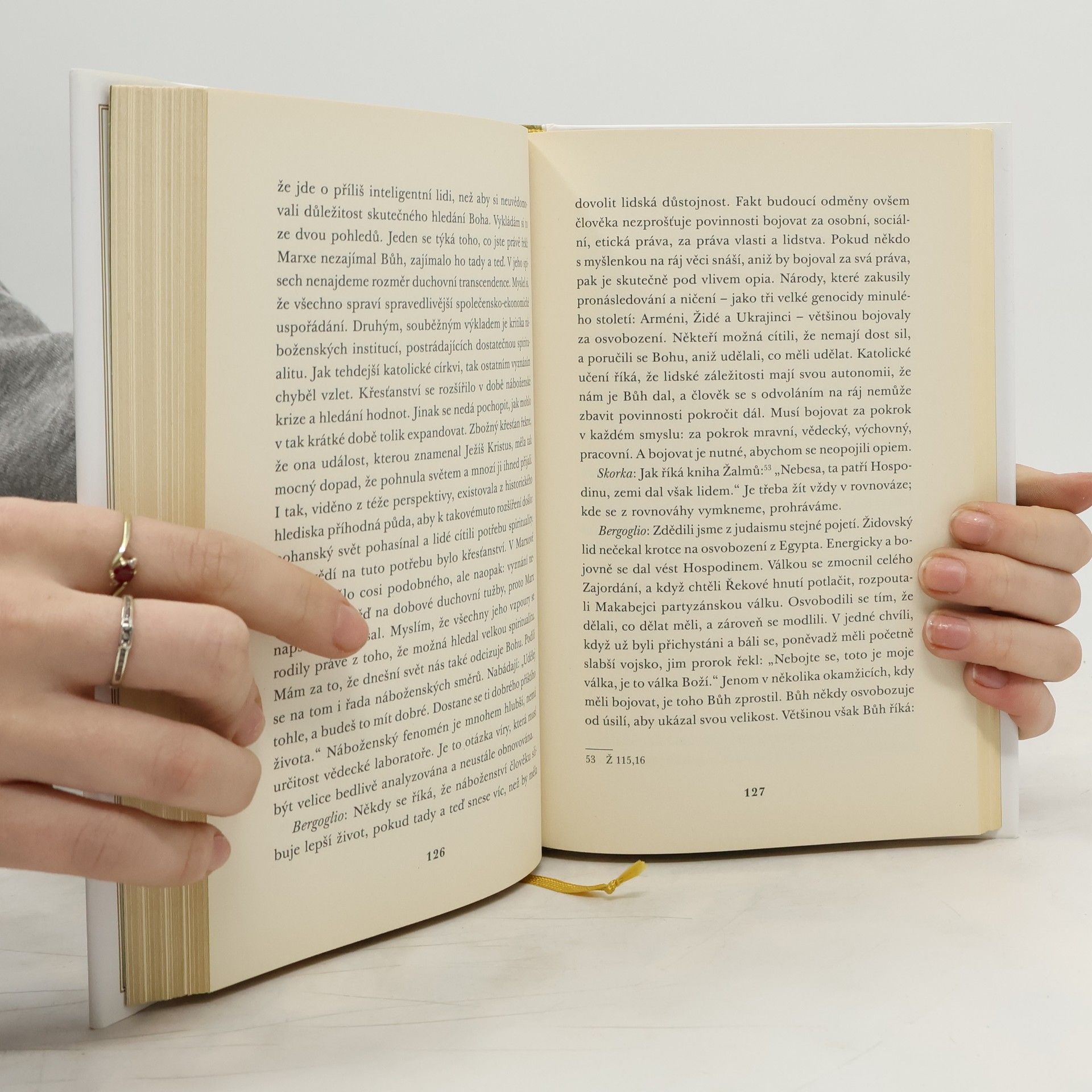 Papež František o rodině, víře a úloze církve ve 21. století Papež František se ještě jako Kardinál Jorge Mario Bergoglio pravidelně scházel se svým přítelem rabínem Abrahamem Skorkou, aby spolu debatovali o otázkách víry, o Bohu i ďáblu, vině a odpuštění, politice, globalizaci, vědě a konfliktech současného světa. Nakonec se rozhodli, že svoje rozpravy zpracují do podoby knihy. Dialog obou přátel a zároveň představitelů svých náboženských obcí vyniká hloubkou a přesností, ale současně odpovídá srozumitelnou a svěží formou na otázky, které si každý den kladou věřící i lidé, kteří se k žádnému náboženství nehlásí. V této čtivé, aktuální, myšlenkami nabité knize, první knize papeže Františka na českém trhu, nalezneme názory hlavy katolické církve na svět kolem nás, širokou škálu témat, někdy i kontroverzních, jiskřící dialog dvou velkých osobností současnosti.