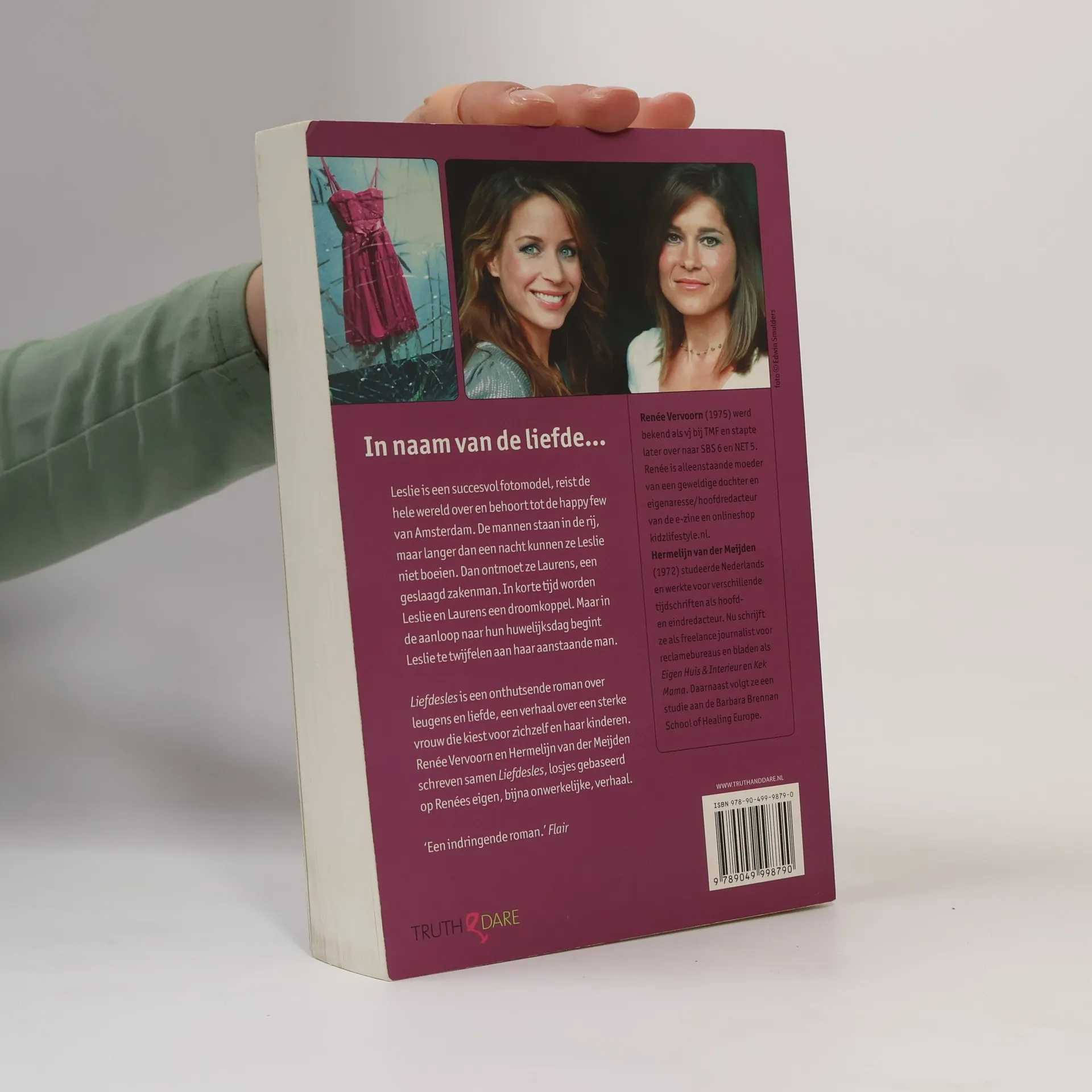 Wat als blijkt dat de liefde van je leven vanaf de eerste seconde altijd en overal tegen je heeft gelogen? Leslie is een van de best betaalde fotomodellen van het moment en leidt een geweldig leven wanneer ze de geslaagde beurshandelaar Laurens ontmoet. In korte tijd worden Leslie en Laurens een droomkoppel. Maar in de aanloop naar haar huwelijksdag begint Leslie te twijfelen aan de identiteit van haar aanstaande man. Liefdesles is een autobiografische roman over leugens en liefde, een verhaal over een sterke vrouw die kiest voor zichzelf en haar kinderen. Renee Vervoorn en Hermelijn van der Meijden schreven samen Liefdesles, een roman die losjes is gebaseerd op Renees eigen, bijna onwerkelijke, verhaal. Renee Vervoorn (1975) rolde na haar opleiding communicatie pr het televisievak in. Ze begon als vj bij TMF en stapte daarna over naar SBS 6 en NET 5. Nu is Renee alleenstaande moeder van een geweldige dochter en eigenaresse/hoofdredacteur van de e-zine en onlineshop kidzlifestyle.nl. Hermelijn van der Meijden (1971) studeerde Nederlands. Ze werkte voor verschillende tijdschriften als hoofd- en eindredacteur. Tegenwoordig schrijft ze als freelance journalist voor reclamebureaus en bladen als Eigen Huis Interieur en Kek. Daarnaast volgt ze een studie aan de Barbara Brennan School of Healing Europe.