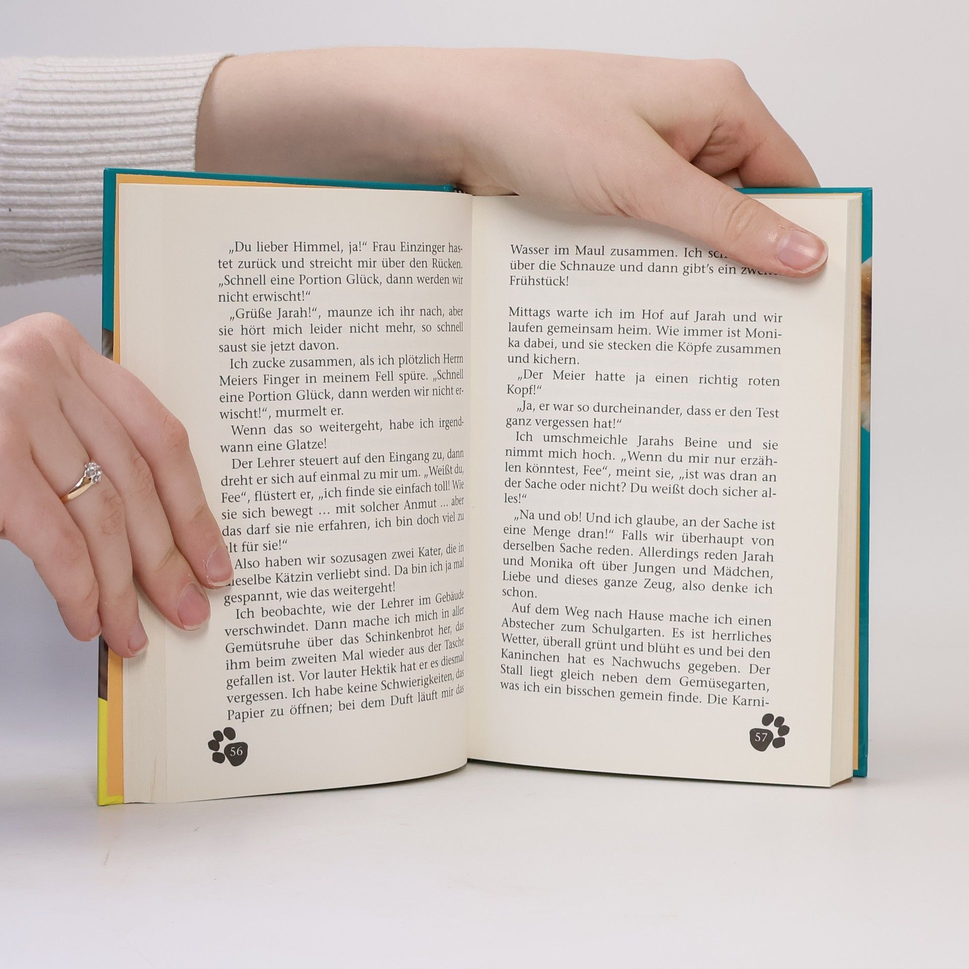 Fee ist schon etwas ganz Besonderes: Glückskatze, Schulkatze, jedermanns Liebling. Entsprechend gern gesehen ist sie in der Schule, die Jarahs Vater als Hausmeister betreut. Der Einzige, der Fee dort nicht so gerne herumstromern sieht, ist ausgerechnet der Direktor. Als er verlangt Fee wegzugeben, ist der Schreck bei Jarah und ihren Freunden groß. Schließlich weiß keiner, ob ihr geheimer Plan noch rechtzeitig gelingen und Fee retten wird.