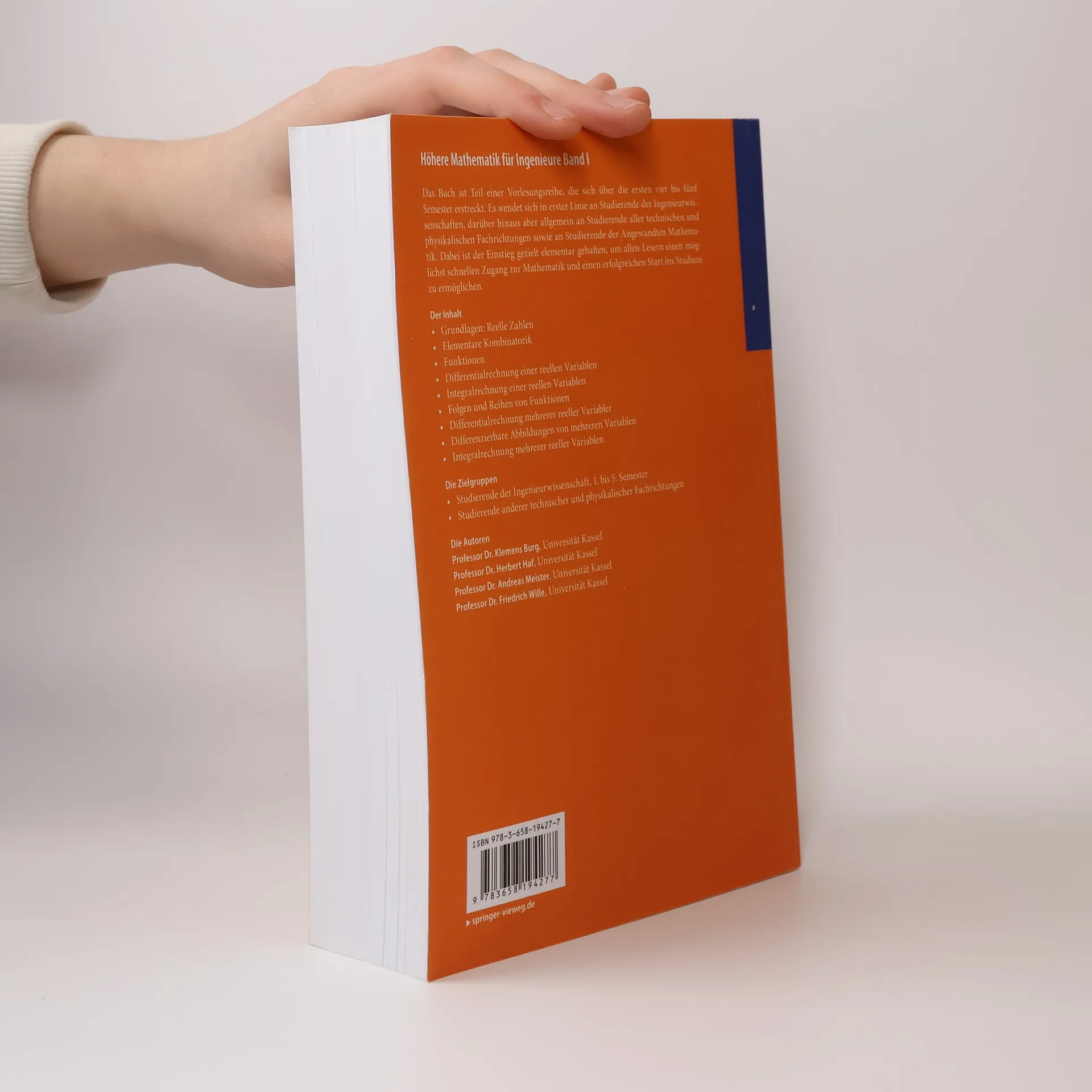 Das Buch ist Teil einer Vorlesungsreihe, die sich über die ersten vier bis fünf Semester erstreckt. Es wendet sich in erster Linie an Studierende der Ingenieurwissenschaften, darüber hinaus aber allgemein an Studierende aller technischen und physikalischen Fachrichtungen sowie an Studierende der Angewandten Mathematik. Dabei ist der Einstieg gezielt elementar gehalten, um allen Lesern einen möglichst schnellen Zugang zur Mathematik und einen erfolgreichen Start ins Studium zu ermöglichen.