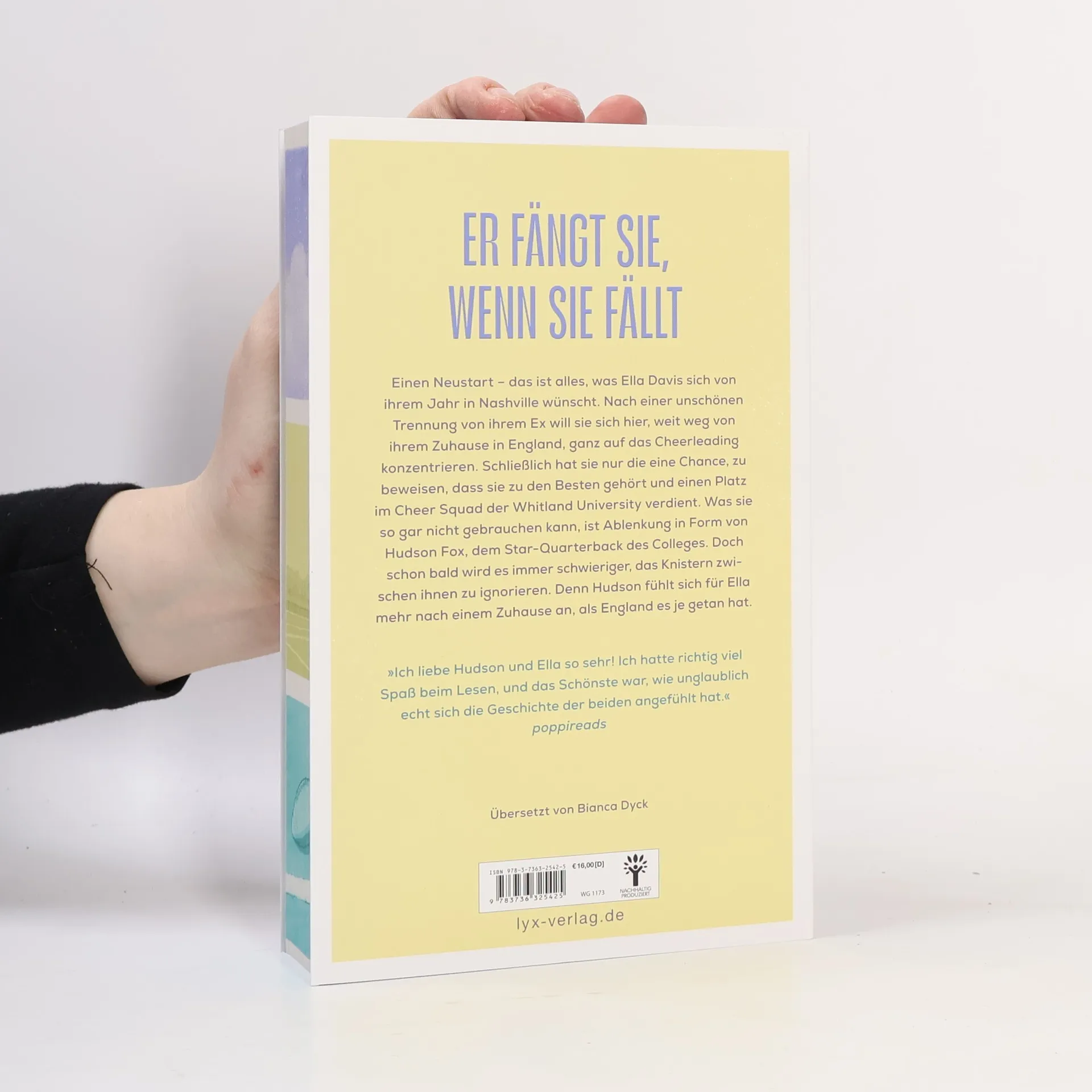 »Die perfekte Kombination: heiß und humorvoll!« Hannah Grace Einen Neustart. Das ist alles, was die Cheerleaderin Ella Davis sich von ihrem Jahr in Nashville wünscht. Nach der unschönen Trennung von ihrem Ex will sie sich hier, weit weg von ihrem Zuhause in England, ganz auf das Cheerleading konzentrieren. Schließlich hat sie nur eine Chance, zu beweisen, dass sie zu den Besten gehört und einen Platz im Team verdient. Was sie so gar nicht brauchen kann, ist Ablenkung. Vor allem nicht in Form von Hudson Fox, dem Star-Quarterback des Colleges. Doch sie sehen sich ständig beim Training, und schon bald wird es immer schwieriger, das Knistern zwischen ihnen zu ignorieren. Denn Hudson fühlt sich für Ella mehr nach Zuhause an, als England es je getan hat. Sports-Romance von Ki Stephens bei LYX