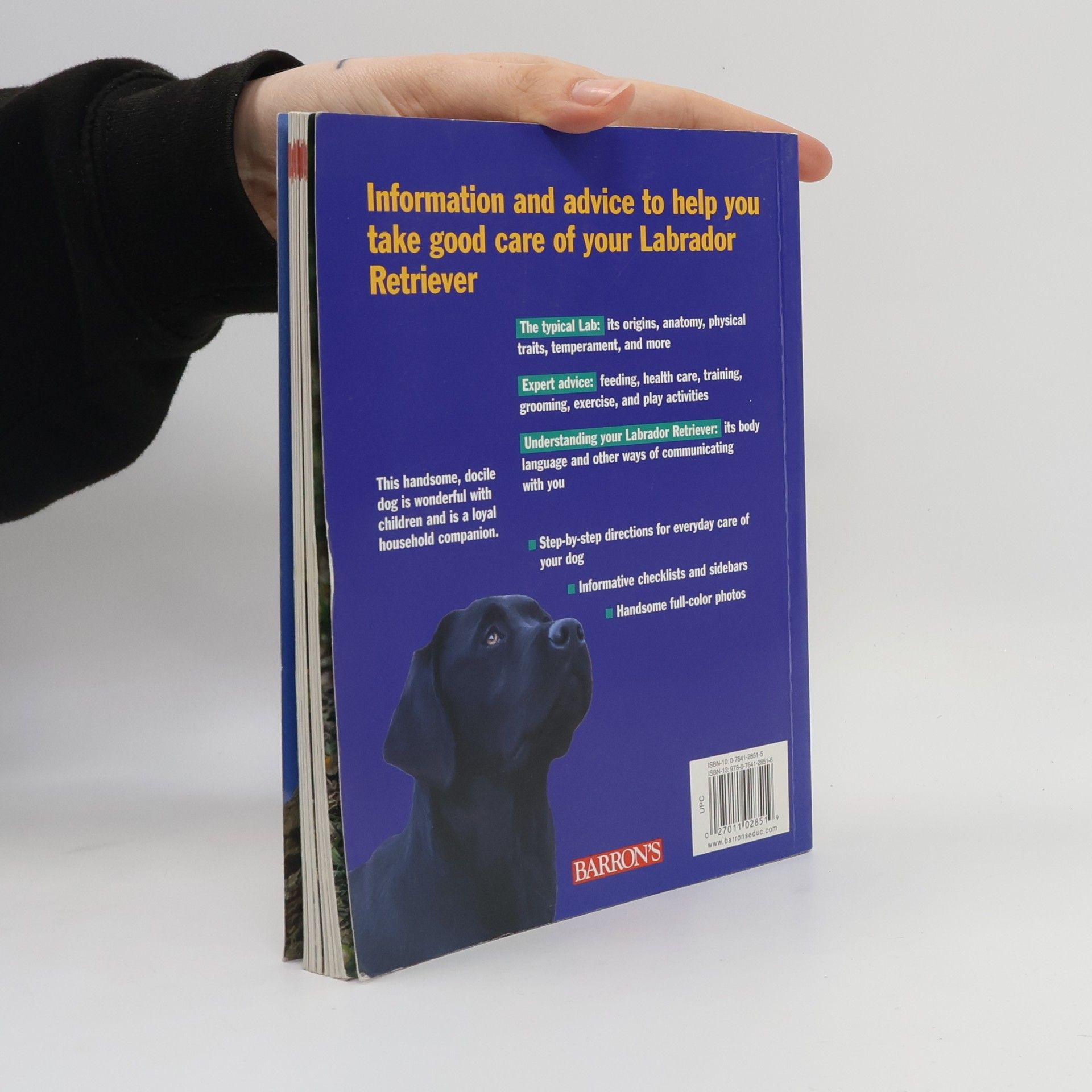 The docile, friendly, affectionate Lab makes a fine household pet and is very good with children. Here is sound advice on feeding, training, grooming, and much more. Heavily illustrated with vivid color photos and instructive line art, Barron�s Complete Pet Owner�s Manuals show and inform pet owners regarding proper care of dogs, cats, birds, fish, reptiles, amphibians, small caged animals�virtually every creature that is kept as a pet. The books give advice on purchasing and otherwise acquiring a pet, feeding it nutritiously, keeping it in good health, and where applicable, grooming and training it. Each book in this large series is individually written by a specialist, and though the information is authoritative, the text is clear and straightforward, easy for every pet owner to understand.