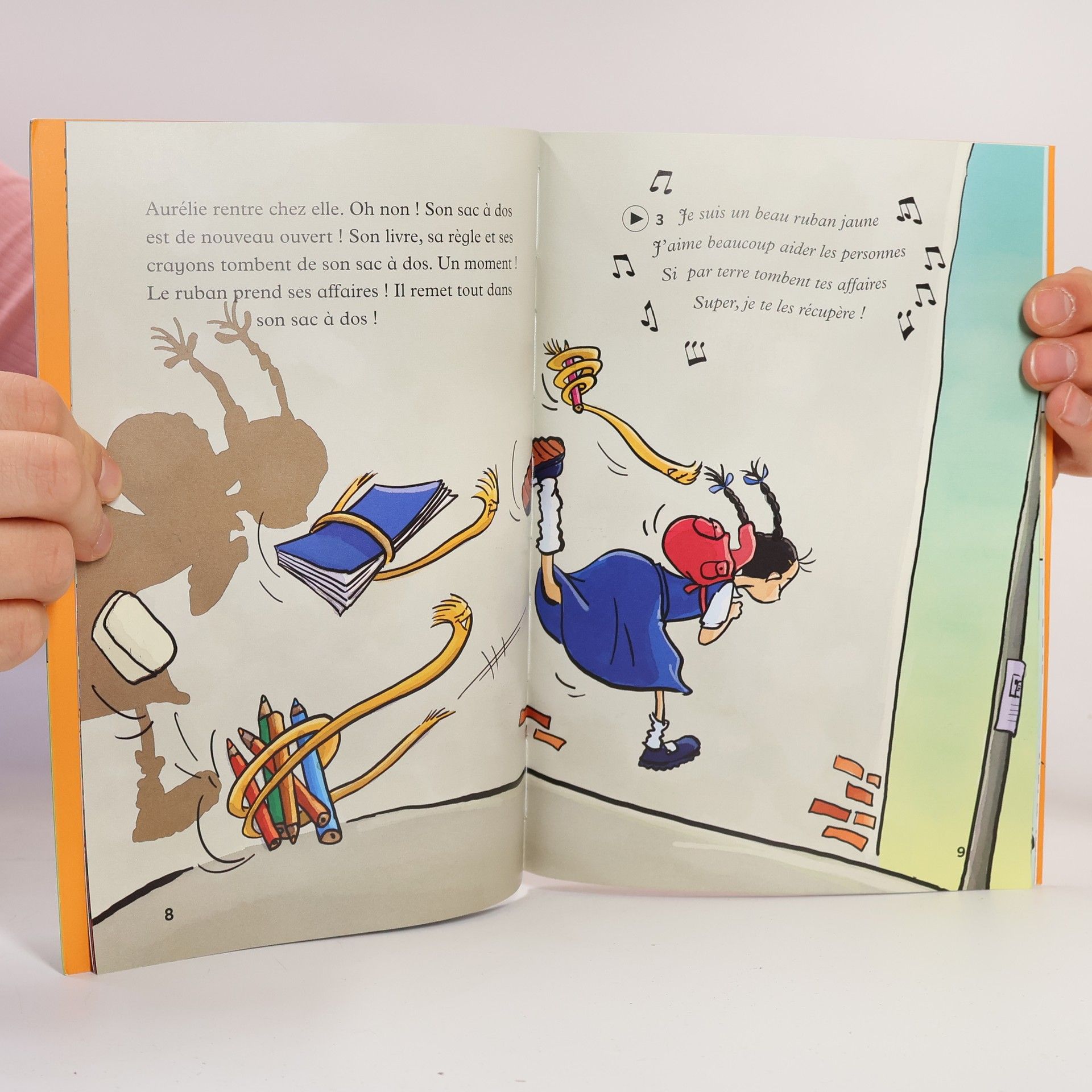 Grand-Ma Petronille and the Yellow Ribbon. (Book + CD) - Level 1 - 100 Words Aurelie always misplaces her things and that makes her teacher very upset. Grand-Ma Petronille gives Aurelie a yellow ribbon and tells her that it can solve all her problems...can it really? Themes : School - Magic - Adventure Also Games and activities - A recording of the story and the song - Illustrated vocabulary Vocabulary School - Friends and Family - The House Grammar The present tense - The Imperative - Possessive Adjectives