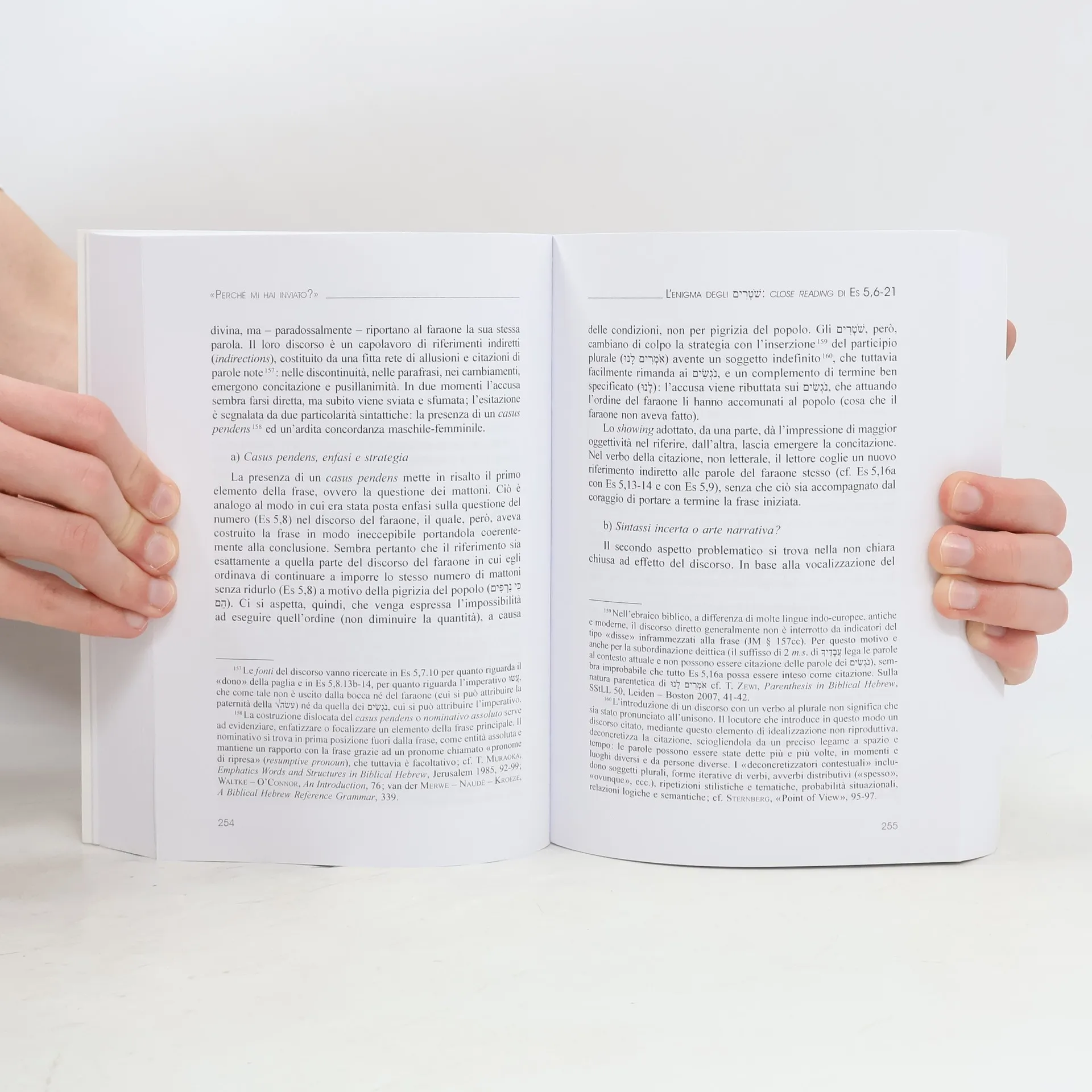 Le asperità della sezione di Es. 5,1-7,7 sono state interpretate come discontinuità dovute alla complessa storia di formazione del testo. Tuttavia, questo studio propone un’analisi dettagliata della sezione, evidenziando elementi di poetica narrativa del dialogo non ancora presenti nei manuali. Si mostra che, in una ricerca discourse-oriented, le asperità del testo contribuiscono alla dinamica narrativa basata su curiosità, suspence e sorpresa. Il close reading rivela che la continuità della sezione è legata al tema della conoscenza di Dio, essenziale per la teologia del racconto, e alla presenza di citazioni del discorso diretto. Rispondendo alla domanda di Mosè, il personaggio divino riconfigura la trama, inserendo l’intreccio di azione (la liberazione) in un più ampio intreccio di rivelazione, conoscendo Yhwh come colui che fa uscire dall’Egitto. Inoltre, crea Mosè, in crisi vocazionale, come suo mediatore attraverso le citazioni. Queste ultime generano una particolare dinamica narrativa, consentendo al lettore di appropriarsi dei presupposti teologici della storia: la parola divina fa la storia e, sebbene possa essere disprezzata o travisata, essa crea l’intreccio e lo conduce alla conclusione.