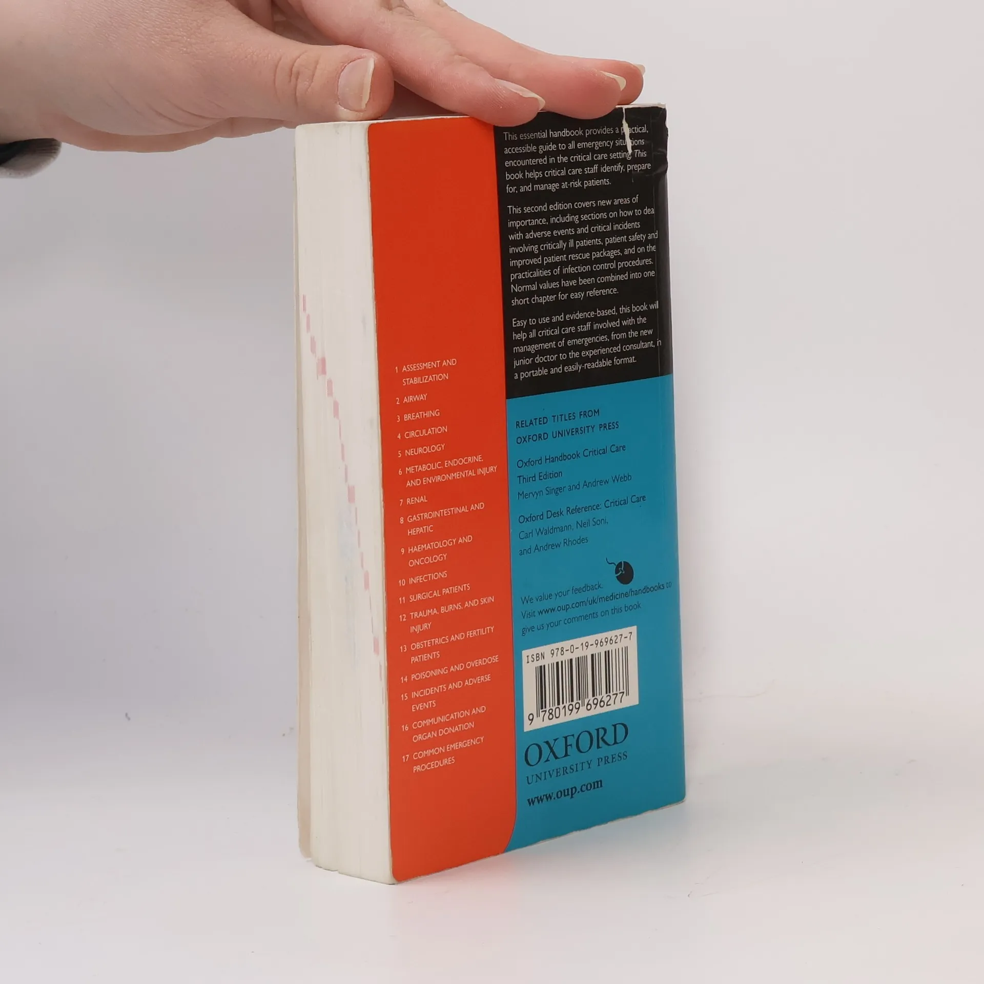 This essential handbook provides a practical, accessible guide to all emergency situations encountered in the critical care setting. Emergencies are very common in the critical care setting and this book helps critical care staff identify patients at risk, how to manage them, and be prepared. To help the reader find advice quickly, most chapters begin with a generic description of how to manage emergencies affecting that system, or patient group. This is followed by details ofspecific diagnoses and how they should be managed. The author team, where possible, follow the 'ABC' approach, which is not only the standard approach to emergency management, but also a widely-used scheme for documenting daily reviews on ICU, and for documenting trauma management. This second edition covers new areas of importance, including sections on how to deal with adverse events and critical incidents involving critically ill patients, patient-safety and improved patient rescue packages, and on the practicalities of infection control procedures. Normal values have been combined in to one short chapter for easy reference.Easy to use and evidence-based, this book will help all critical care staff involved with the management of emergencies, from the new junior doctor to the experienced consultant in a portable and easily-readable format.