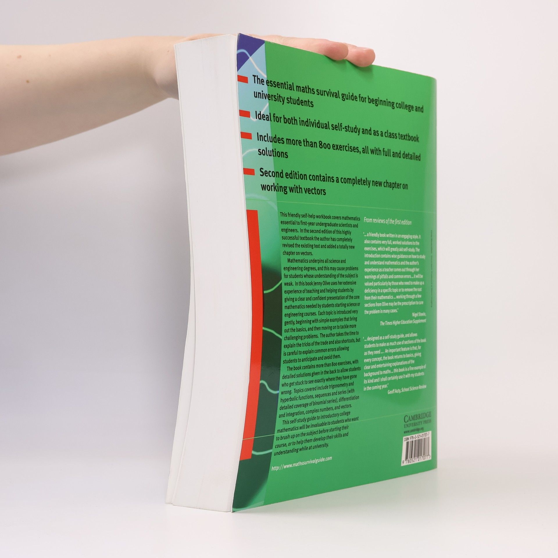 The second edition of this highly successful textbook has been completely revised and now includes a new chapter on vectors. Mathematics is the basis of all science and engineering degrees, and a source of difficulty for some students. Jenny Olive helps resolve this problem by presenting the core mathematics needed by students starting science or engineering courses in user-friendly comprehensible terms. First Edition Hb (1998): 0-521-57306-8 First Edition Pb (1998): 0-521-57586-9