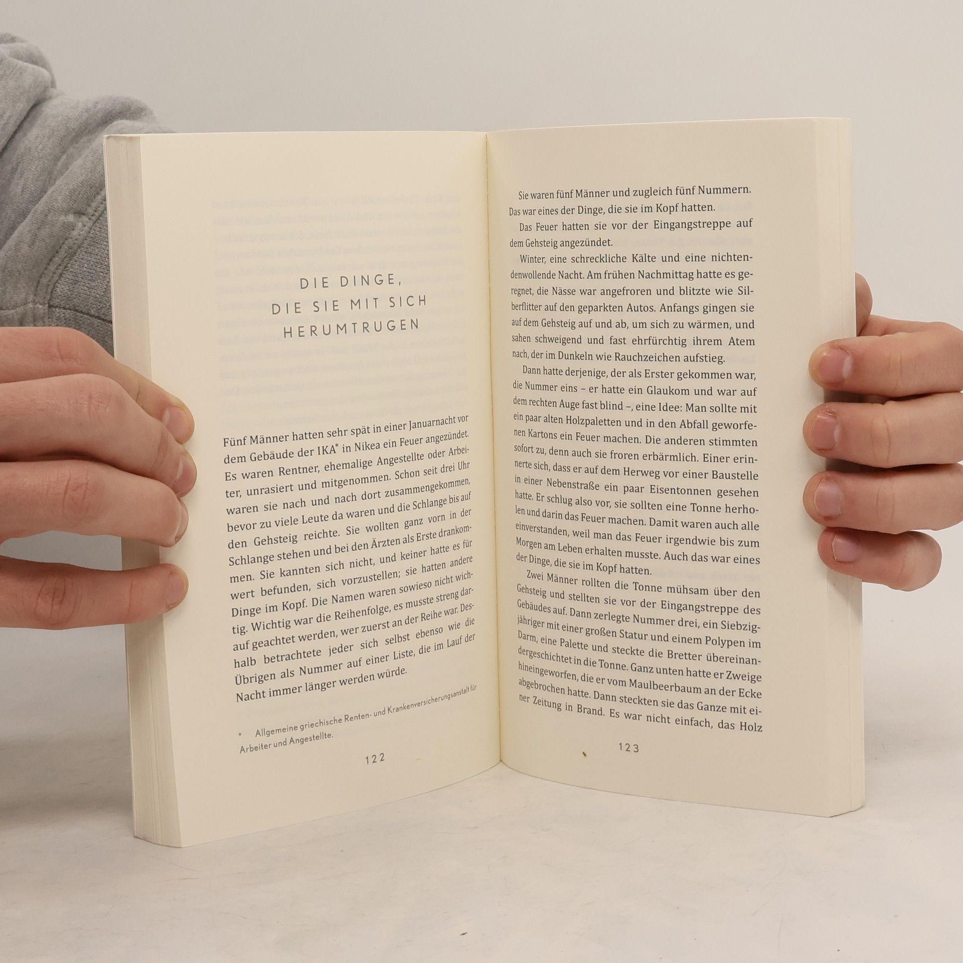 Δεκάξι ιστορίες από τα Καμίνια, τη Νίκαια, τη Δραπετσώνα. Από τον ντόκο των Κρητικών, από το ουζερί "Υπάρχω", από το φουγάρο της ΔΕΗ στο Κερατσίνι. Ιστορίες για τράπεζες που παίρνουν σπίτια, για σπίτια που παίρνουν φωτιά, για όνειρα που γίνονται στάχτη. Για το σκοτάδι που ζει στη διπλανή πόρτα. Κάτι θα γίνει όμως, θα δεις. Γιατί εκεί όπου μεγαλώνει ο φόβος μεγαλώνει κι εκείνο που σώζει από τον φόβο. Περιέχονται τα διηγήματα: - Έλα Έλλη, τάισε το γουρουνάκι - Μολυβένιος στρατιώτης - Μάο - Κι ένα αβγό κίντερ για το παιδί - Πλακάτ με σκουπόξυλο - Το αίμα του κρεμμυδιού - Κάτι θα γίνει, θα δεις - Τα πράγματα που κουβάλαγαν - Μουστακάκι με κάρβουνο - Ξένα, εξωτικά - Για τους φτωχούς ανθρώπους - Το δέσιμο των σωμάτων - Βγες έξω και καψ' τα - Πίπολ αρ στρέιντζ - Πιγκουίνοι έξω απ' το λογιστήριο - Κομμάτι κομμάτι μου παίρνουν τον κόσμο μου