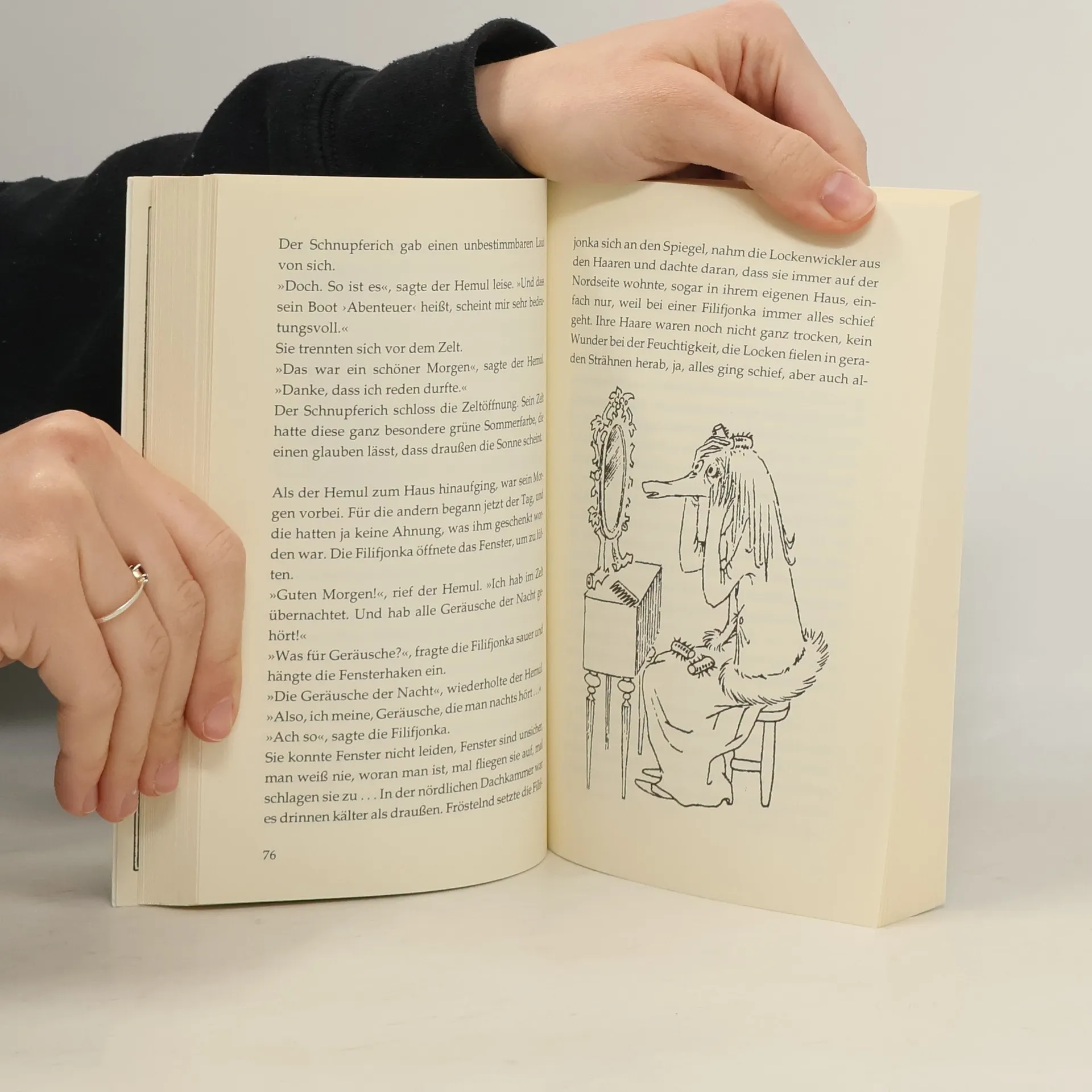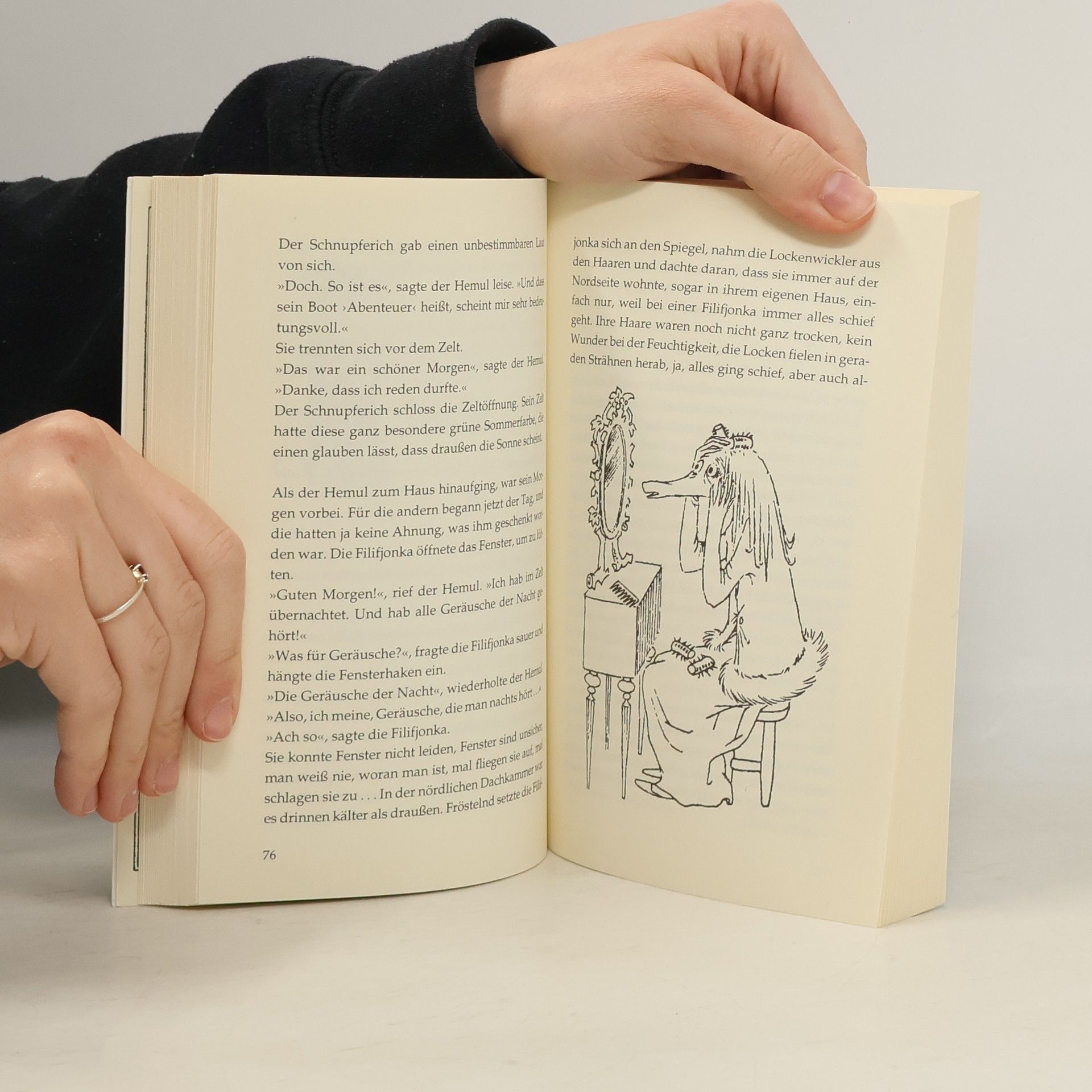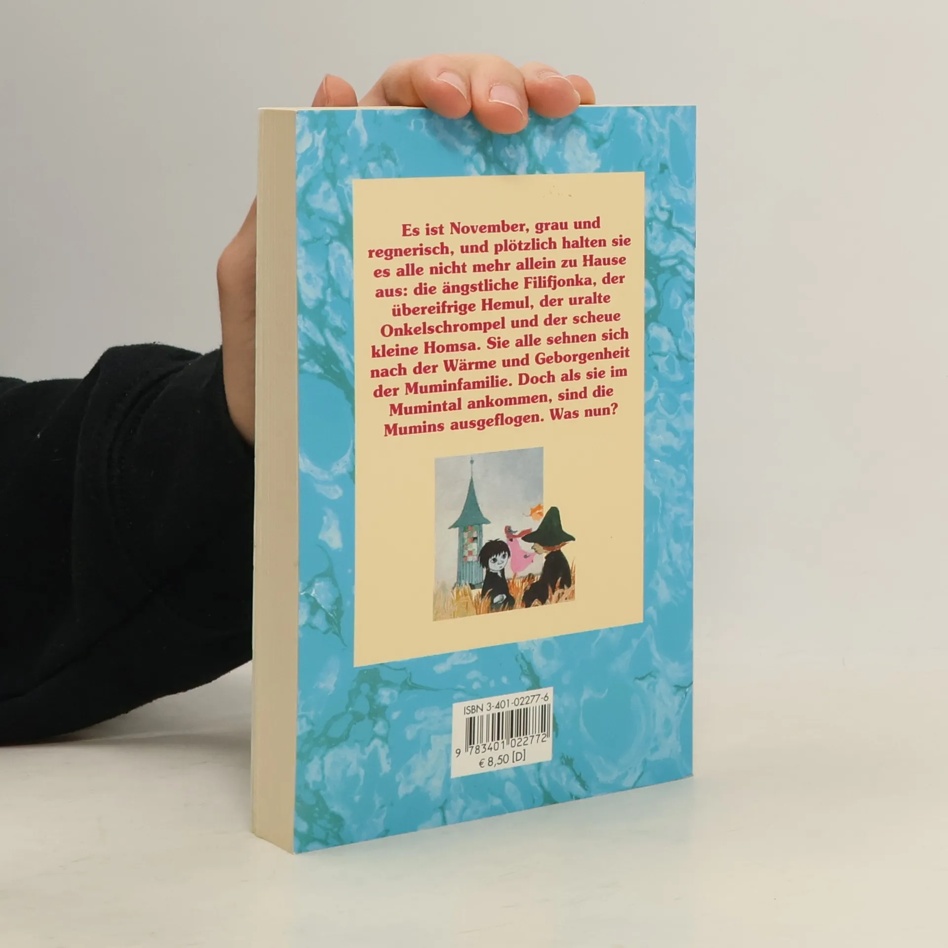 Es ist November, grau und regnerisch, und plötzlich halten sie es alle nicht mehr allein zu Hause aus: die ängstliche Filifjonka, der übereifrige Hemul, der uralte Onkelschrompel und der scheue kleine Homsa, Sie alle sehnen sich nach der Wärme und Geborgenheit der Muminfamilie. Doch als sie im Mumintal ankommen, sind die Mumins ausgeflogen. Was nun?