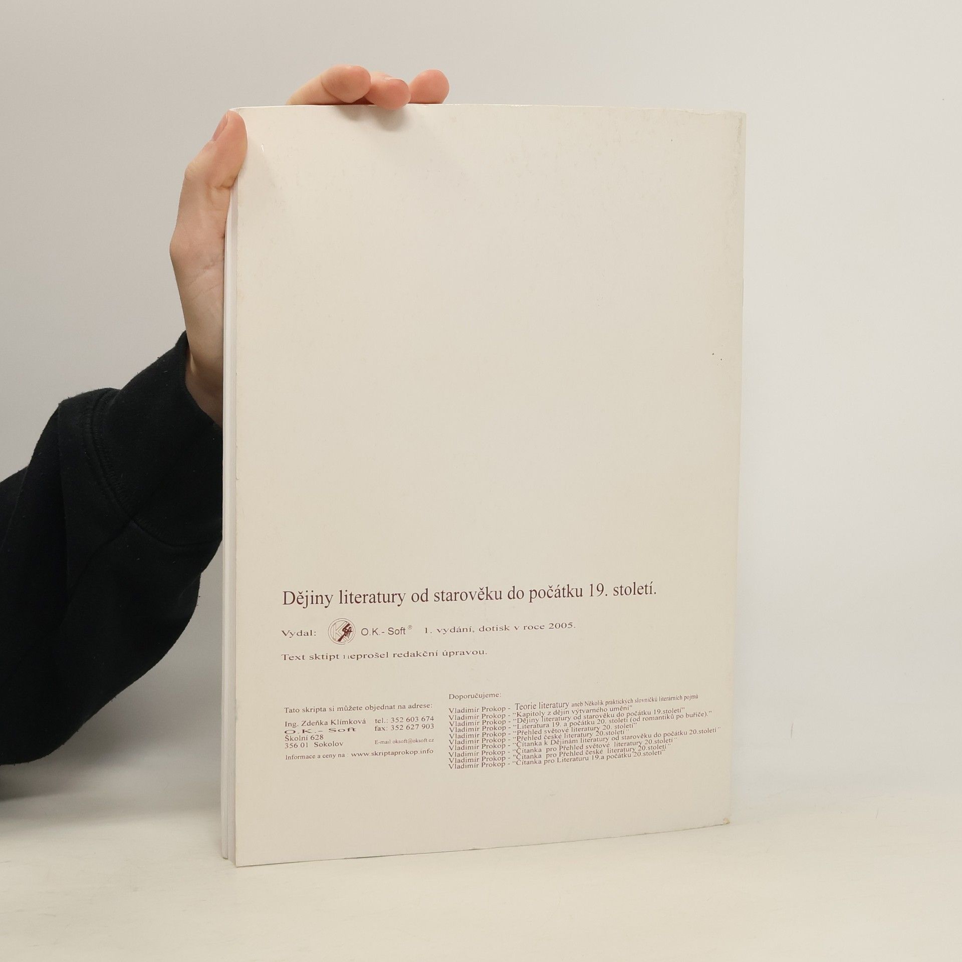 Dějiny literatury od starověku do počátku 19. století, Vladimír Prokop