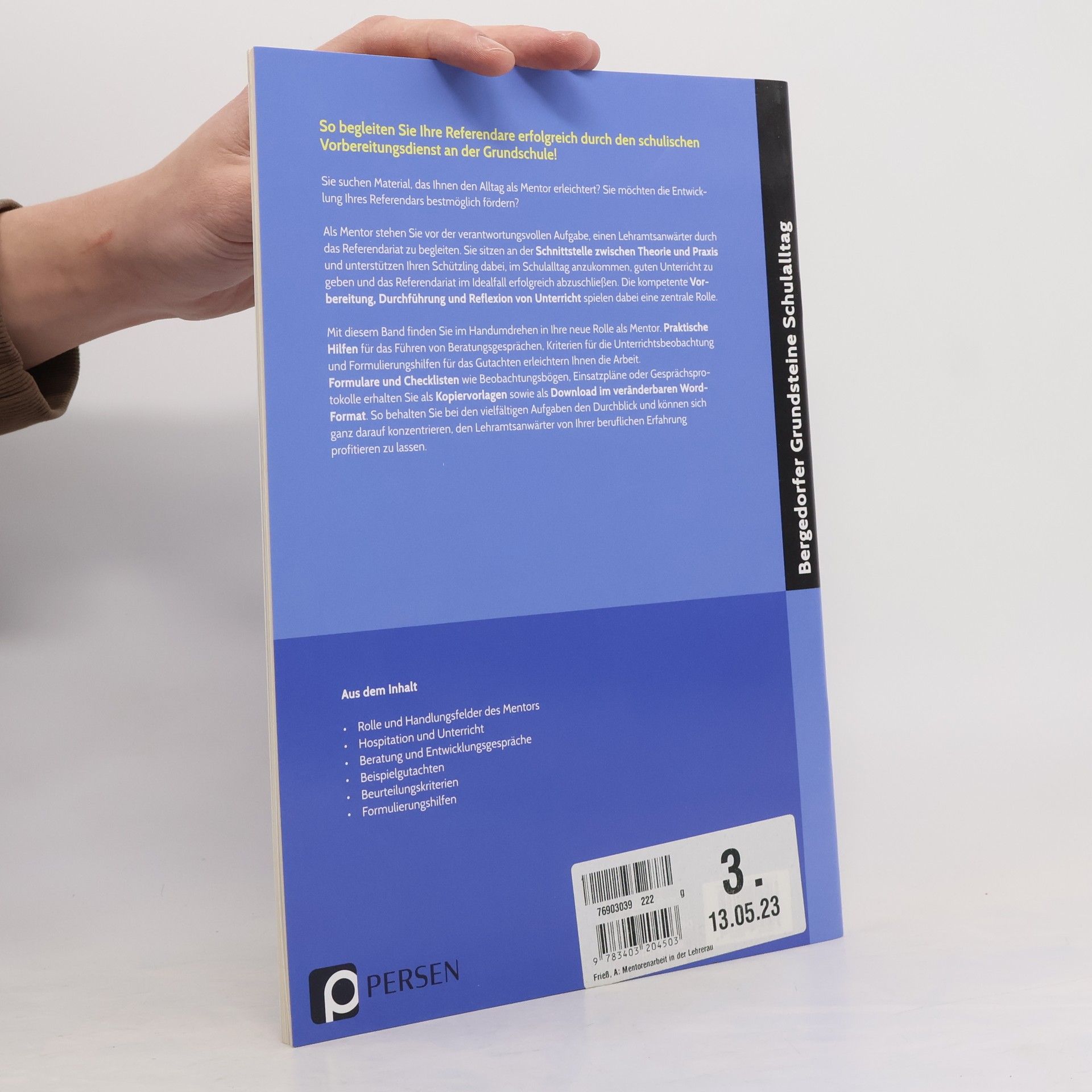 Begleiten Sie Ihre Referendare erfolgreich durch den schulischen Vorbereitungsdienst an der Grundschule! Dieser Band ist Ihr idealer Begleiter, um Lehramtsanwärter durch das Referendariat zu führen. Suchen Sie nach Materialien, die Ihnen den Alltag als Mentor erleichtern? Möchten Sie die Entwicklung Ihrer Referendare optimal fördern? Als Mentor tragen Sie die Verantwortung, Lehramtsanwärter gezielt durch das Referendariat zu begleiten. Sie unterstützen Ihre Schützlinge dabei, im Schulalltag anzukommen, guten Unterricht zu geben und das Referendariat erfolgreich abzuschließen. Eine zentrale Rolle spielt die kompetente Vorbereitung, Durchführung und Reflexion von Unterricht. Dieser Band hilft Ihnen, sich schnell in Ihre neue Rolle als Mentor einzuarbeiten. Praktische Hilfen für Beratungsgespräche, Kriterien für die Unterrichtsbeobachtung und Formulierungshilfen für Gutachten erleichtern Ihre Arbeit. Formulare und Checklisten wie Beobachtungsbögen, Einsatzpläne oder Gesprächsprotokolle stehen Ihnen als Kopiervorlagen und veränderbare Word-Dateien im digitalen Zusatzmaterial zur Verfügung, das Sie sofort nach der Bestellung kostenlos herunterladen können. Mit diesen Materialien behalten Sie den Überblick über die vielfältigen Aufgaben und können sich darauf konzentrieren, dass die Lehramtsanwärter von Ihrer beruflichen Erfahrung profitieren.